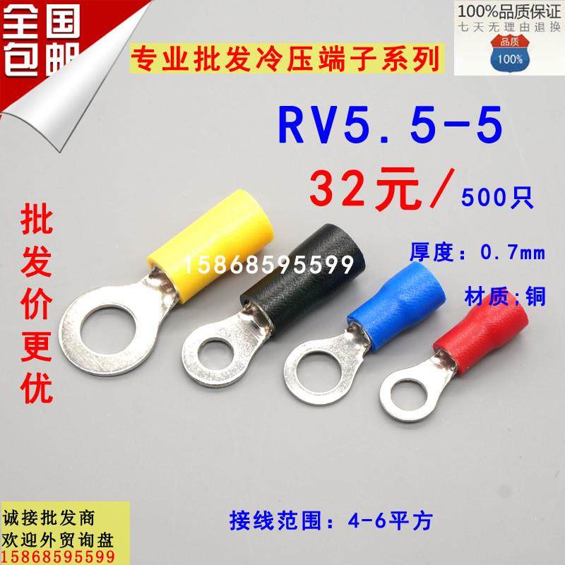 Rv5-8 Cold-Pressed Terminal Block Round O-Type Rv6-8 Crimping Copper Lug Terminal Rv5.5-8 Free Shipping 500 Pieces