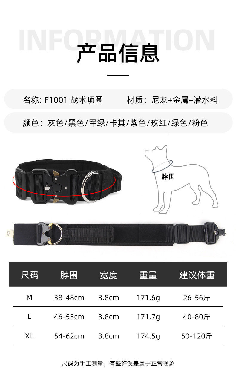 | Applicable Sizes | M[Reference Weight 13-28kg]Neck Circumference 38-48cm,L[Reference Weight 20-40kg]Neck Circumference 46-55cm,XL[Reference Weight 25-60kg]Neck Circumference 54-62cm |
