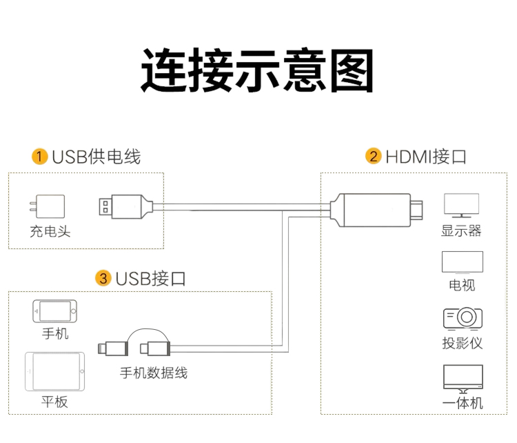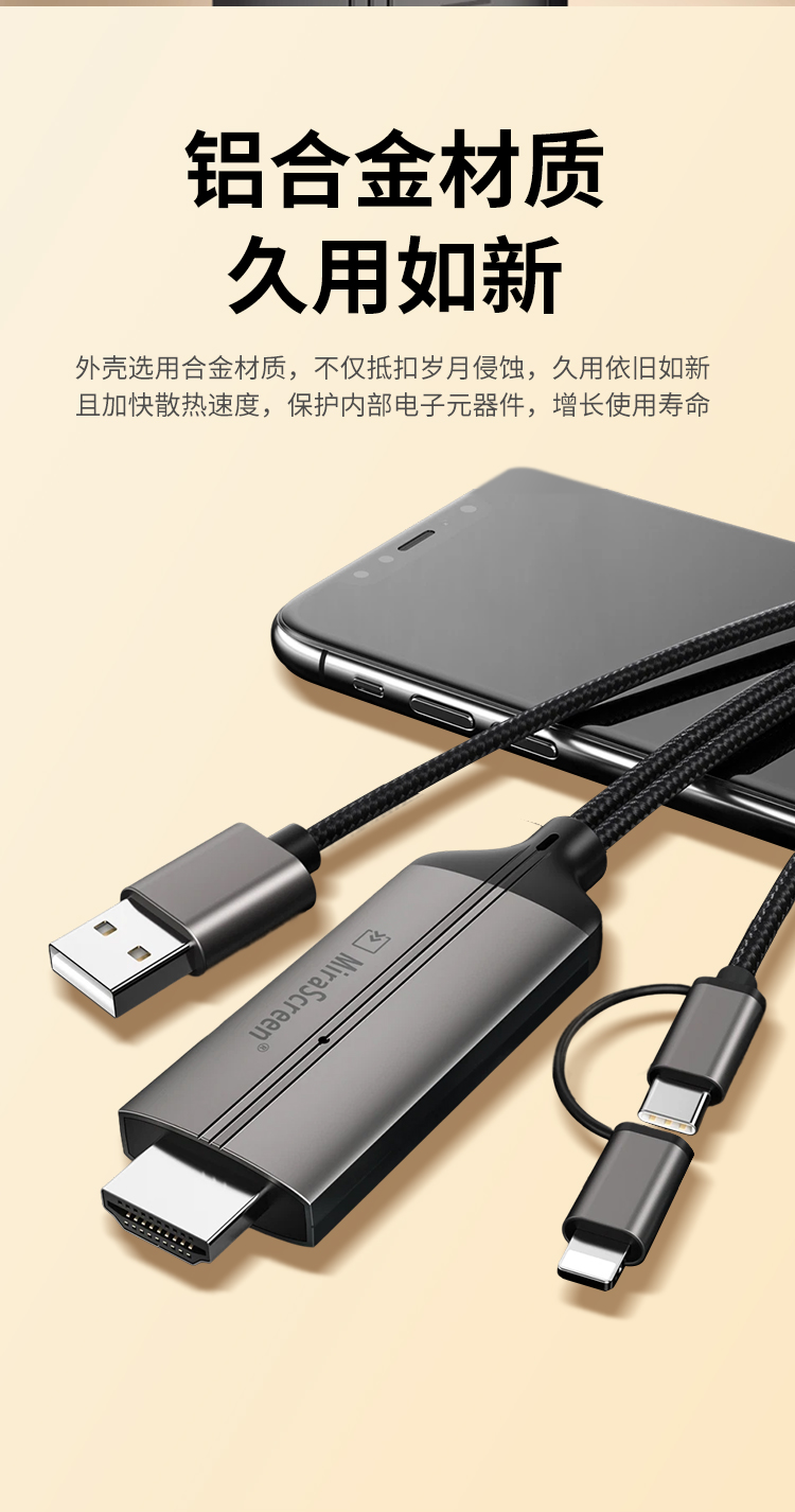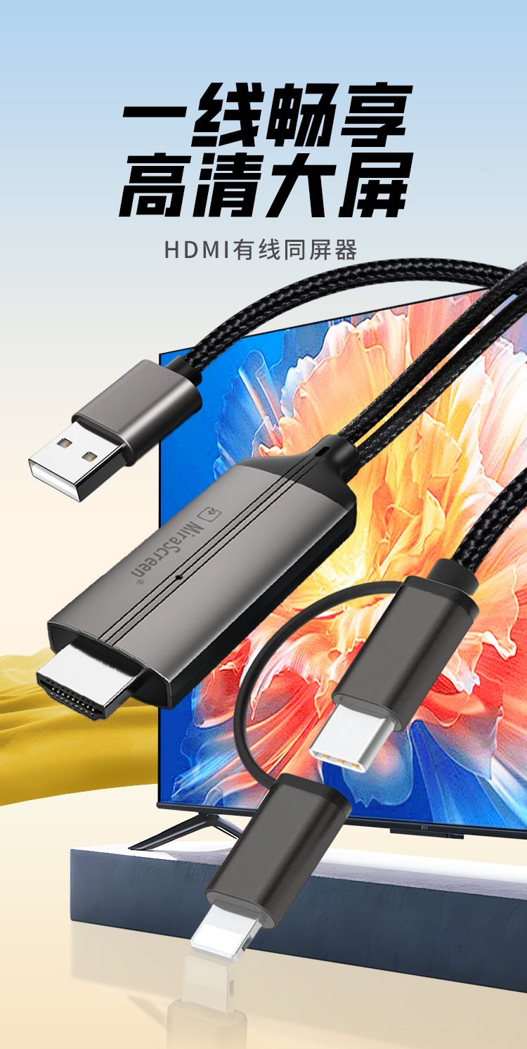 Same-Screen Cable Conversion Cable, Lighting to HDMI Screen Projection Cable, Typec to HDMI High-Definition Data Cable, Suitable for iPad Apple Huawei Mobile Phones, Computers, Apple Tv Monitors, Projectors