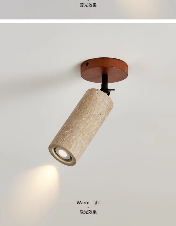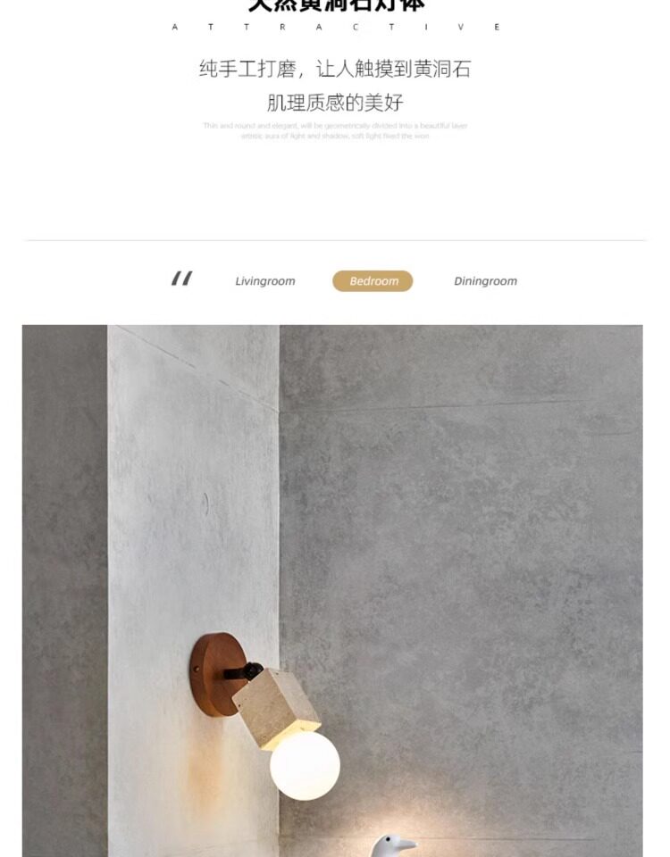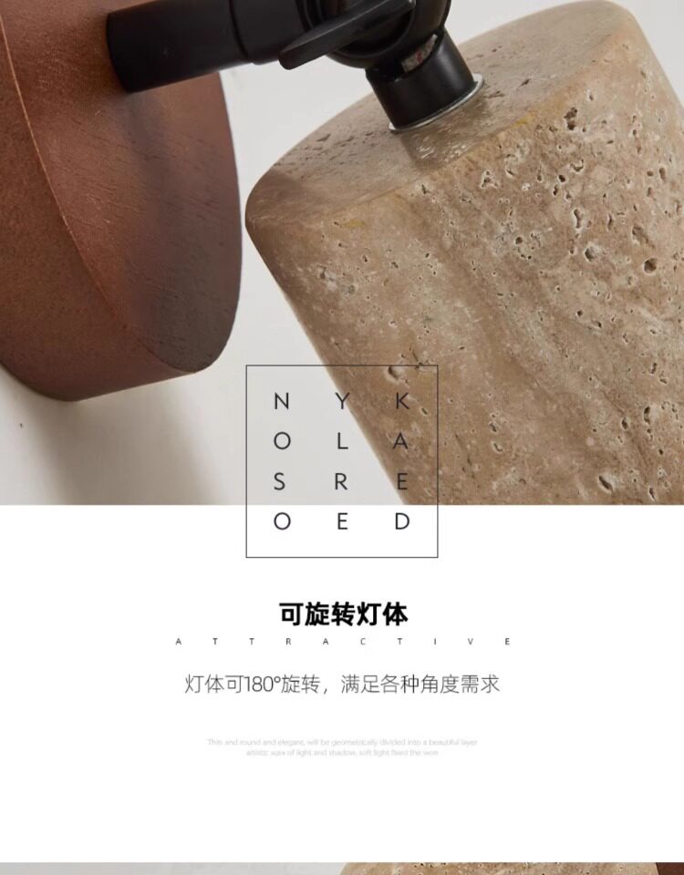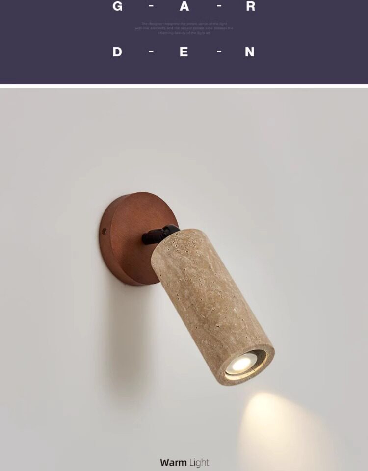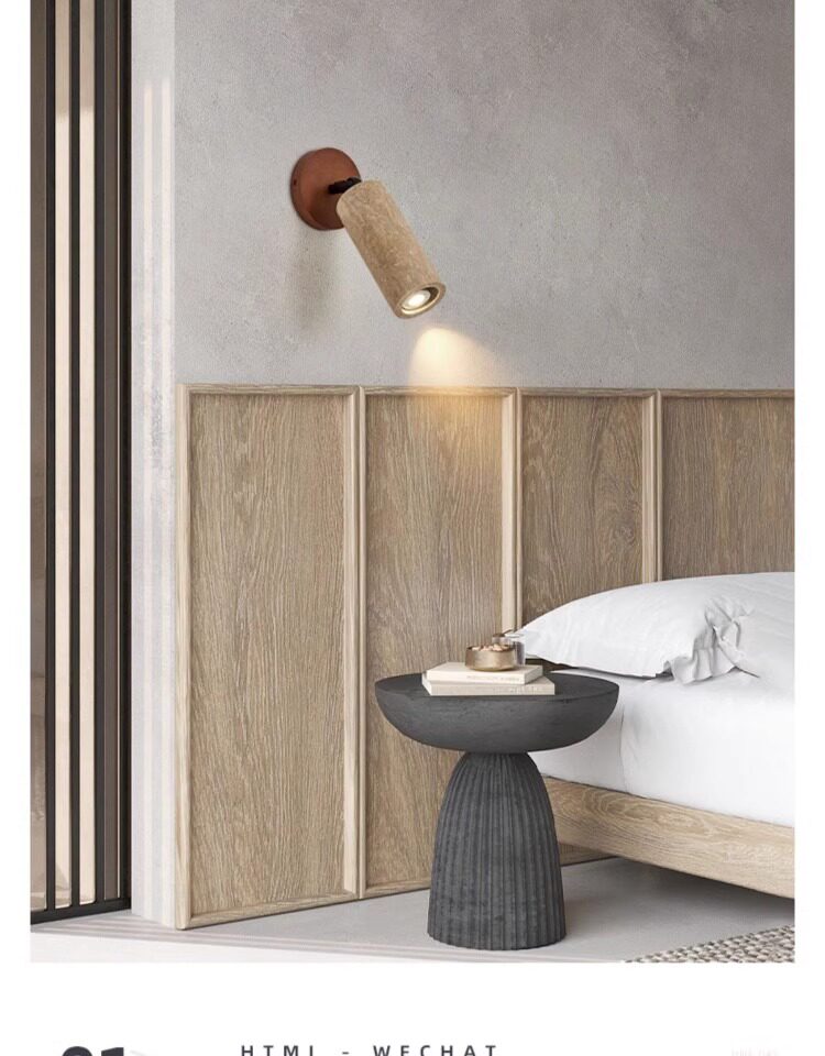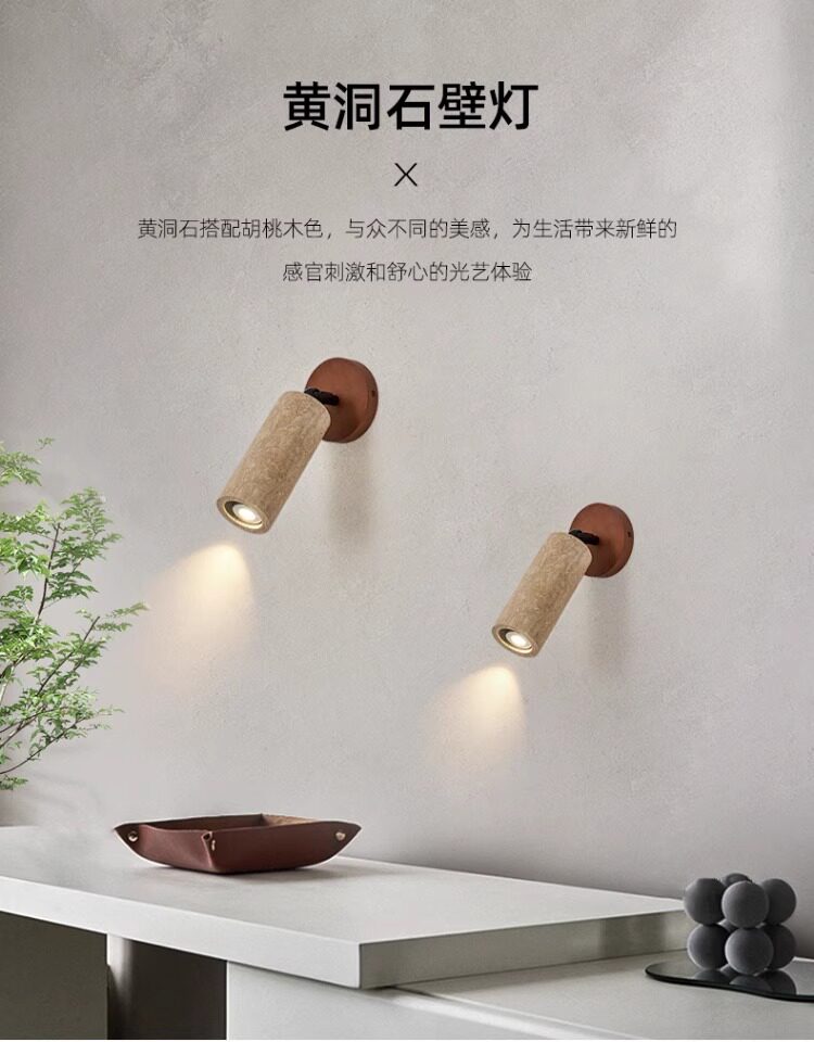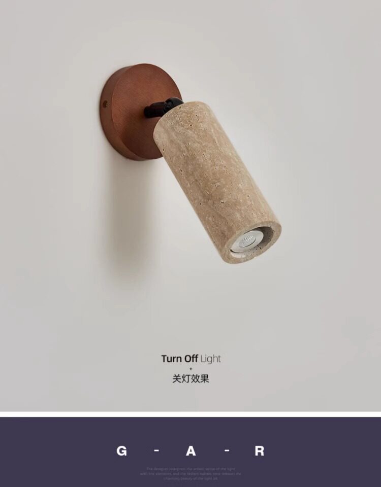 Yellow Travertine Spotlight, Solid Wood Bedroom Bedside Wall Lamp, Vintage Mid-Century Wabi-Sabi Style, High-End Ambiance Corridor Lighting for Guesthouses