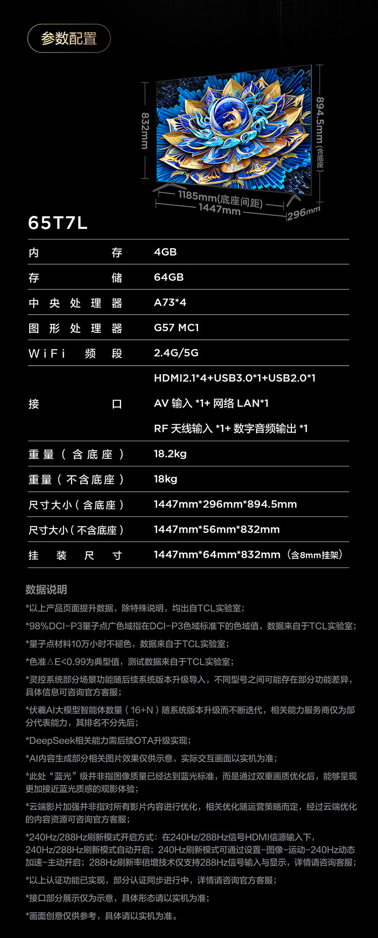 Tcl Tv 65T7L Qd-Mini Led Multi-Zone Partitioned Huaxing Screen Flat-Panel Tv