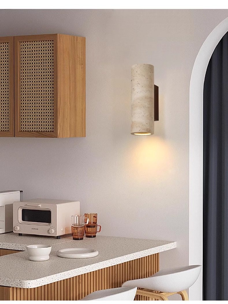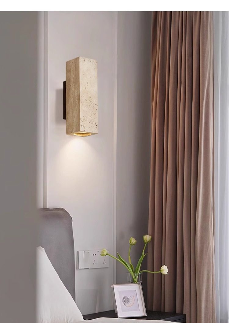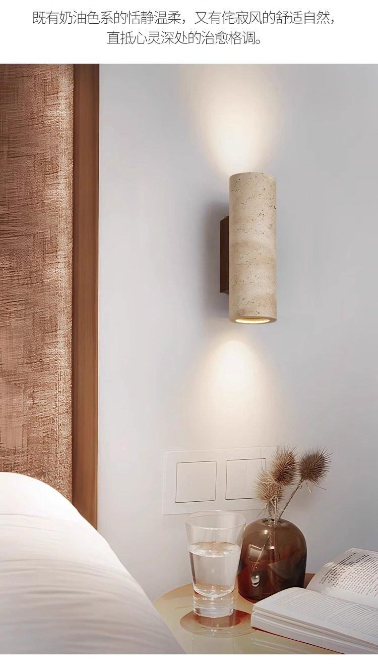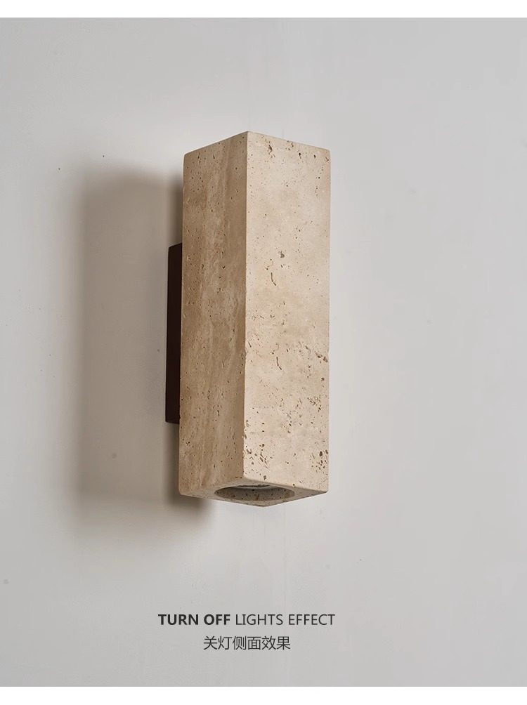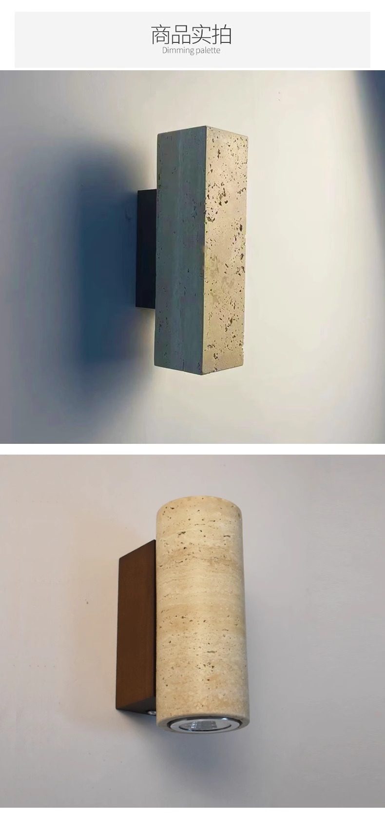 Vintage Wabi-Sabi Style Natural Yellow Travertine Wall Lamp Retro Homestay Living Room Bedroom Bedside Dining Room Corridor Ambiance Spotlight