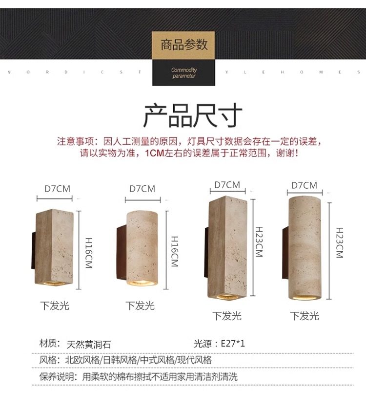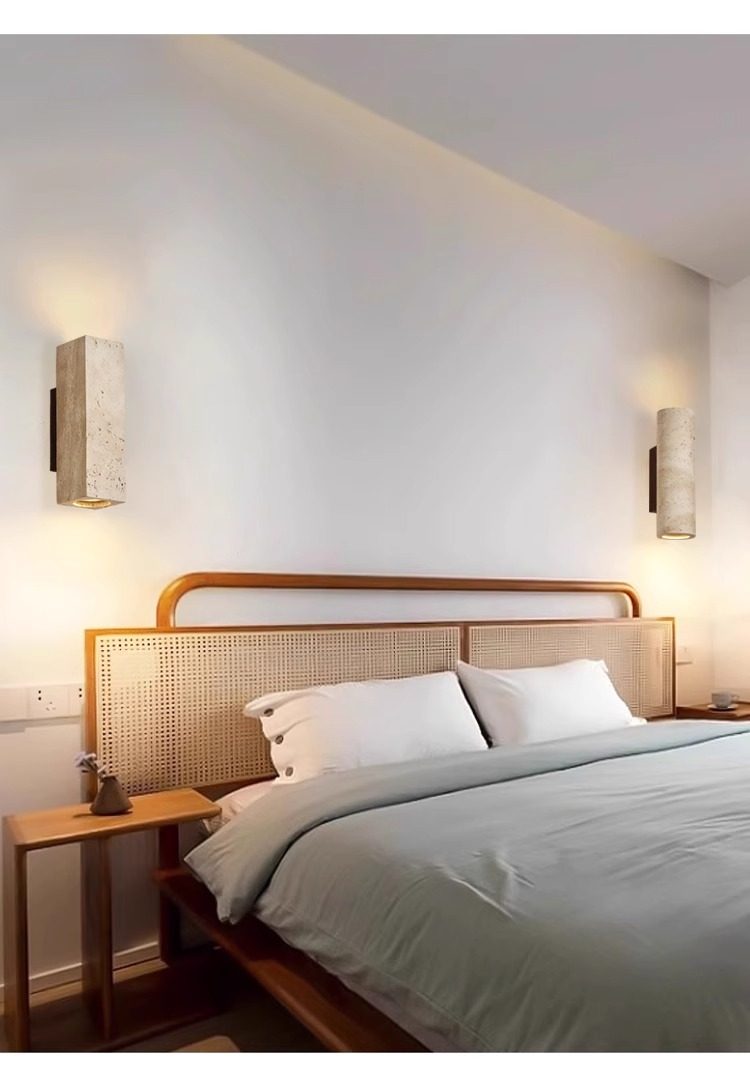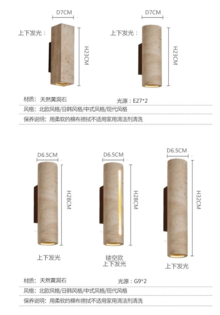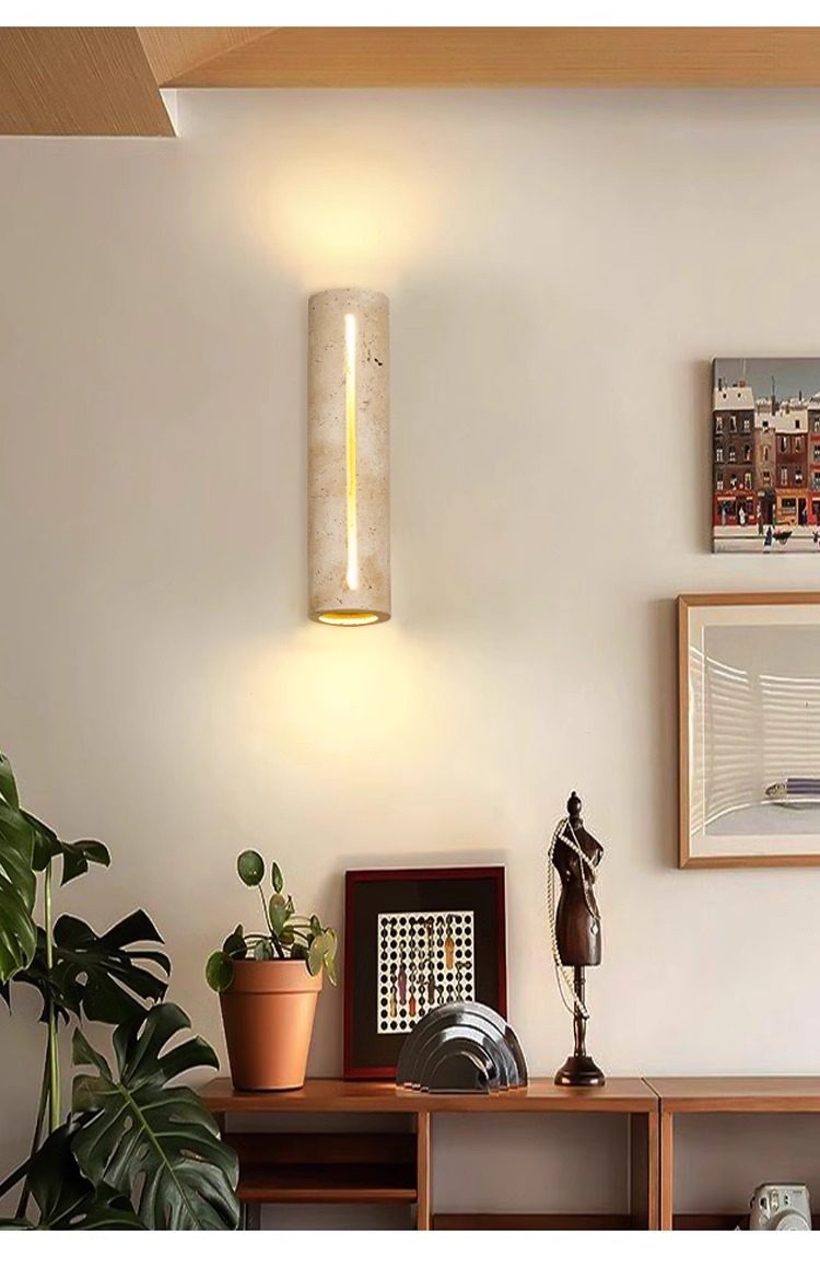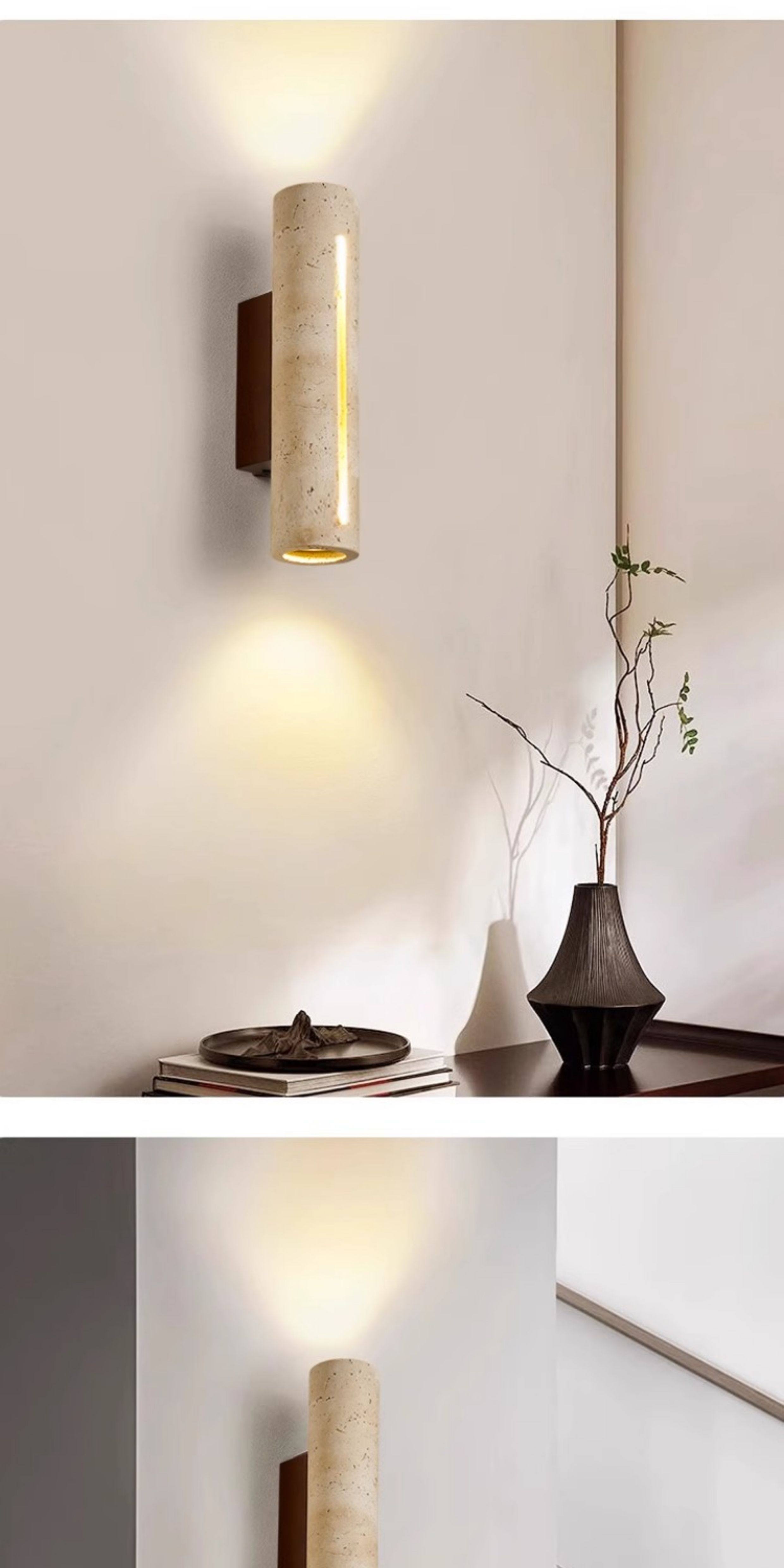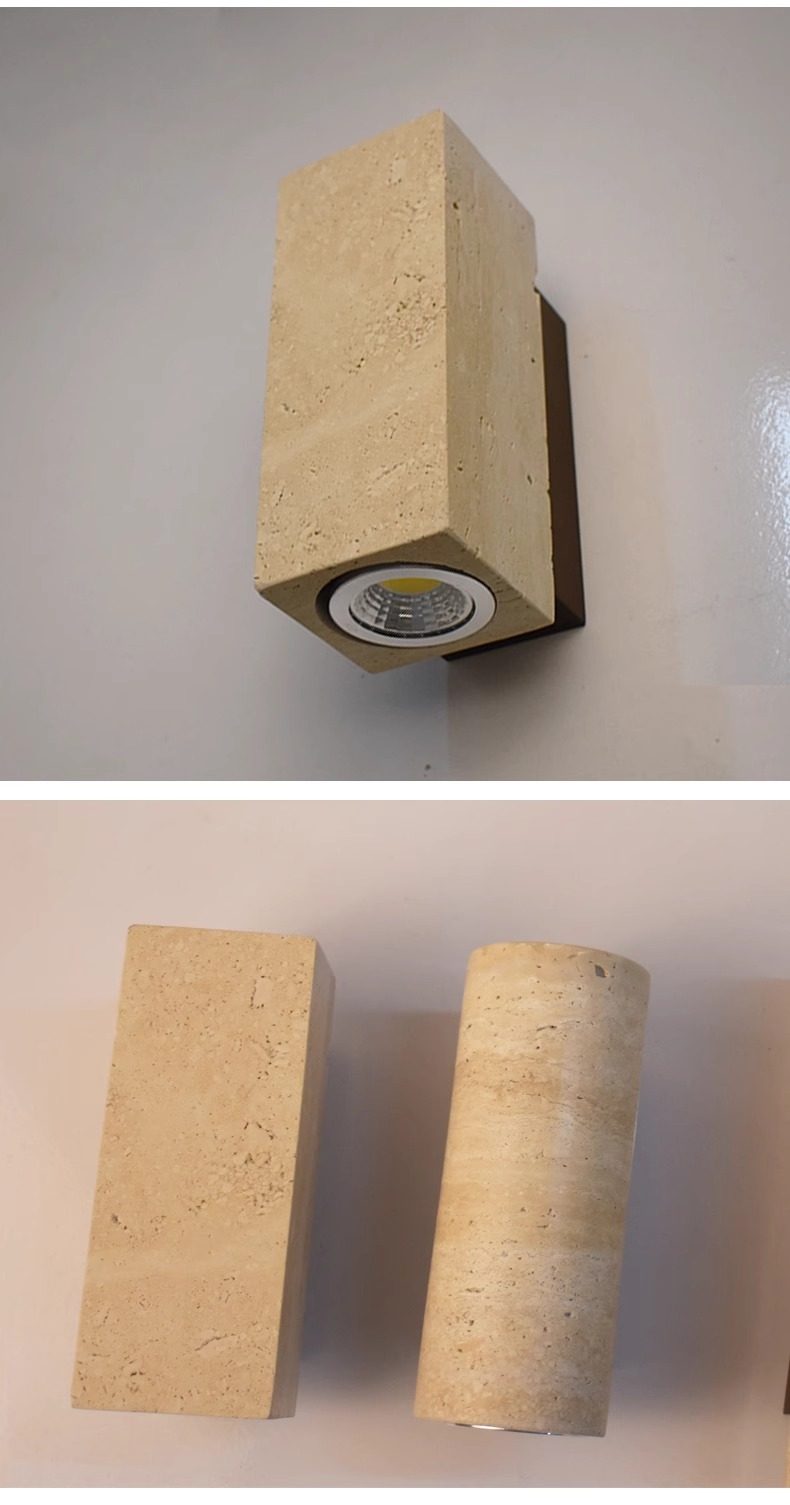 Vintage Wabi-Sabi Style Natural Yellow Travertine Wall Lamp Retro Homestay Living Room Bedroom Bedside Dining Room Corridor Ambiance Spotlight