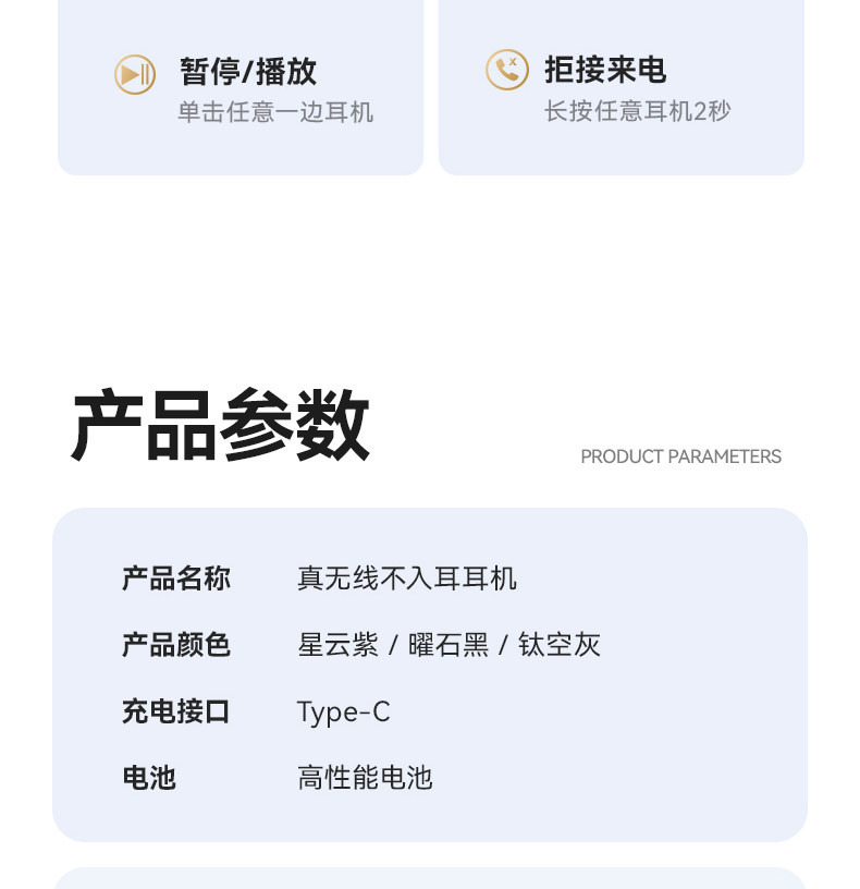 | Function | Music Playback,Heavy Bass Stereo Sound,Wireless Charging,Voice Control,Call Function,Seamless Wear,Independent Microphone,Touch Screen,E-Sports Low Latency,Waterproof |