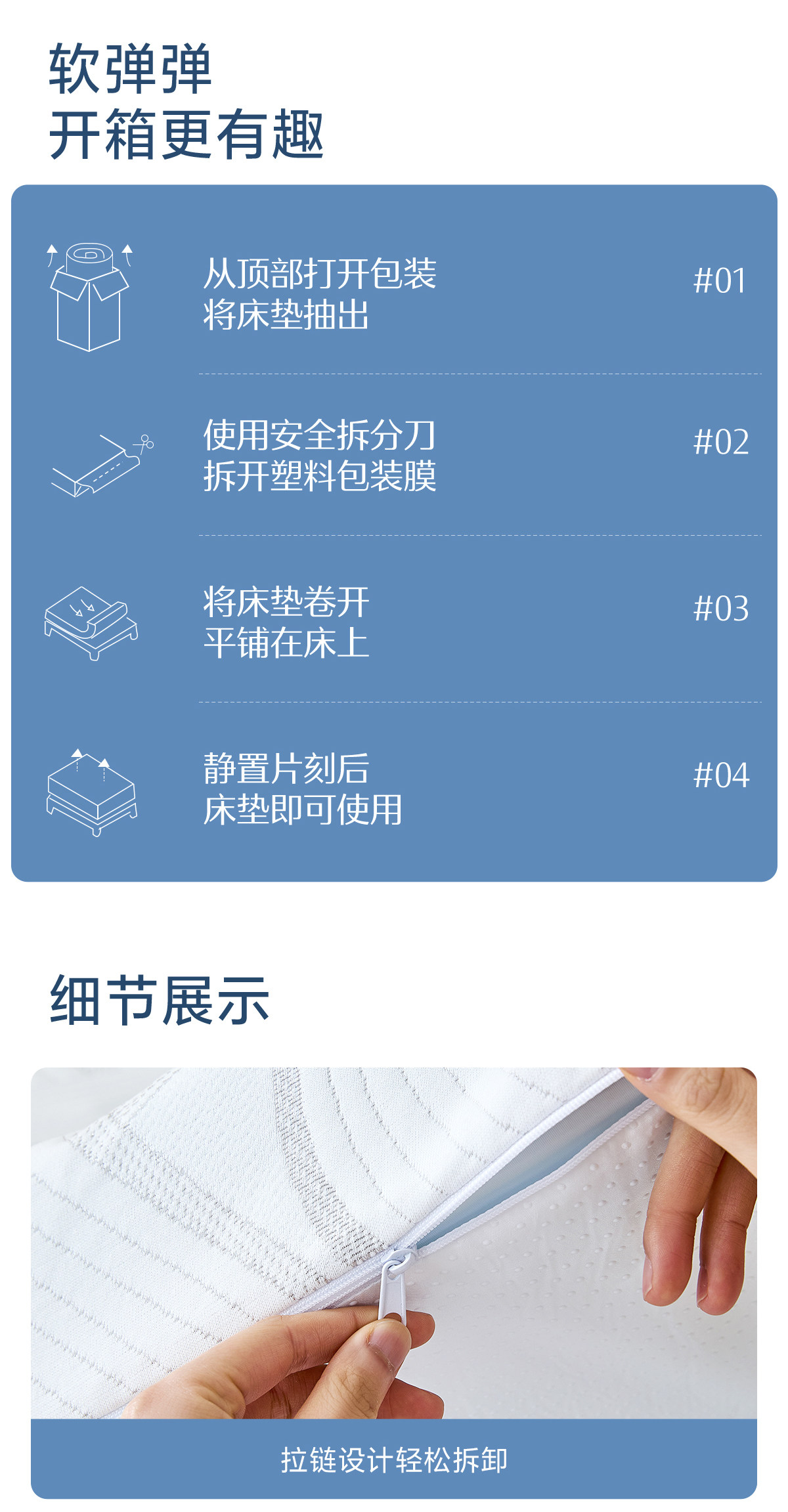 | Applicable Bed Size | 90cm×190cm×10cm,120cm×200cm×10cm,150cm×200cm×10cm,180cm×200cm×10cm |