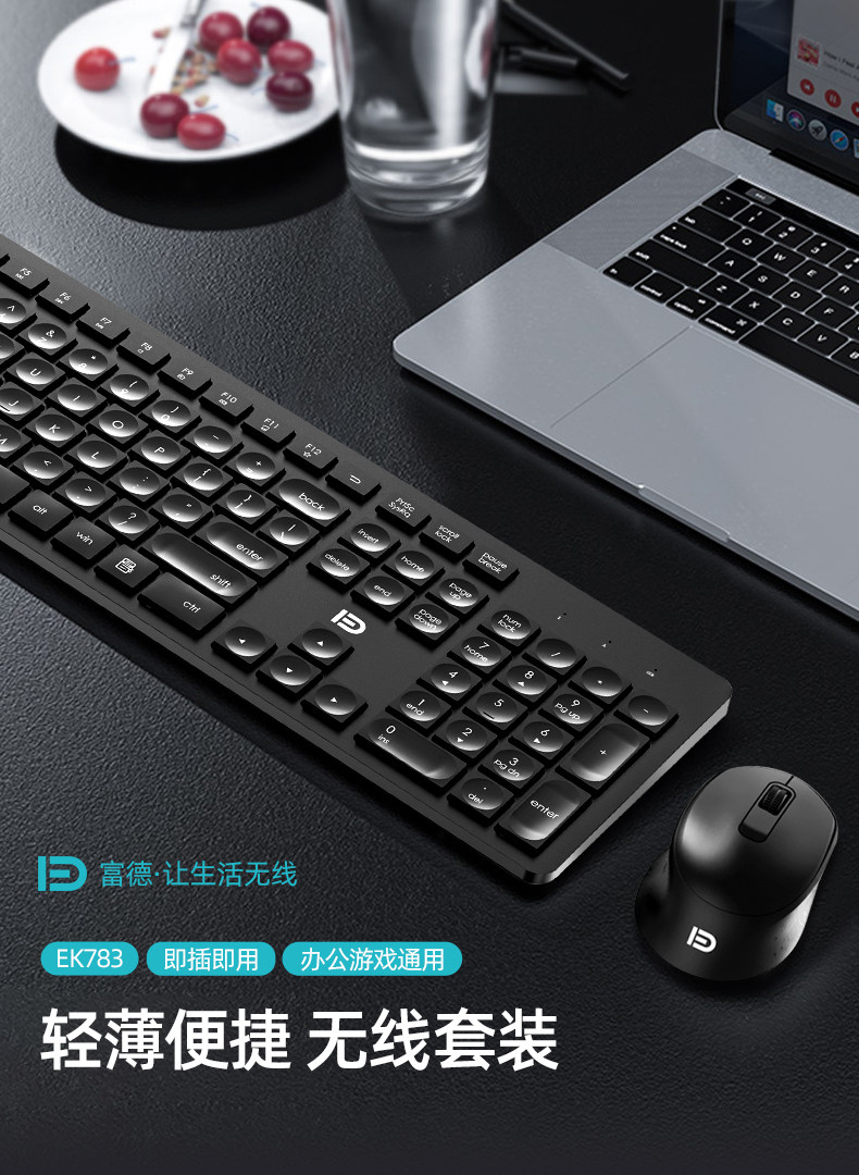 Fude Ek783 Wireless Keyboard and Mouse Set for Laptop and Desktop Computers 2.4g Keyboard and Mouse Set for Office and Home Use