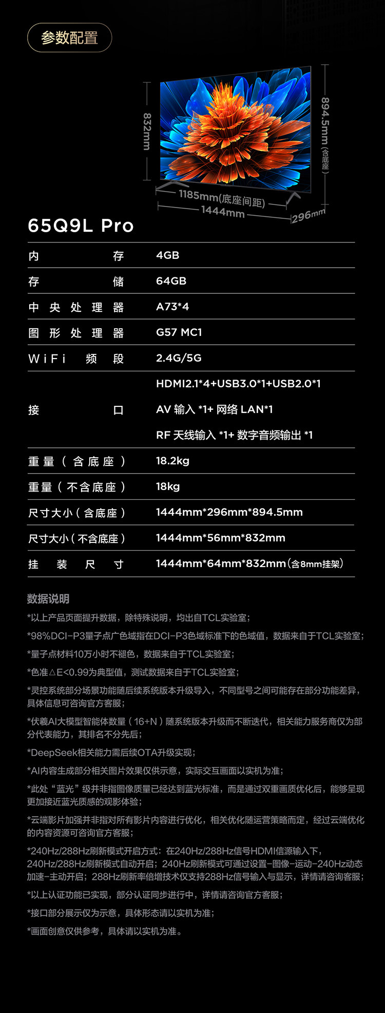 Tcl Tv 65Q9L Pro 65inch Qd-Mini Led Huaxing Butterfly Wing Star Screen Flat Panel Tv