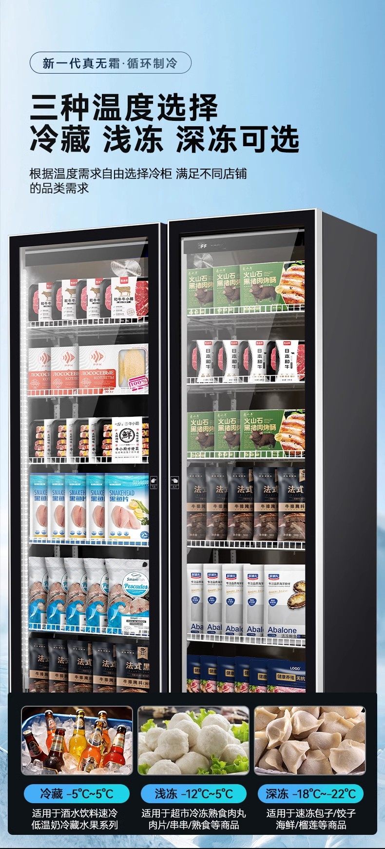 | Color Classification | [-22℃~-18℃]Single Door Full Screen Defogging 620*700*2030,[-22℃~-18℃]Double Door Full Screen Defogging 1260*700*2030,[-22℃~-18℃]Three-Door Full-Screen Defogging 1880*700*2030,[-22℃~-18℃]Four-Door Full Screen Defogging 2500*700*2030,[-22℃~-18℃]Single Door Mirror Defogging 620*700*2030,[-22℃~-18℃]Double Door Mirror Defogging 1260*700*2030,[-22℃~-18℃]Three-Door Mirror Defogging 1880*700*2030,[-22℃~-18℃]Four-Door Mirror Defogging 2500*700*2030,[-12℃~-5℃]Single Door Full Screen Defogging 620*700*2030,[-12℃~-5℃]Double Door Full Screen Defogging 1260*700*2030,[-12℃~-5℃]Three-Door Full-Screen Defogging 1880*700*2030,[-12℃~-5℃]Four-Door Full Screen Defogging 2500*700*2030,[-12℃~-5℃]Single Door Mirror Defogging 620*700*2030,[-12℃~-5℃]Double Door Mirror Defogging 1260*700*2030,[-12℃~-5℃]Three-Door Mirror Defogging 1880*700*2030,[-12℃~-5℃]Four-Door Mirror Defogging 2500*700*2030,[-5℃~5℃]Single Door Full Screen Defogging 620*700*2030,[-5℃~5℃]Double Door Full Screen Defogging 1260*700*2030,[-5℃~5℃]Three-Door Full-Screen Defogging 1880*700*2030,[-5℃~5℃]Four-Door Full Screen Defogging 2500*700*2030,[-5℃~5℃]Single Door Mirror Defogging 620*700*2030,[-5℃~5℃]Double Door Mirror Defogging 1260*700*2030,[-5℃~5℃]Three-Door Mirror Defogging 1880*700*2030,[-5℃~5℃]Four-Door Mirror Defogging 2500*700*2030 |
