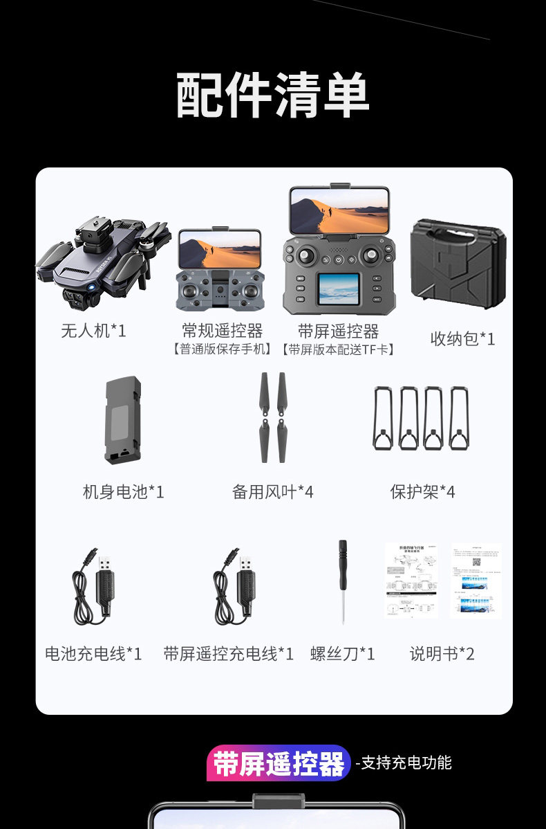 | Color Classification | No Aerial Photography[Automatic Obstacle Avoidance/Intelligent Height Setting]One-Click Return,8K Single Camera[Intelligent Height Setting/Automatic Hover]One-Click Return,8K Dual Camera[Intelligent Height Setting/Automatic Hover]One-Click Return,8K Single Camera[Intelligent Height Setting/Automatic Obstacle Avoidance]One-Click Battery Life,8K Dual Camera[Intelligent Height Setting/Automatic Obstacle Avoidance]One-Click Battery Life,6K Electronically Controlled Dual Camera[Intelligent Fixed Height Optical Flow/360 Obstacle Avoidance]One-Click Return,8K Electronically Controlled Dual Camera[Intelligent Fixed Height Optical Flow/360 Obstacle Avoidance]One-Click Return,Large 6K Electronically Controlled Three-Camera Brushless[Intelligent Fixed Height Optical Flow/360 Obstacle Avoidance]One-Click Return,Large 8K Electronically Controlled Three-Camera Brushless[Intelligent Fixed Height Optical Flow/360 Obstacle Avoidance]One-Click Return,⭐Large 6K Electronically Controlled Five-Camera Brushless[Optical Flow Fixed Height Fixed Point/720 Obstacle Avoidance]Automatic Return,⭐Large 8K Electronically Controlled Five-Camera Brushless[Optical Flow Fixed Height Fixed Point/720 Obstacle Avoidance]Automatic Return,Comes with Screen⭐Large Esc 6K Five Cameras[Optical Flow Fixed Height Stabilization/720 Obstacle Avoidance]Automatic Return,Comes with Screen⭐Large Esc 8K Five Cameras[Optical Flow Fixed Height Stabilization/720 Obstacle Avoidance]Automatic Return,Remote Control with Screen⭐Large Esc 6K Five Cameras[Brushless Motor + Optical Flow Altitude Hold & Stabilization / 720 Obstacle Avoidance]Automatic Return,Remote Control with Screen⭐Large Esc 8K Five Cameras[Brushless Motor + Optical Flow Altitude Hold & Stabilization / 720 Obstacle Avoidance]Automatic Return,Large Screen Remote Control⭐Large Esc 6K Five Cameras[Brushless Motor + Optical Flow Altitude Hold & Stabilization / 720 Obstacle Avoidance]Automatic Return,Large Screen Remote Control⭐Large Esc 8K Five Cameras[Brushless Motor + Optical Flow Altitude Hold & Stabilization / 720 Obstacle Avoidance]Automatic Return |