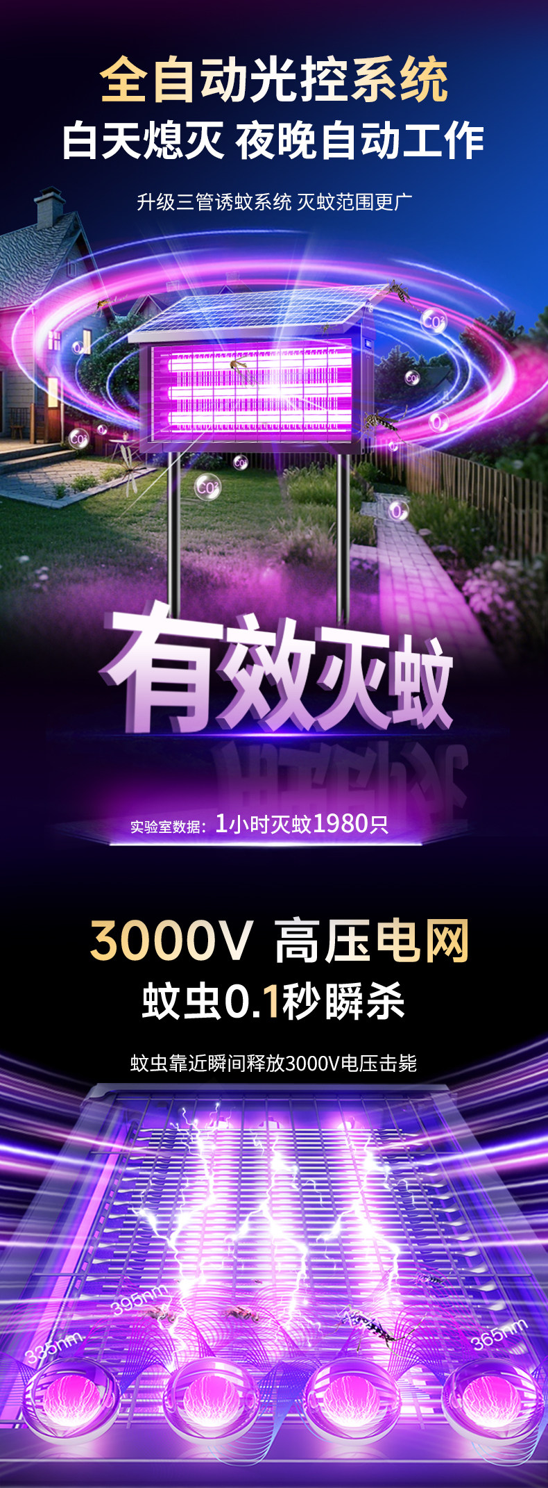2025 New Large Outdoor Solar Mosquito Killer Lamp for Home Courtyard, Waterproof Insect Killer Lamp, Powerful Electric Mosquito Repellent Device