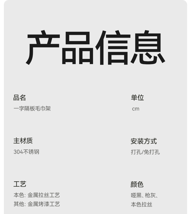 | Color Classification | Matt Black Towel Rack 40cm[304]Thickened 2mm Without Nailing/Punching,Gun Gray Towel Rack 40cm[304]Thickened 2mm Without Nailing/Punching,Natural Brushed Towel Rack 40cm[304]Thickened 2mm Without Nailing/Punching,Matt Black Towel Rack 60cm[304]Thickened 2mm Without Nailing/Punching,Gun Gray Towel Rack 60cm[304]Thickened 2mm Without Nailing/Punching,Natural Brushed Towel Rack 60cm[304]Thickened 2mm Without Nailing/Punching |