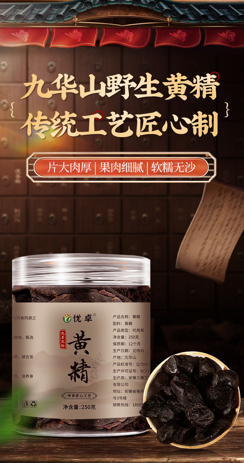 Jiuhua Mountain Wild Polygonatum Sibiricum, Nine Times Steamed and Processed, Ready-To-Eat Chinese Herbal Medicine, Authentic Official Flagship Store, Polygonatum Sibiricum Slices, Health-Preserving Tea