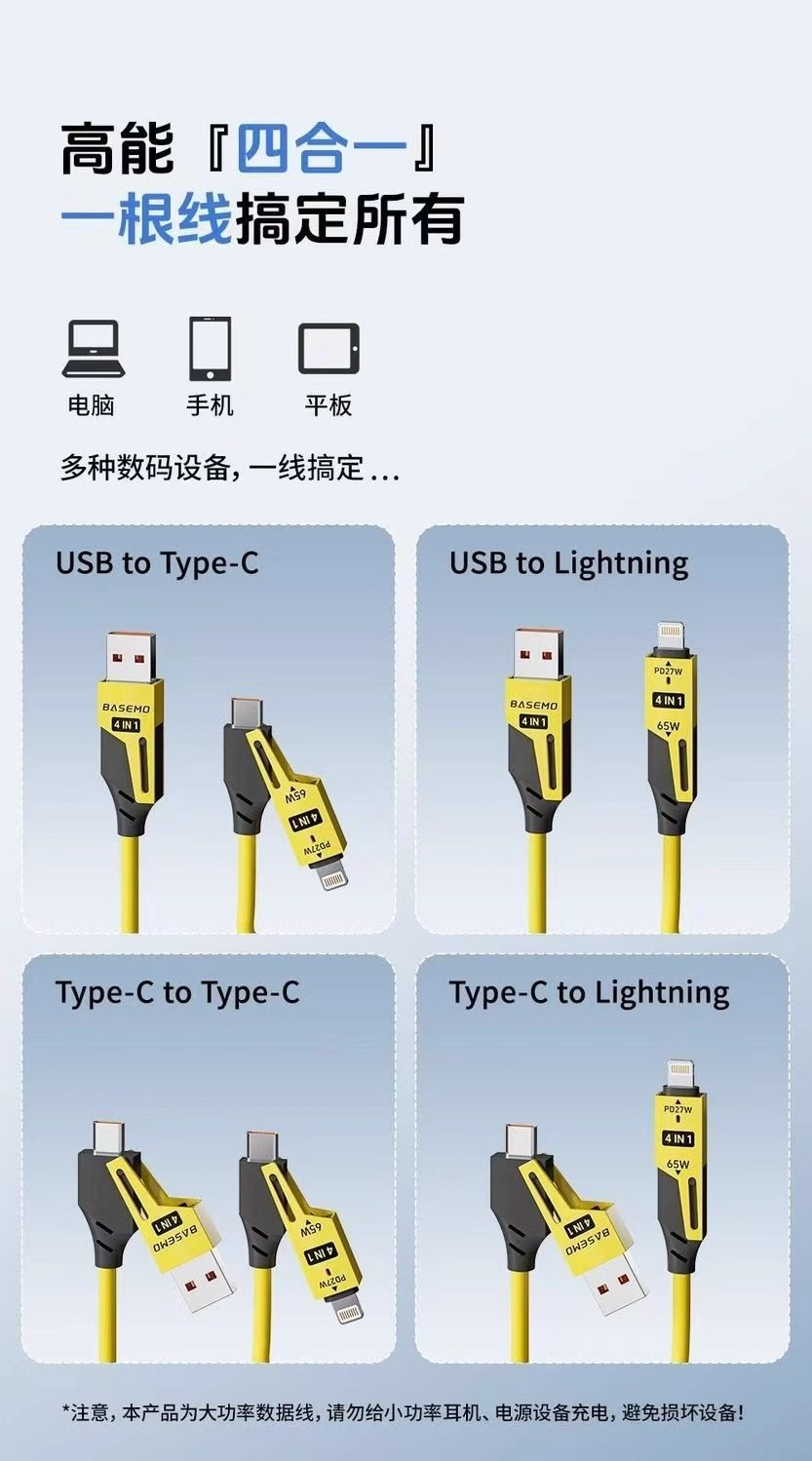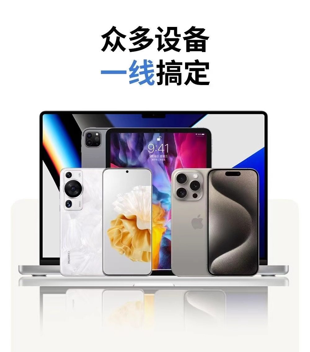 Fully Compatible Fast Charging 65W Four-In-One Spring Retractable Data Cable Suitable for Huawei Flash Charging Type-C Android Apple Pd Car Carplay Screen Projection Cable USB Laptop iPhone 16 Charger