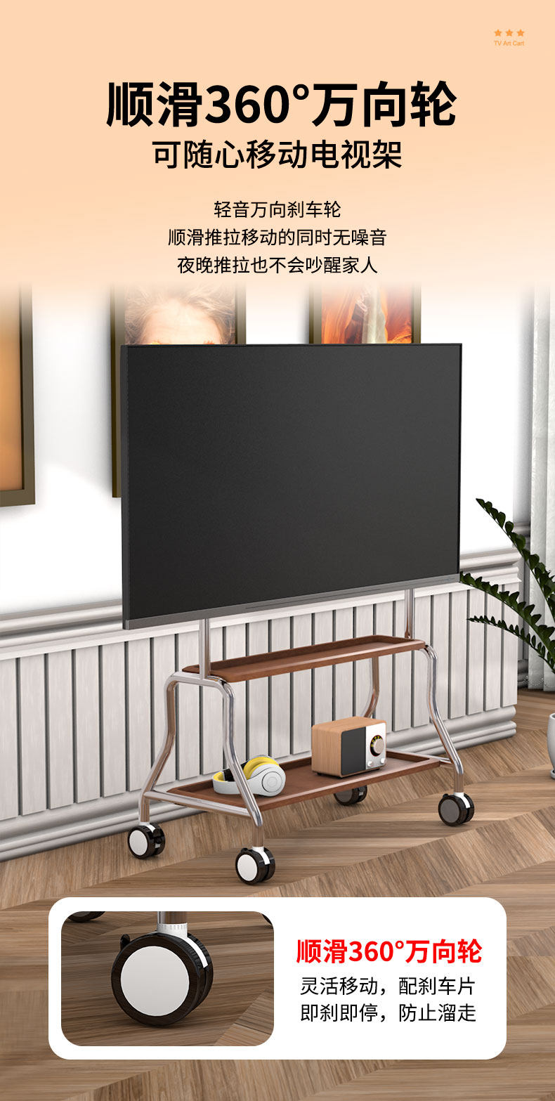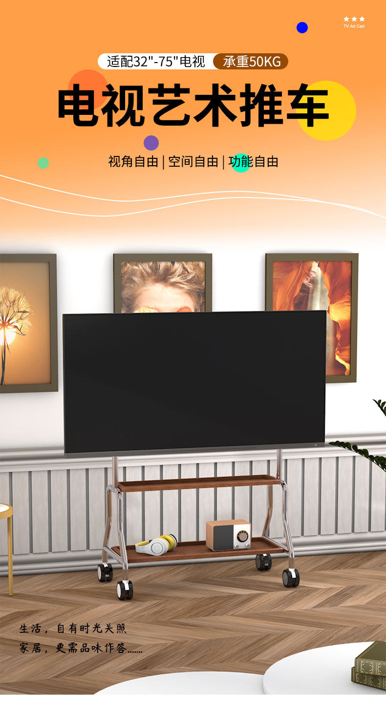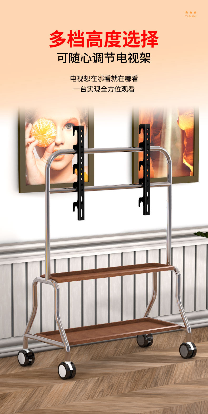 Adjustable Height Stainless Steel Tv Mobile Stand with Wheels Integrated Cart Display Stand 32-75inch