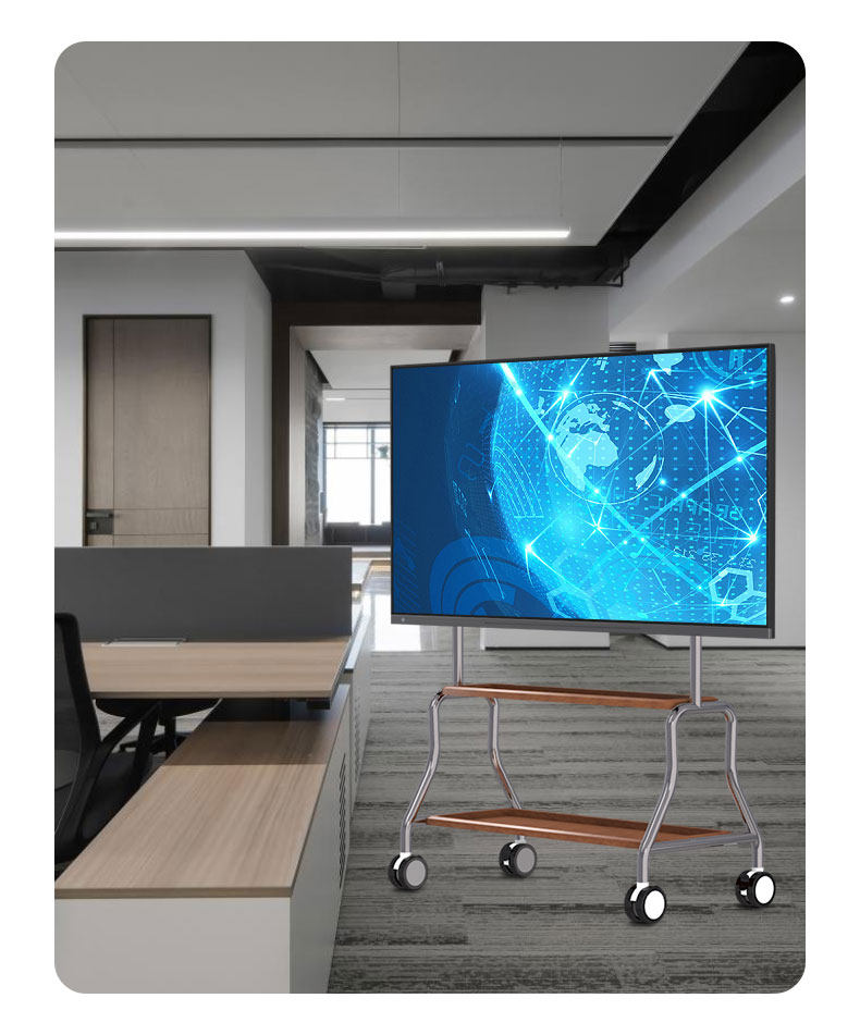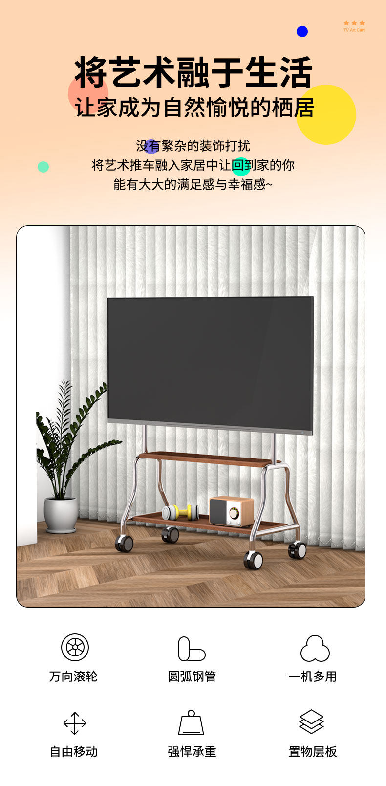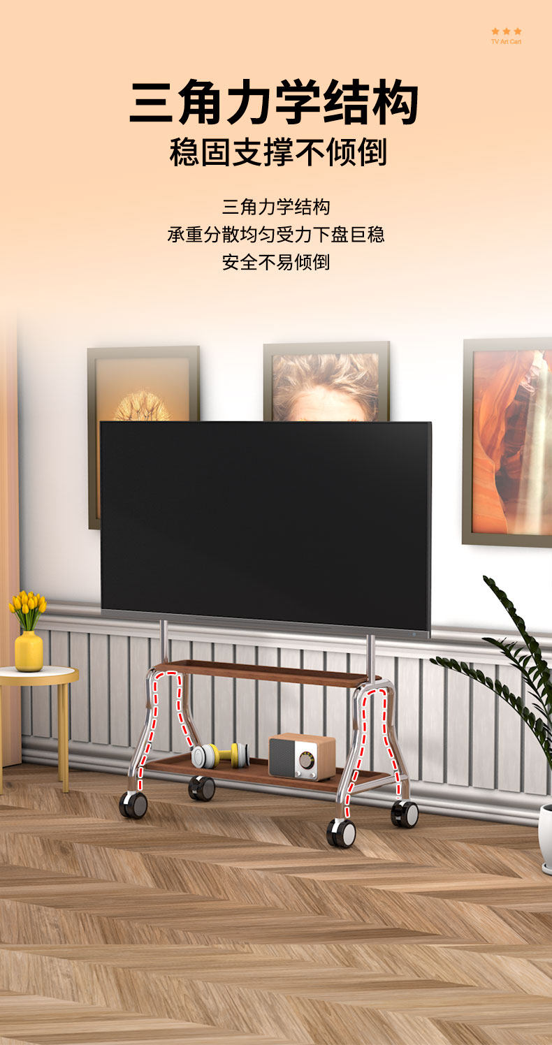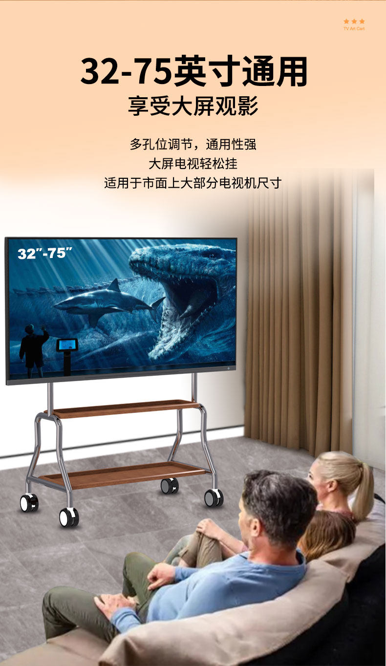 Adjustable Height Stainless Steel Tv Mobile Stand with Wheels Integrated Cart Display Stand 32-75inch