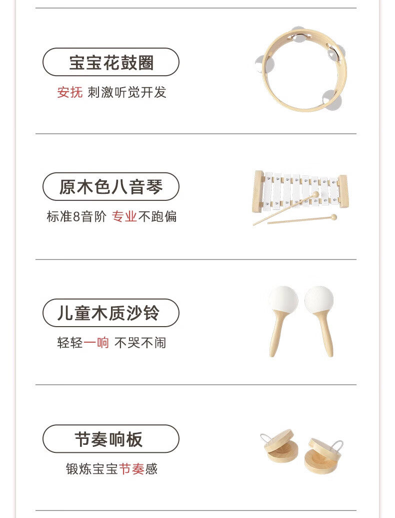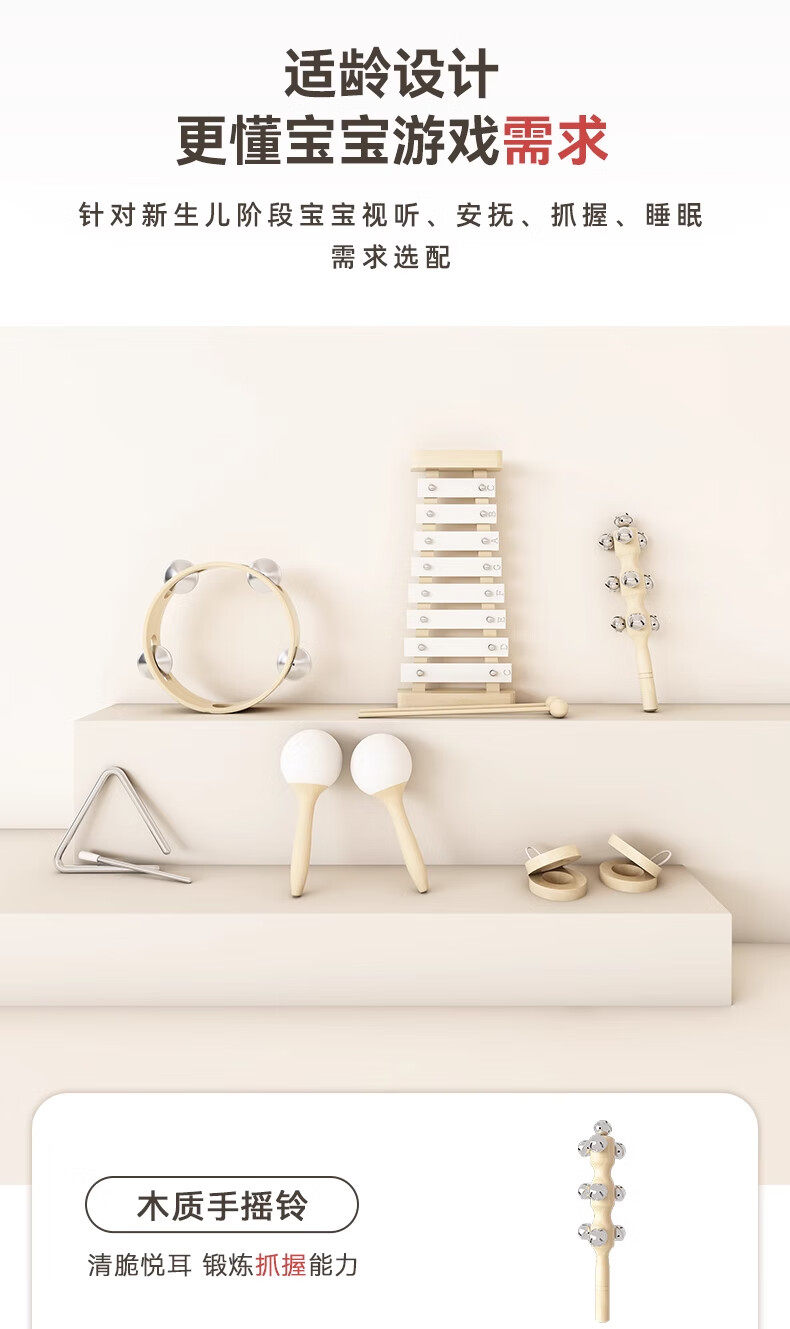 Newborn Baby 0 to 6 Months and Above Wooden Musical Instrument Toys 1-Year-Old Baby Boys and Girls New Year Early Education Meeting Gift