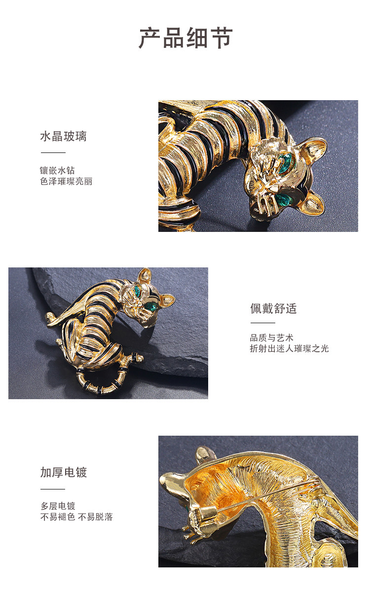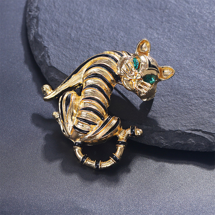 European and American Cross-Border Retro Creative Tiger Brooch, Personalized Trendy Animal Clothing Accessories, High-End Suit Badge