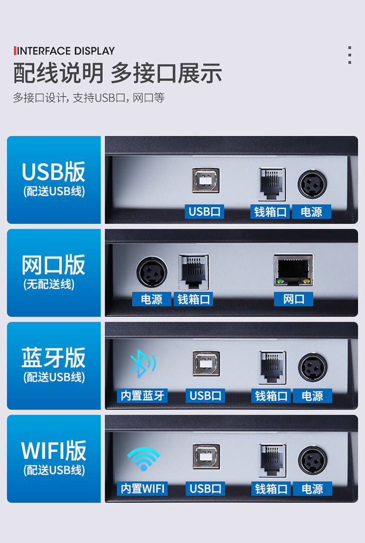 | Color Classification | N160Ii [USB + Ethernet] Front Desk & Kitchen,N160Ii [Usb+Bluetooth] Mobile Phone Bluetooth Version,N160Ii【Usb+Wifi】Free 6 Rolls of Paper,80t [Single USB Interface] Comes with 6 Rolls of Paper,80t [USB + Ethernet] Includes 6 Rolls of Paper,T80B [Single USB Interface] Comes with 6 Rolls of Paper,A160M [Single USB Interface] Comes with 6 Rolls of Paper,A160M [Single Network Port] Comes with 6 Rolls of Paper,Q200 [USB + Ethernet] Includes 6 Rolls of Thermal Paper,C300H [Usb+Network Port+Serial Port] Free 6 Rolls of Paper,R330H [USB + Ethernet] Includes 6 Rolls of Thermal Paper |