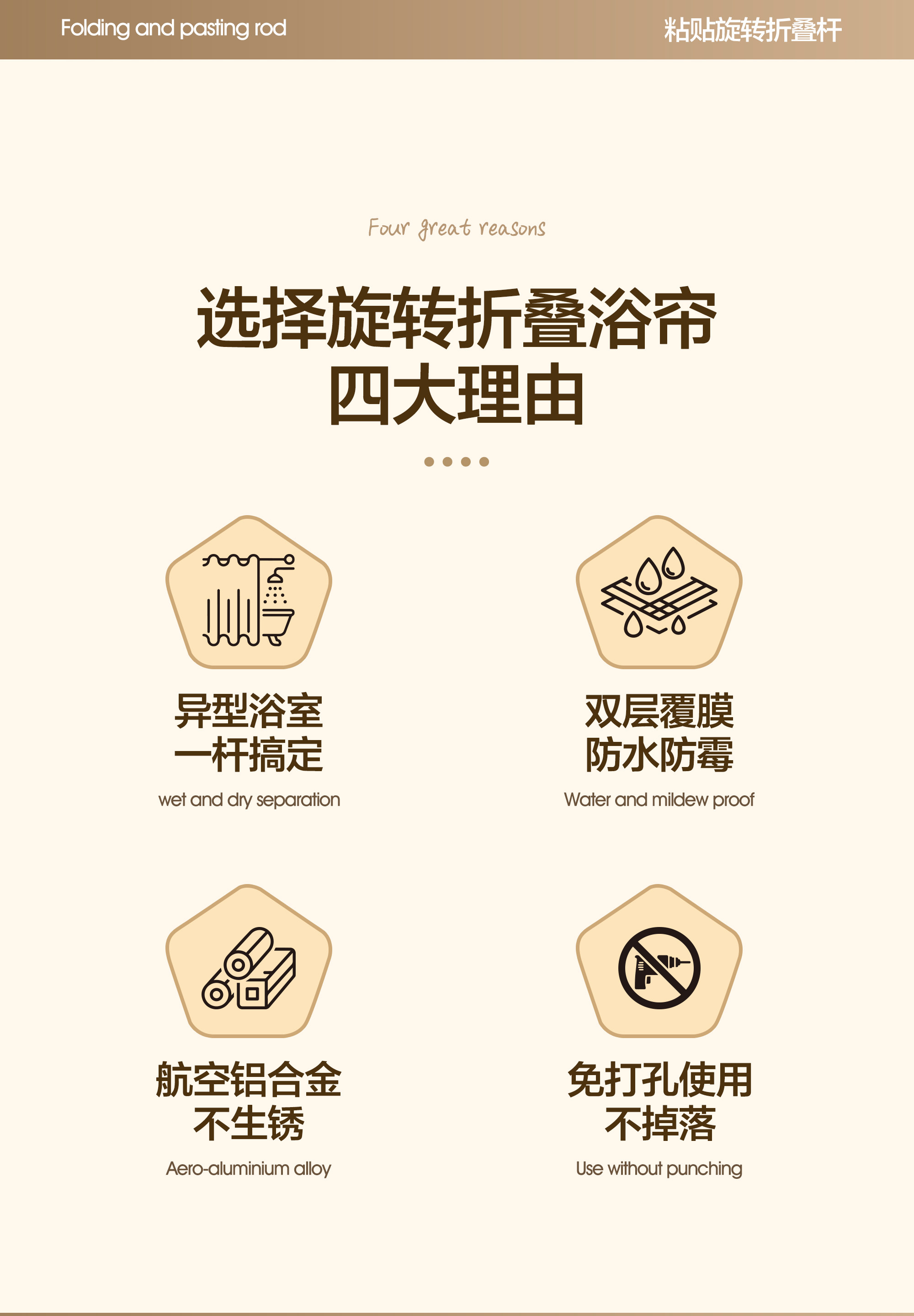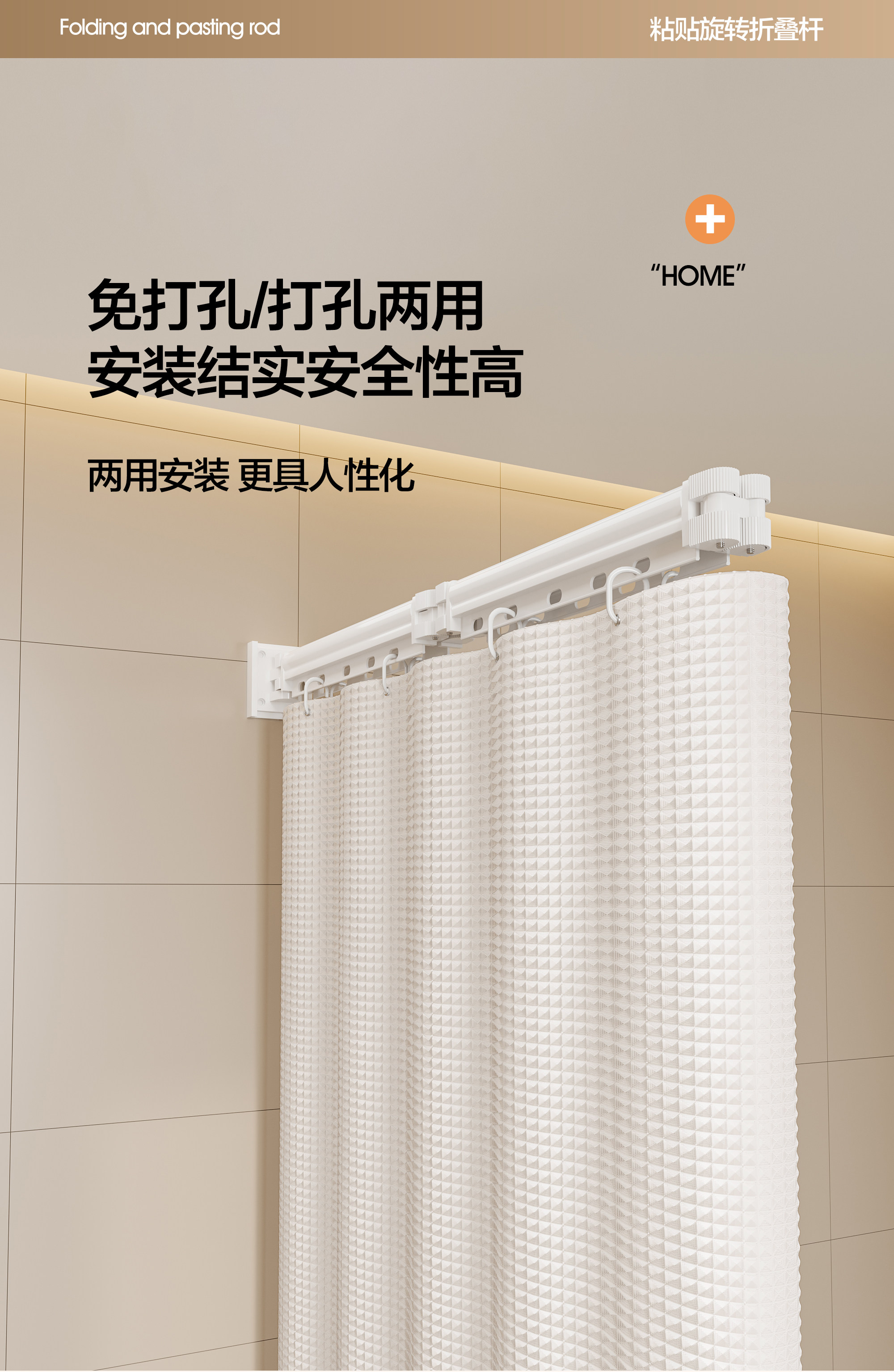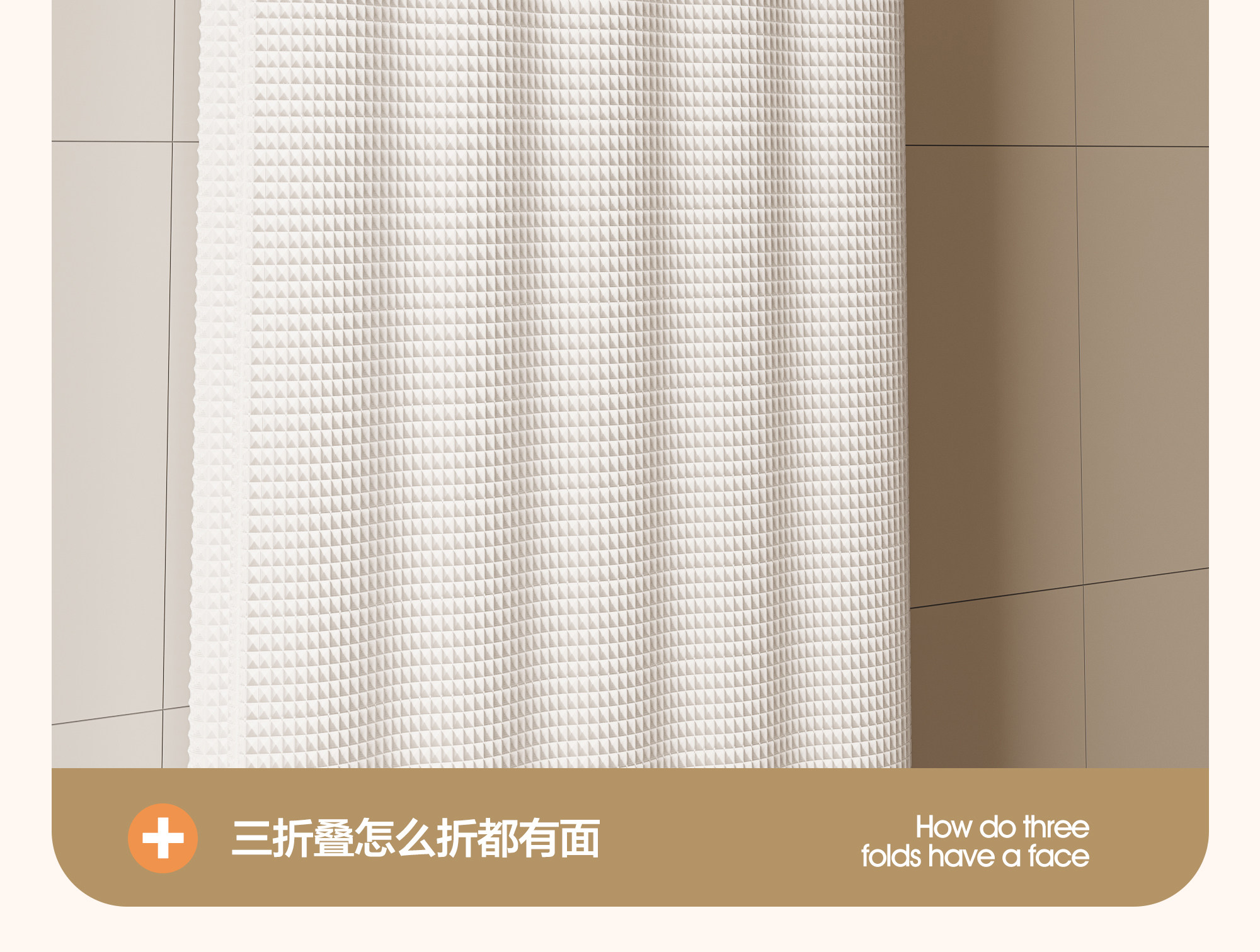 Bathroom Shower Curtain Foldable Invisible No-Drill Bathroom Dry and Wet Separation Shower Curtain Waterproof Mildew-Proof Shower Curtain