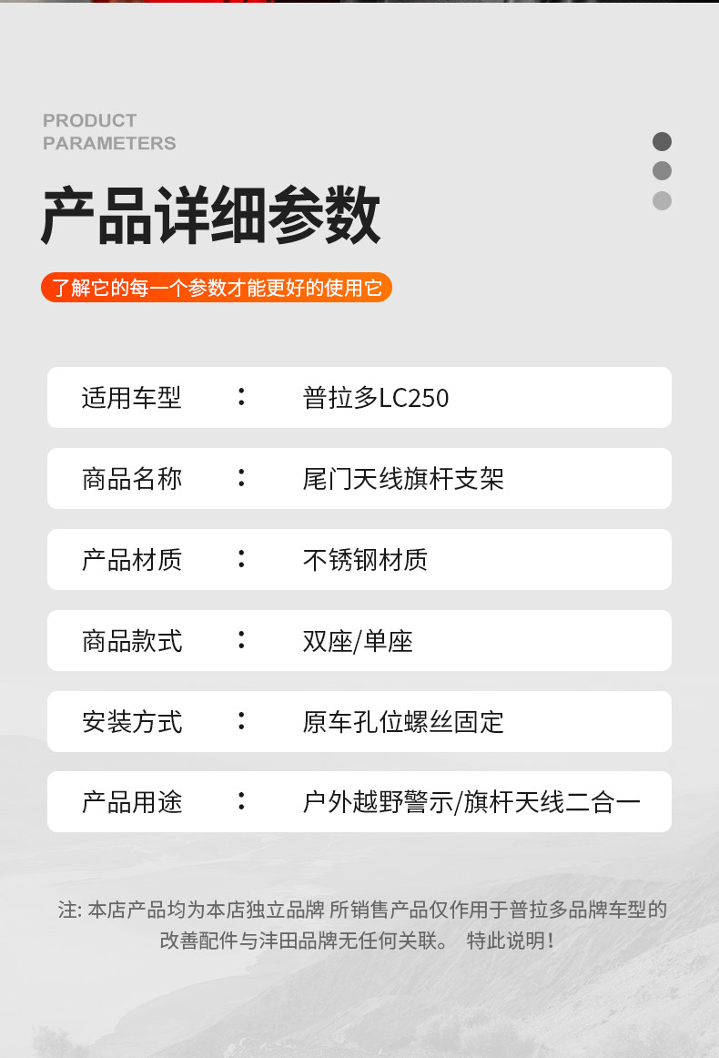 | Color Classification | Prado Lc250 [Dual-Purpose Base + Antenna + Flagpole],Prado Lc250 [Single-Use Base + Antenna],Mc Left Flagpole Bracket [Flagpole + Antenna Bracket]-1 Set,Mc Right Side Flagpole Bracket [Flagpole + Antenna Bracket]-1 Set |