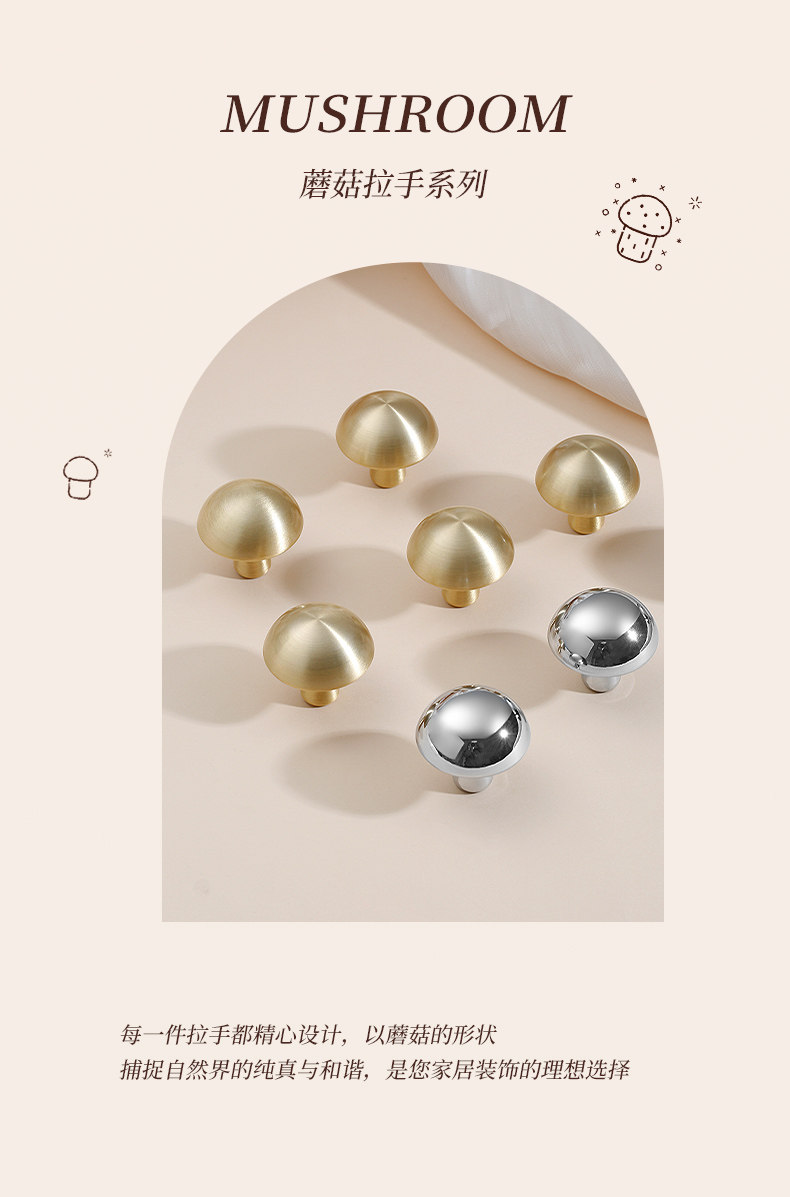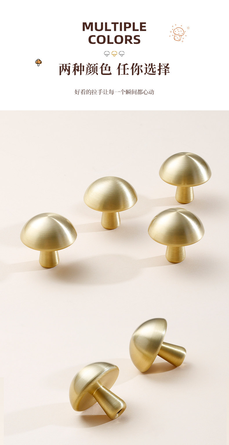 Creative Stylish Cute Mushroom Brass Cabinet Door Handle French Kidsren's Room Cabinet Wardrobe Cabinet Drawer Door Handle