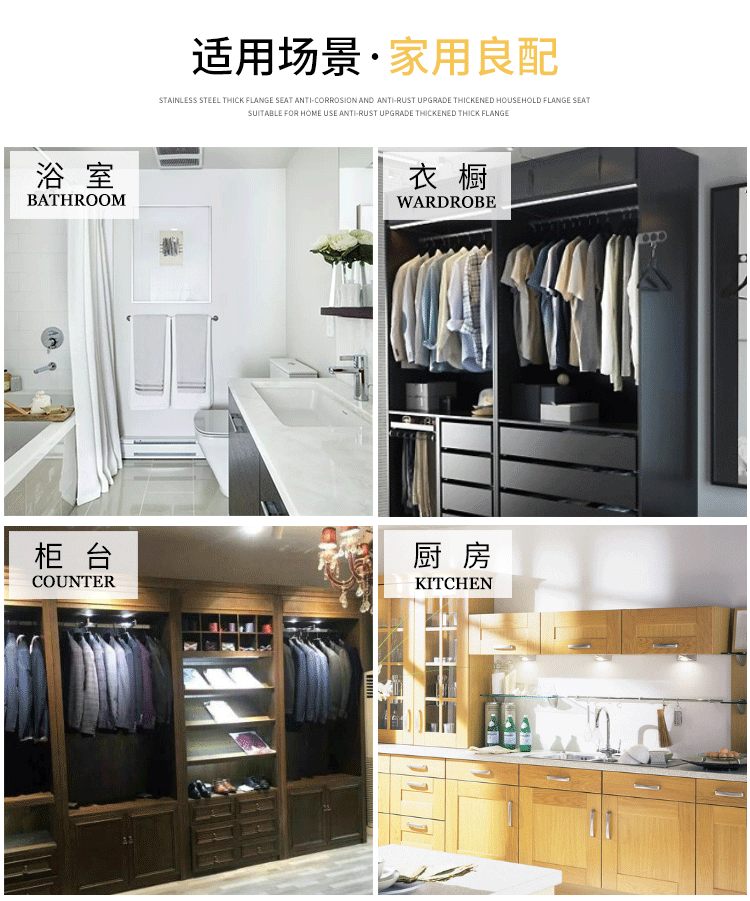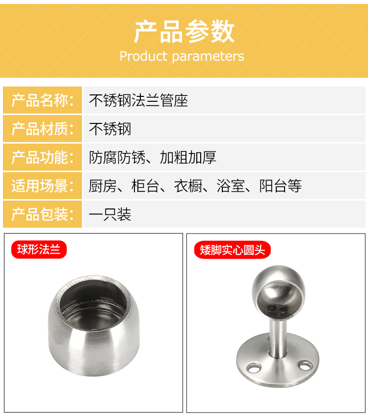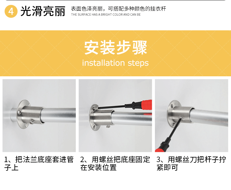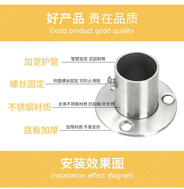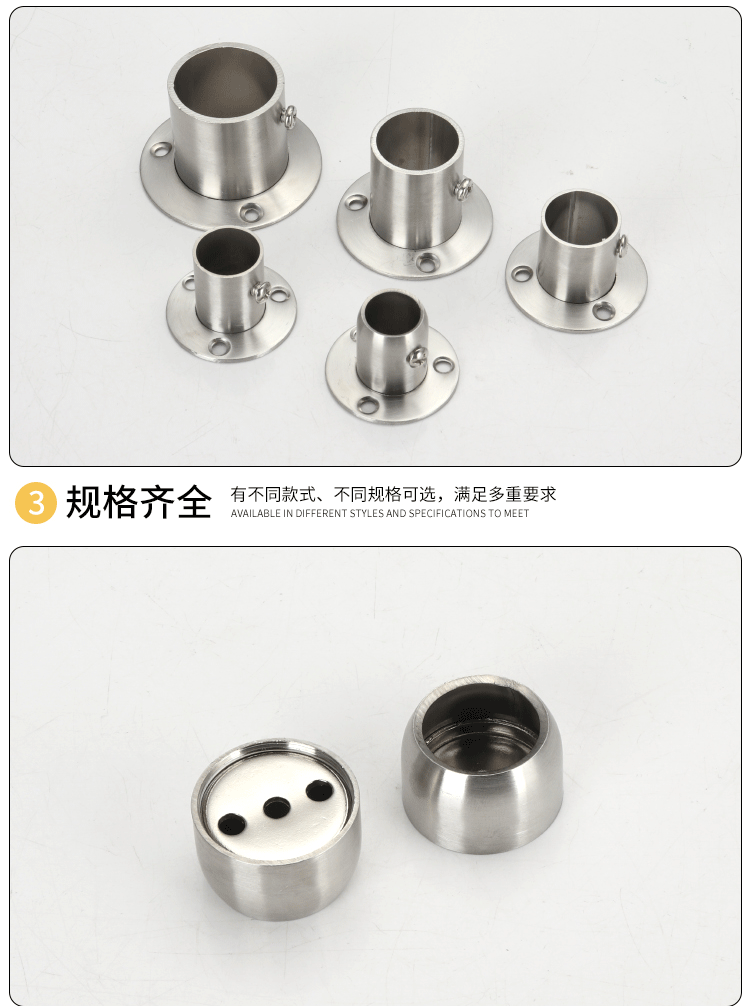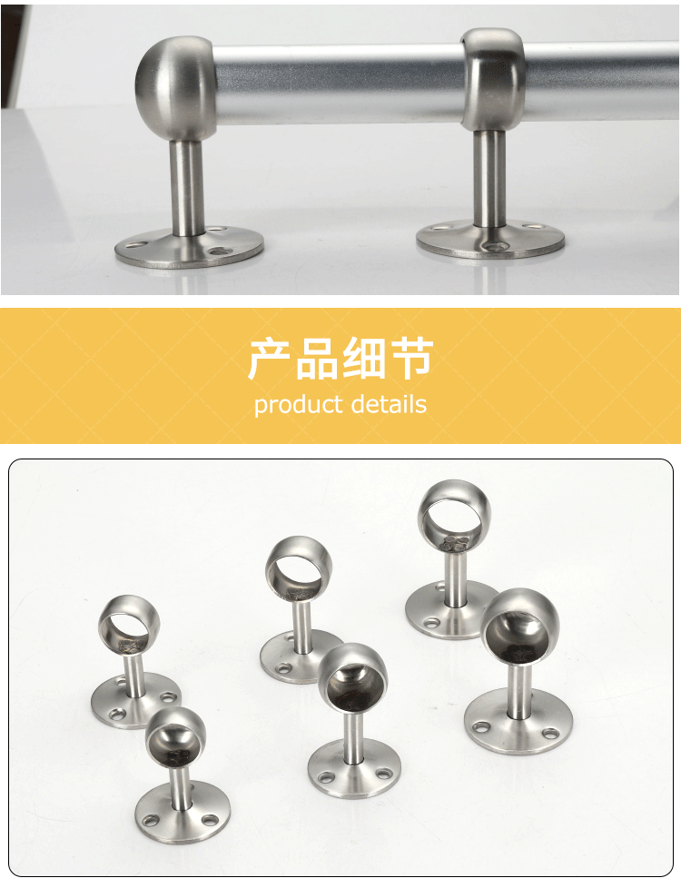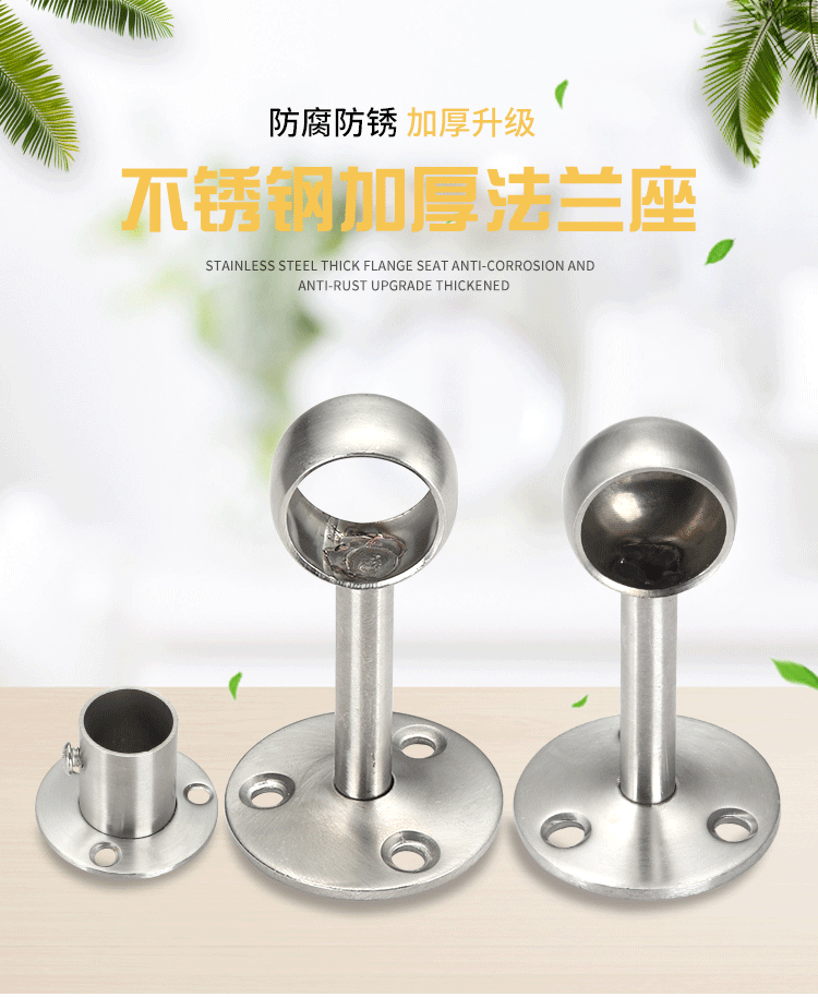 Stainless Steel Round Tube Flange Base Wardrobe Clothes Rail Fixed Base Round Clothes Drying Rod Base Steel Pipe Base Accessories Thickened