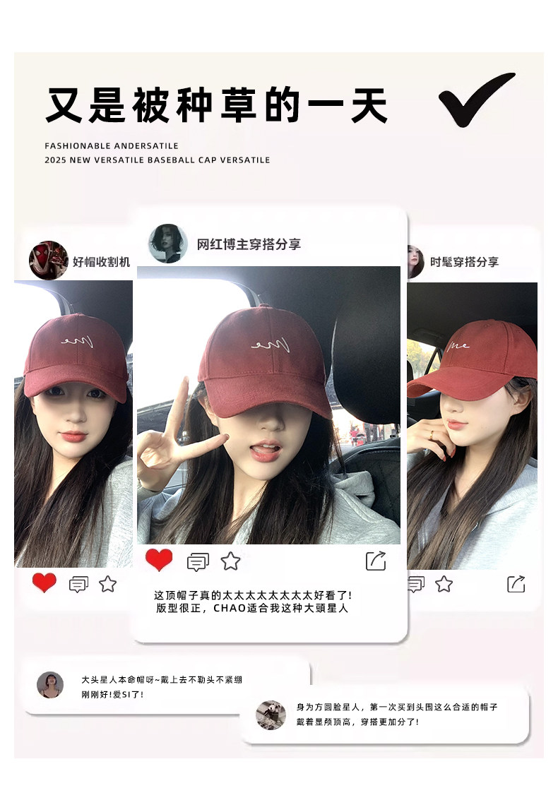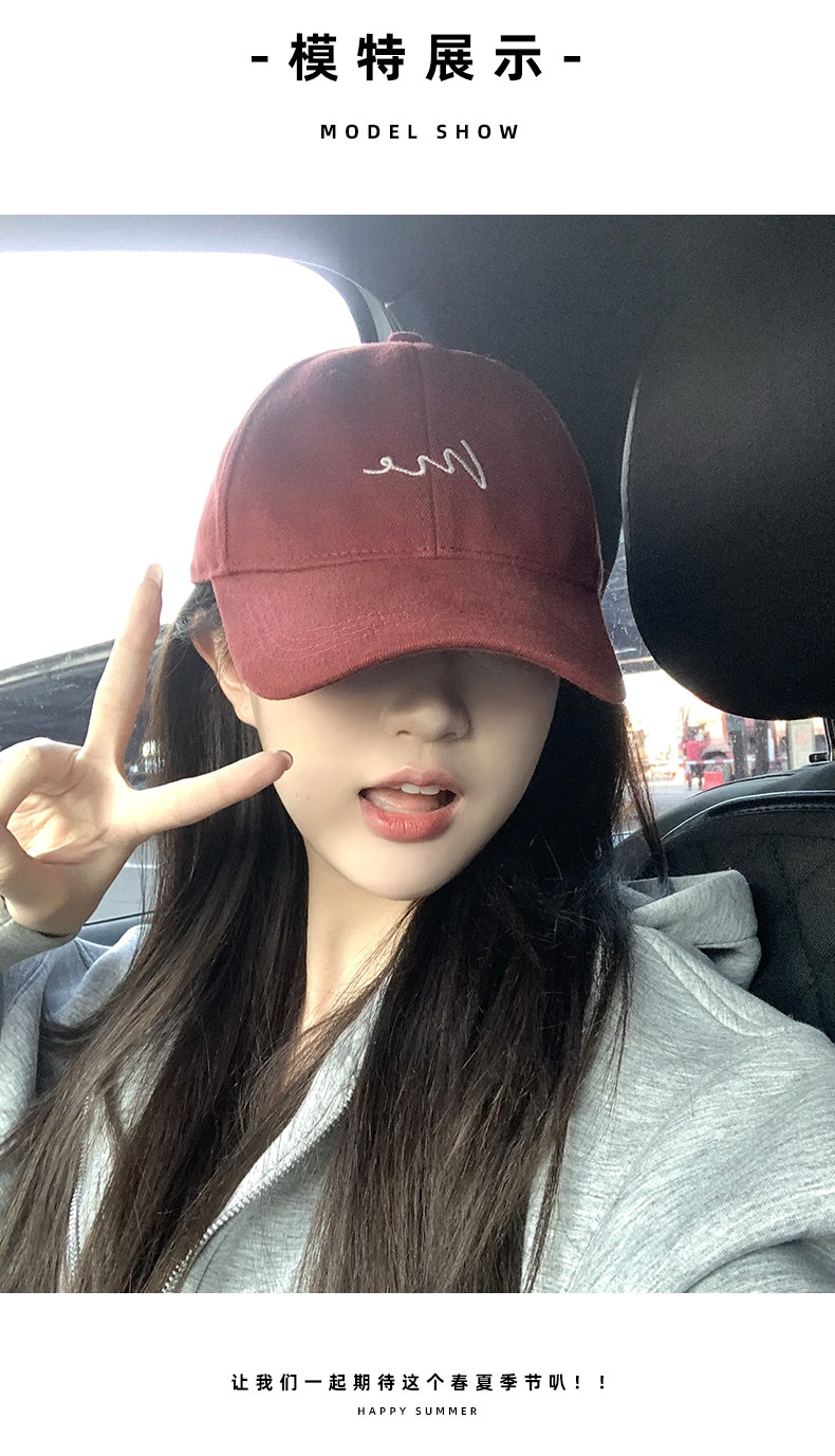 Burgundy Baseball Cap for Women, New Summer Style, Enlarged and Deepened, Korean Version, Versatile, Makes Face Look Smaller, Large Head Circumference, Couple's Peaked Cap