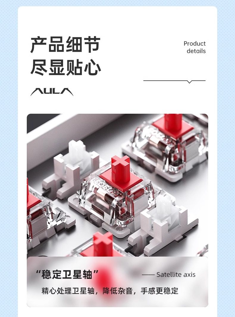 | Axis Name | Blue Axis (Crisp Sound,Strong to the Touch),Red Axis (Sensitive Trigger,Quick Rebound),Tea Shaft (Soft Feel,Versatile and Easy to Match) |