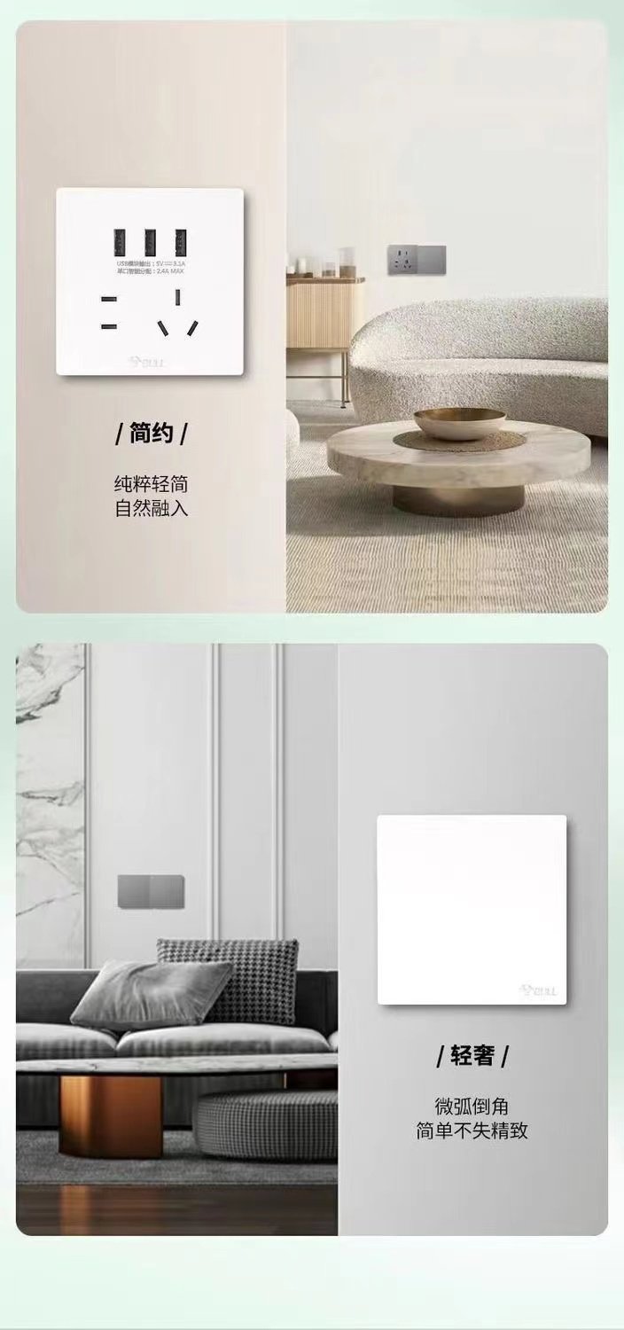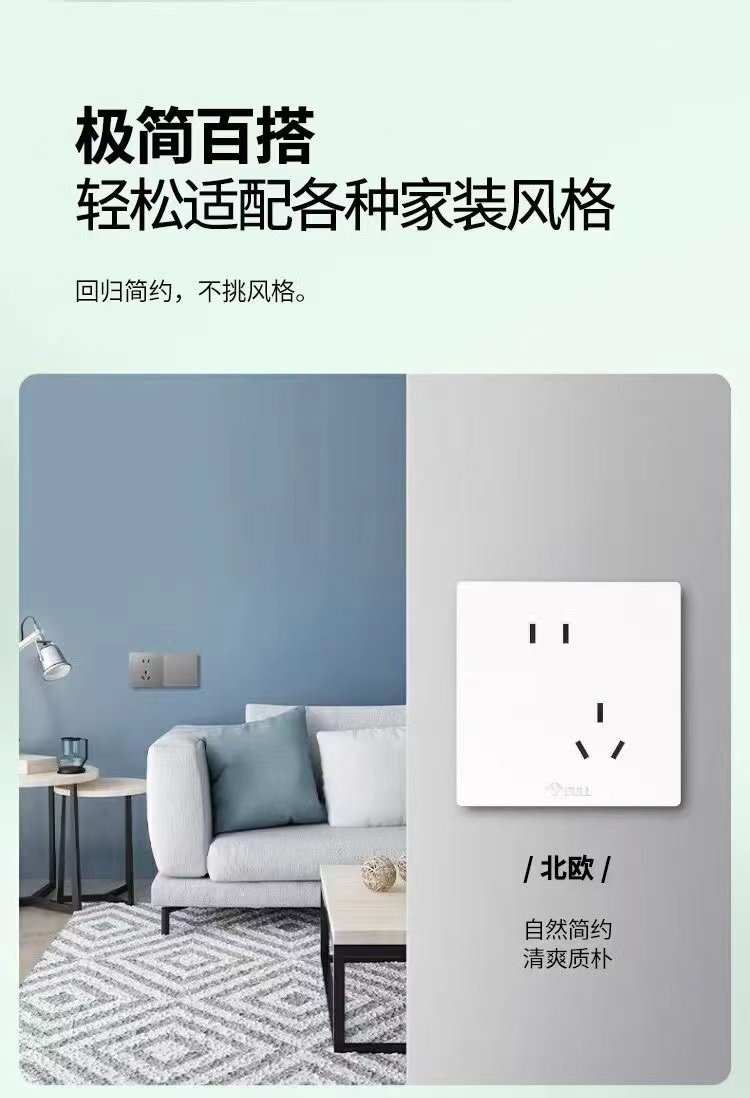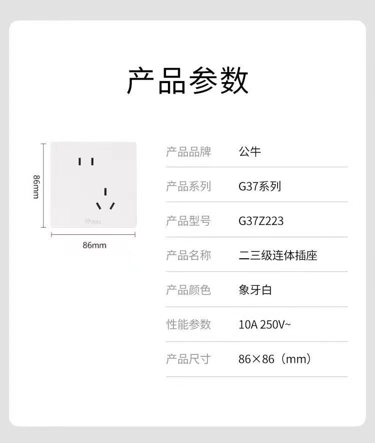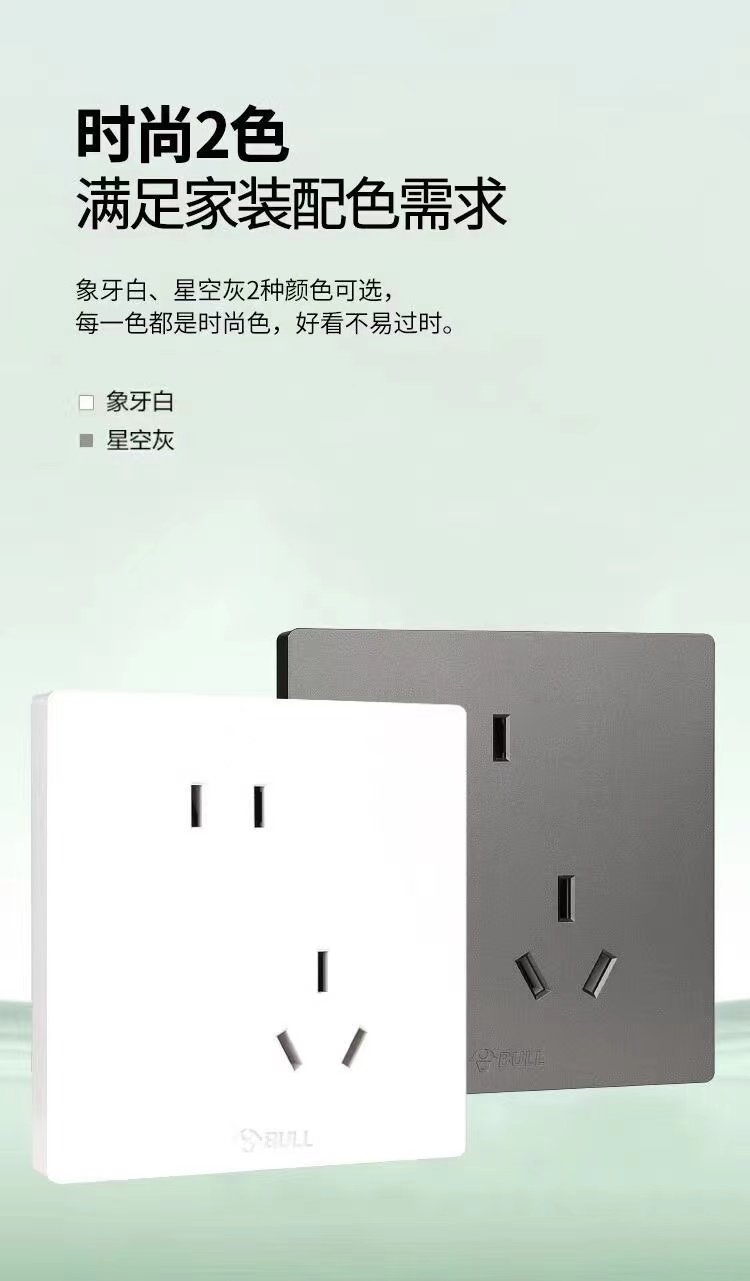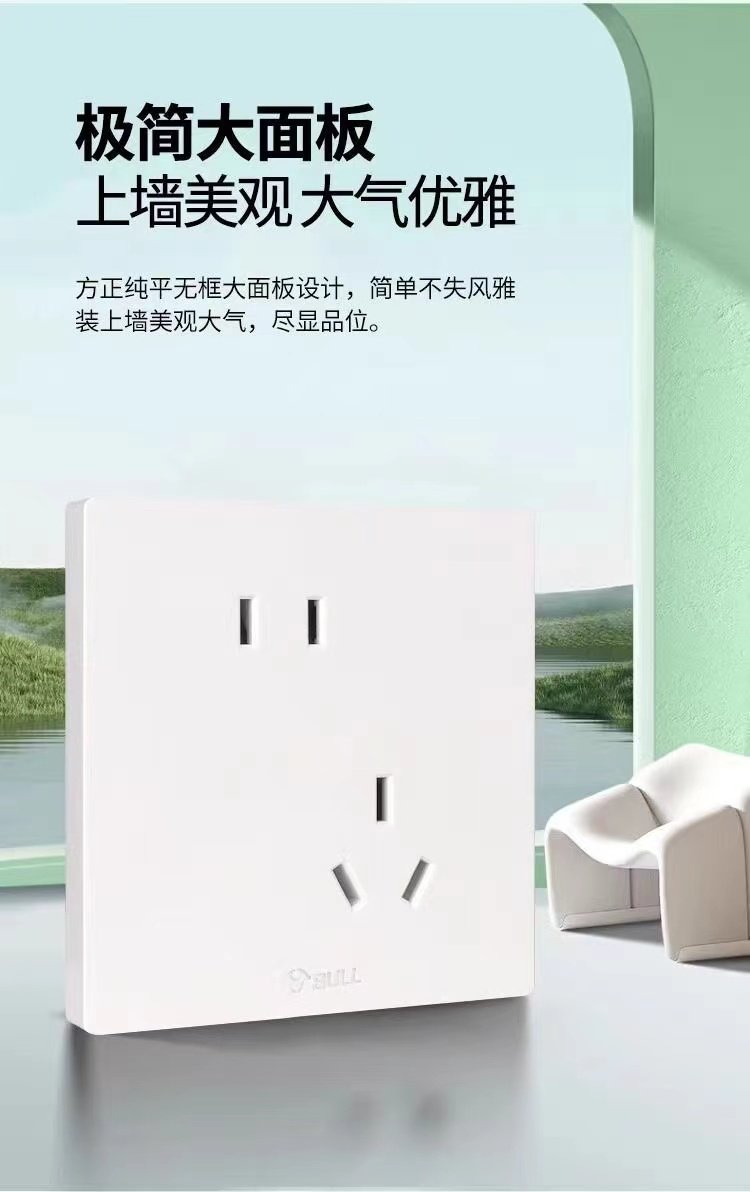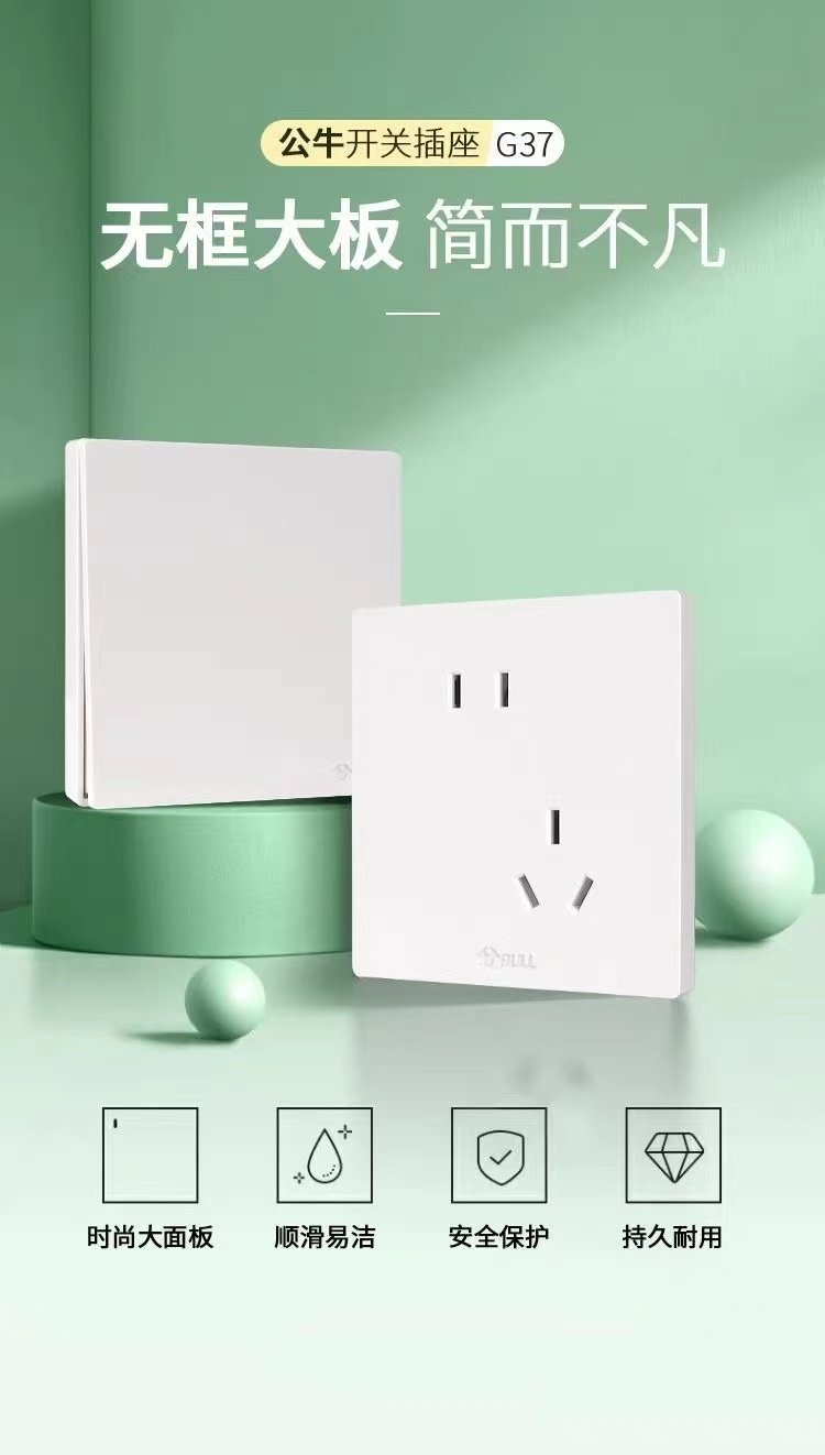 Bull G37 White Switch Socket Frameless Large Panel Household Panel 10A Five-Hole 16A Air Conditioner 86 Type Concealed Installation