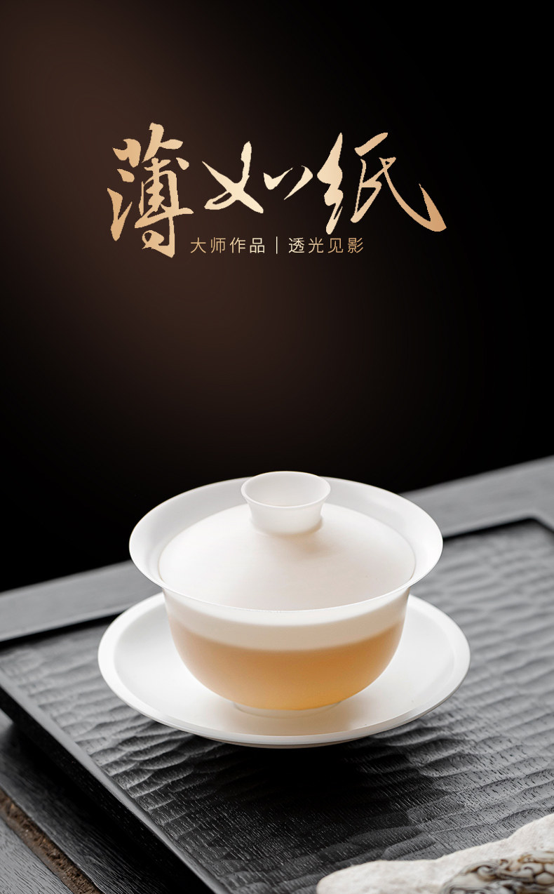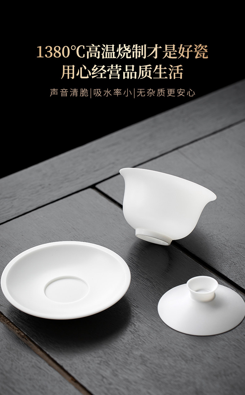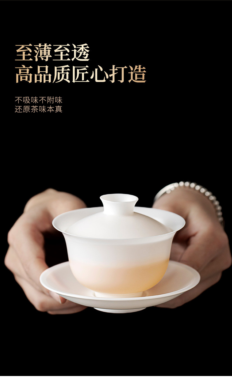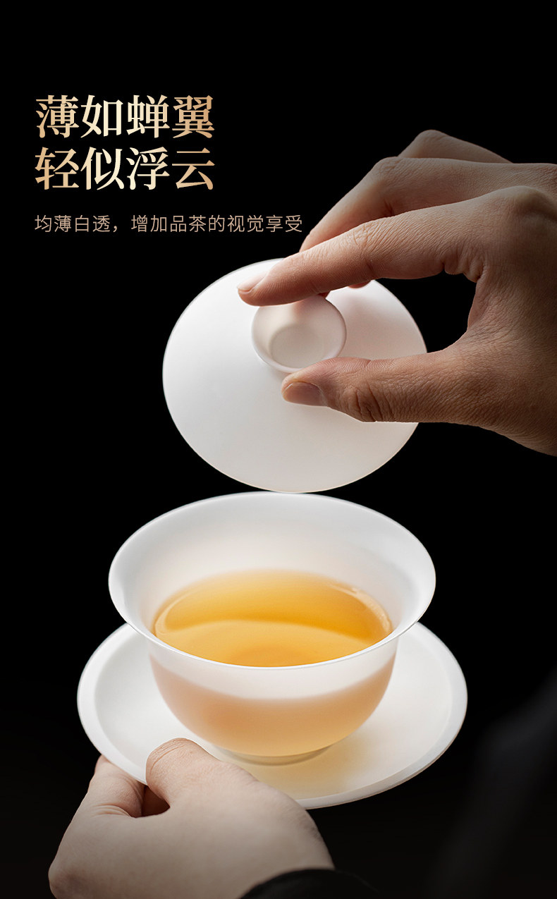 Ultra-Thin, Ultra-Light Ice-Type White Porcelain Tea Cup with Lid, Single High-End Non-Hot Handle Three-Piece Set