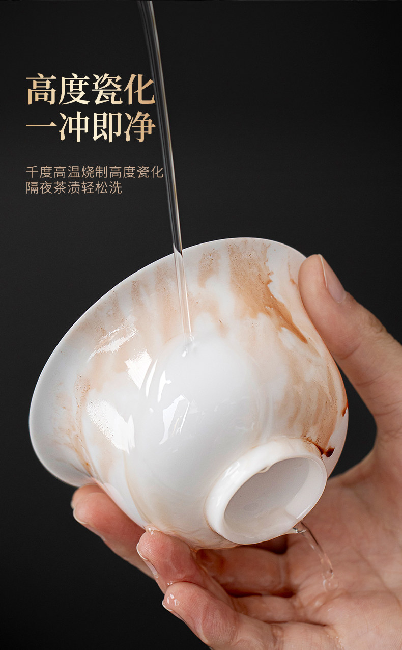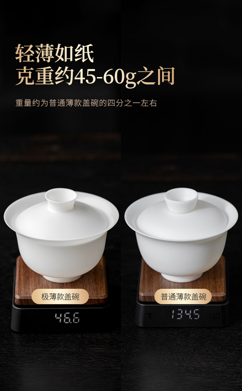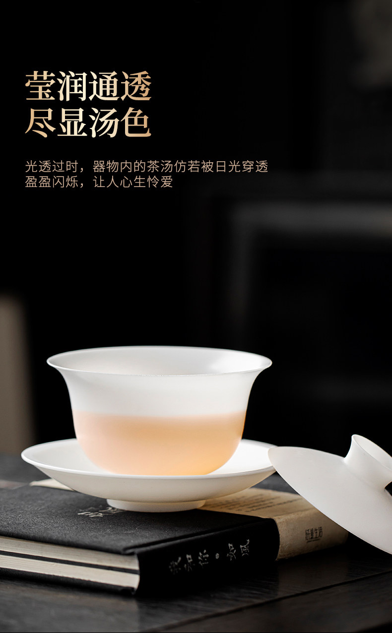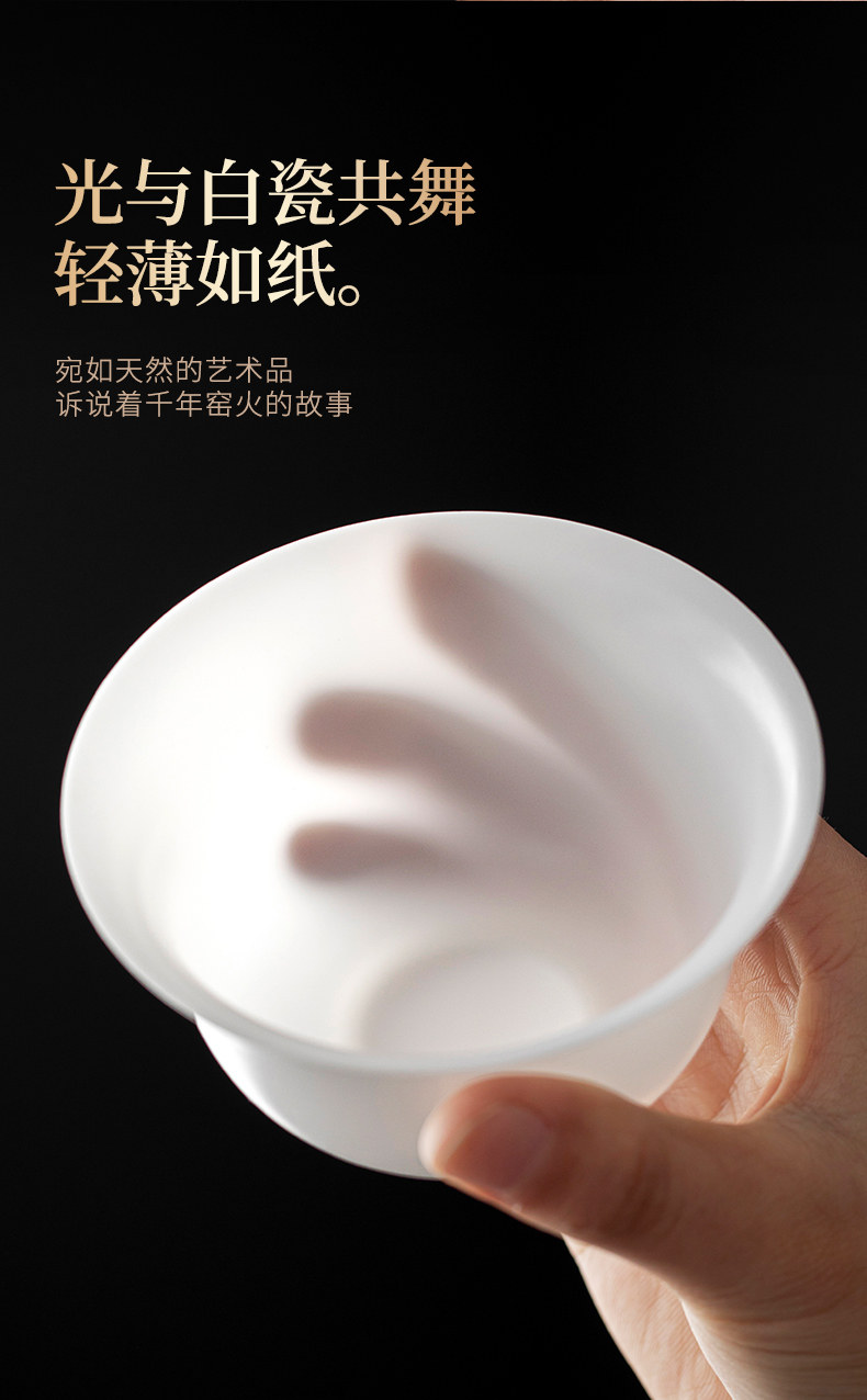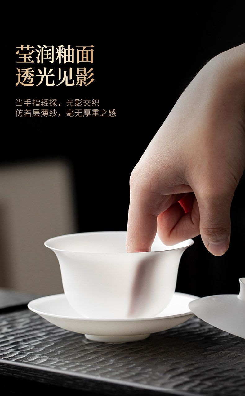 Ultra-Thin, Ultra-Light Ice-Type White Porcelain Tea Cup with Lid, Single High-End Non-Hot Handle Three-Piece Set