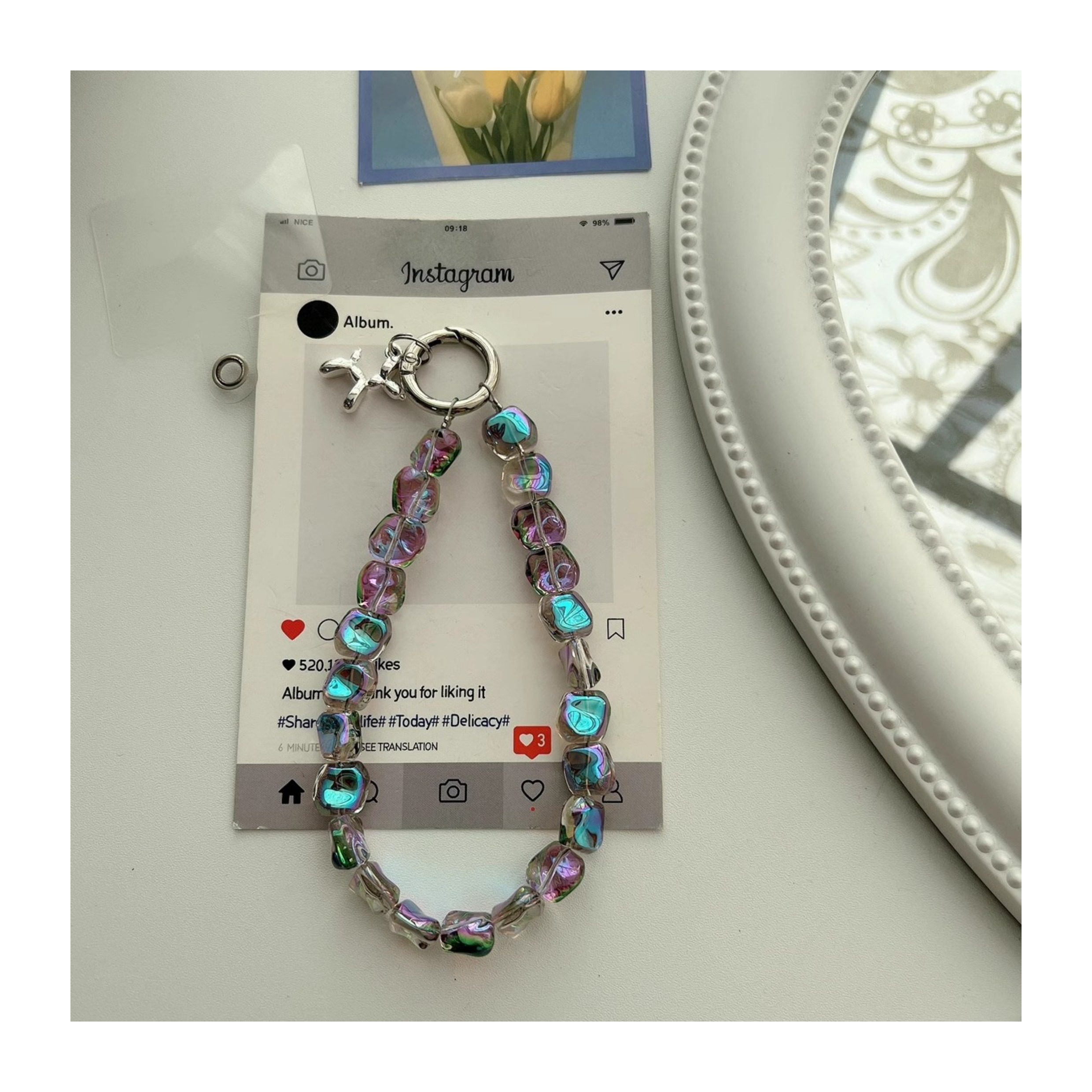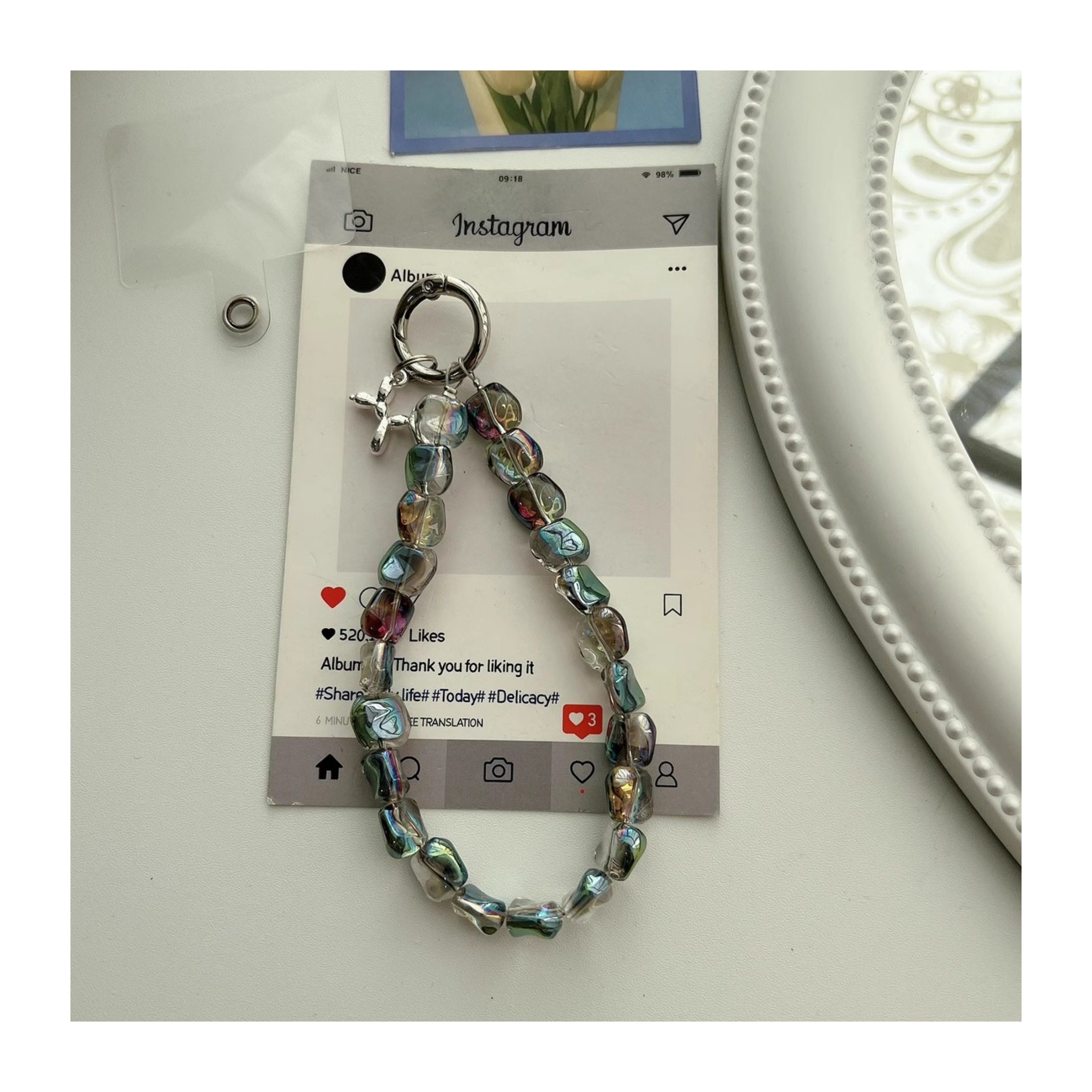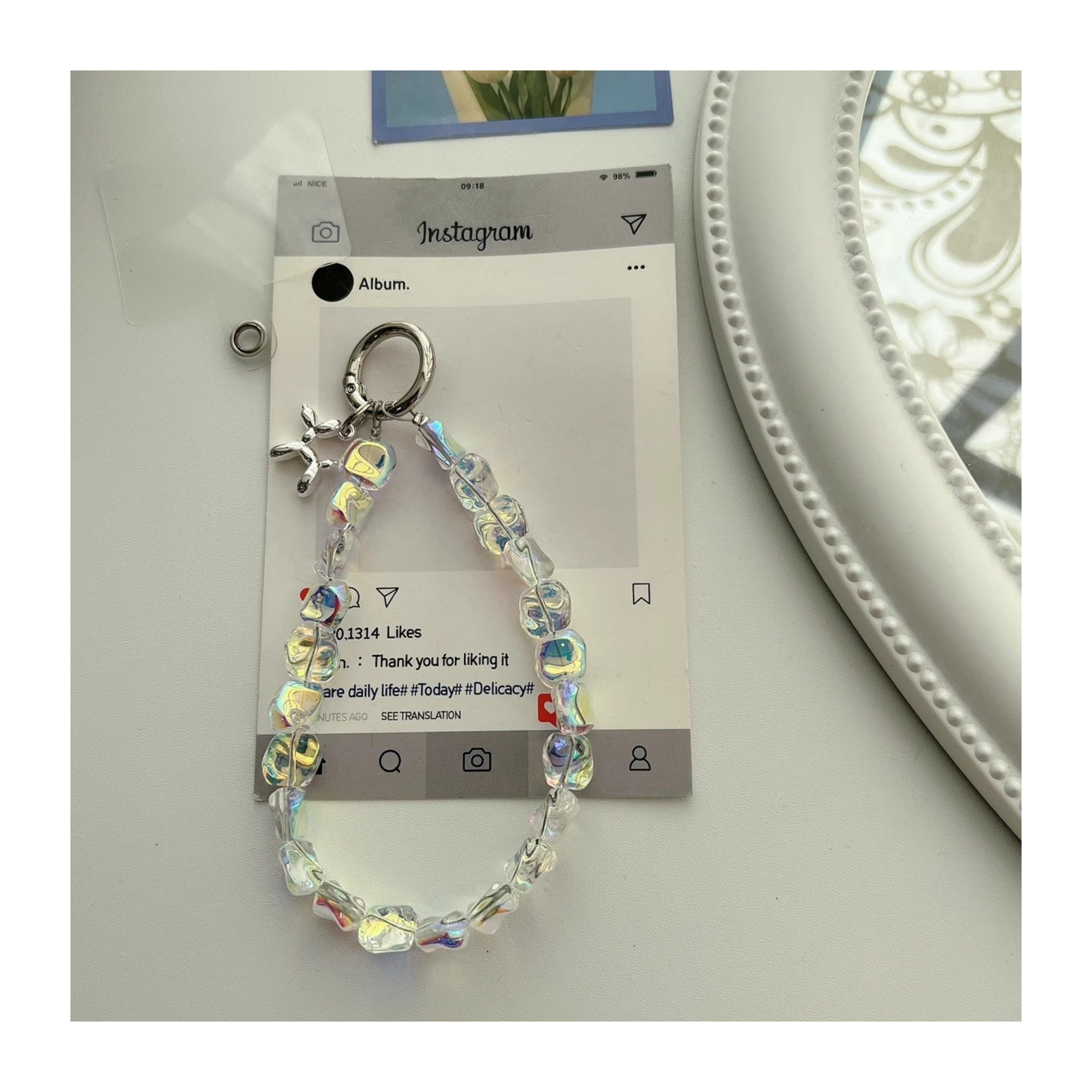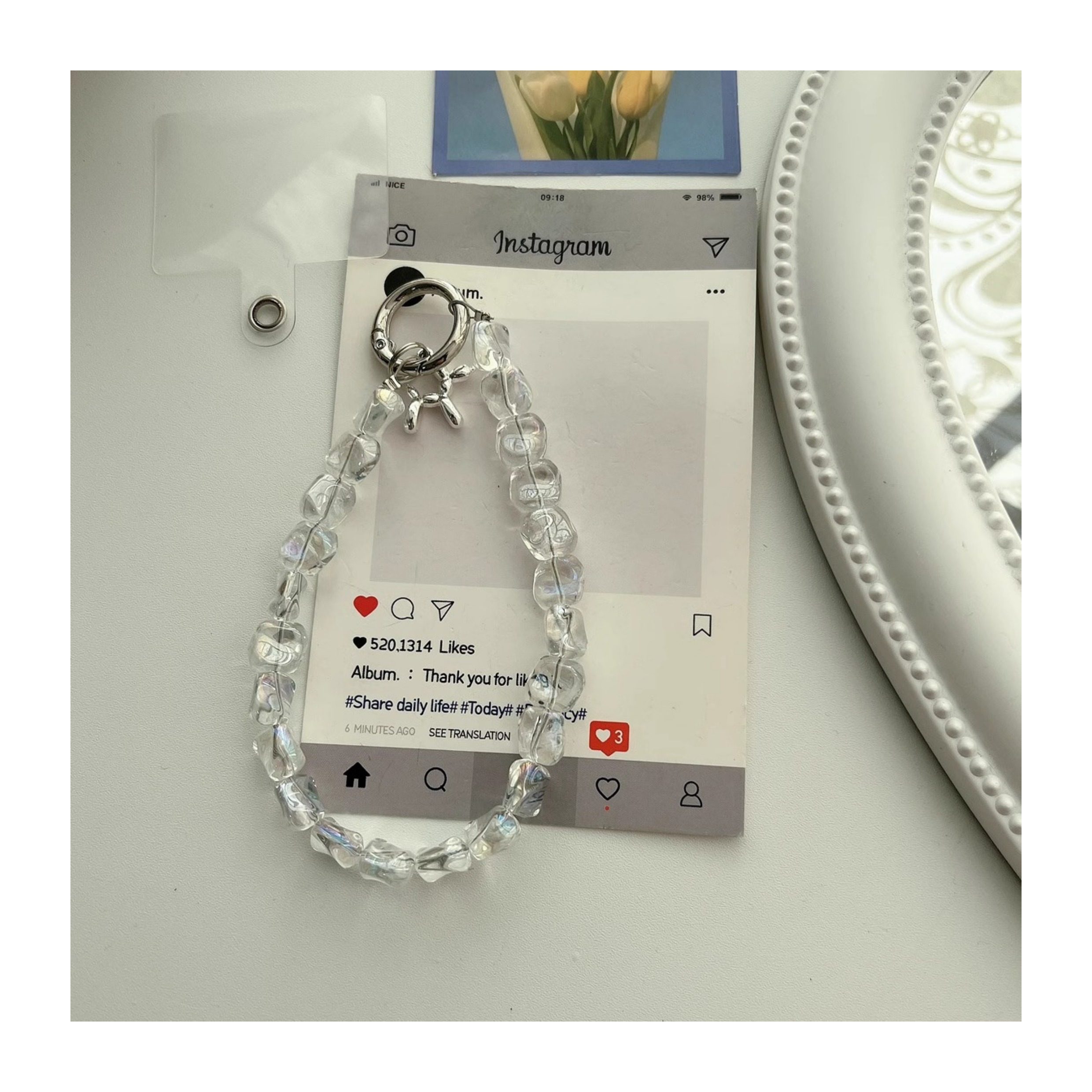 High-End Stone Crystal Phone Case with Short Chain, Versatile Wrist Accessory, Short Chain Clip Keychain, Portable for Women