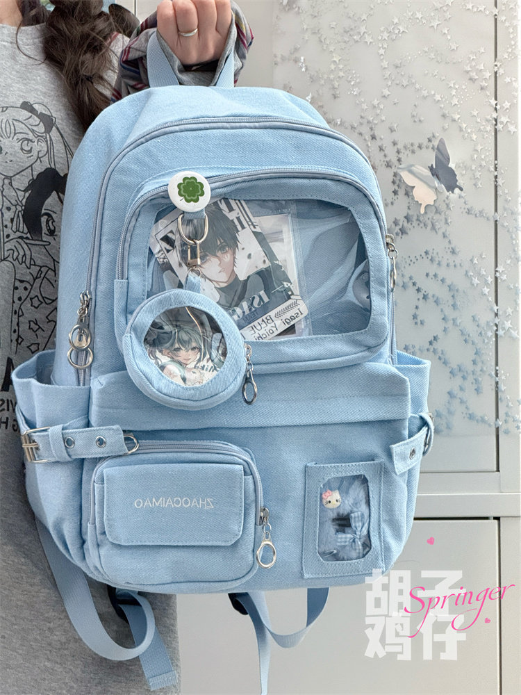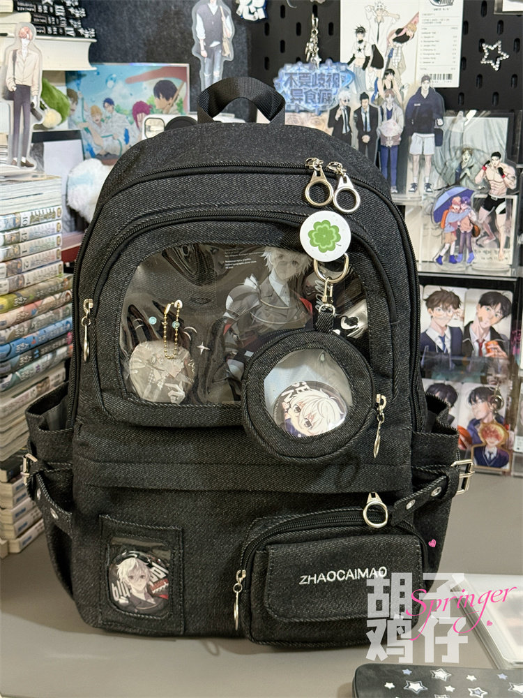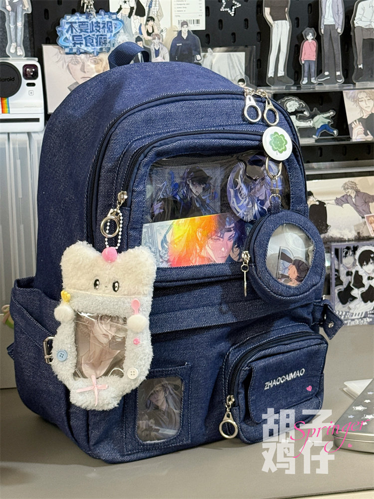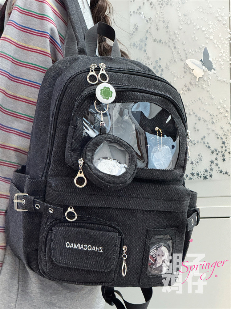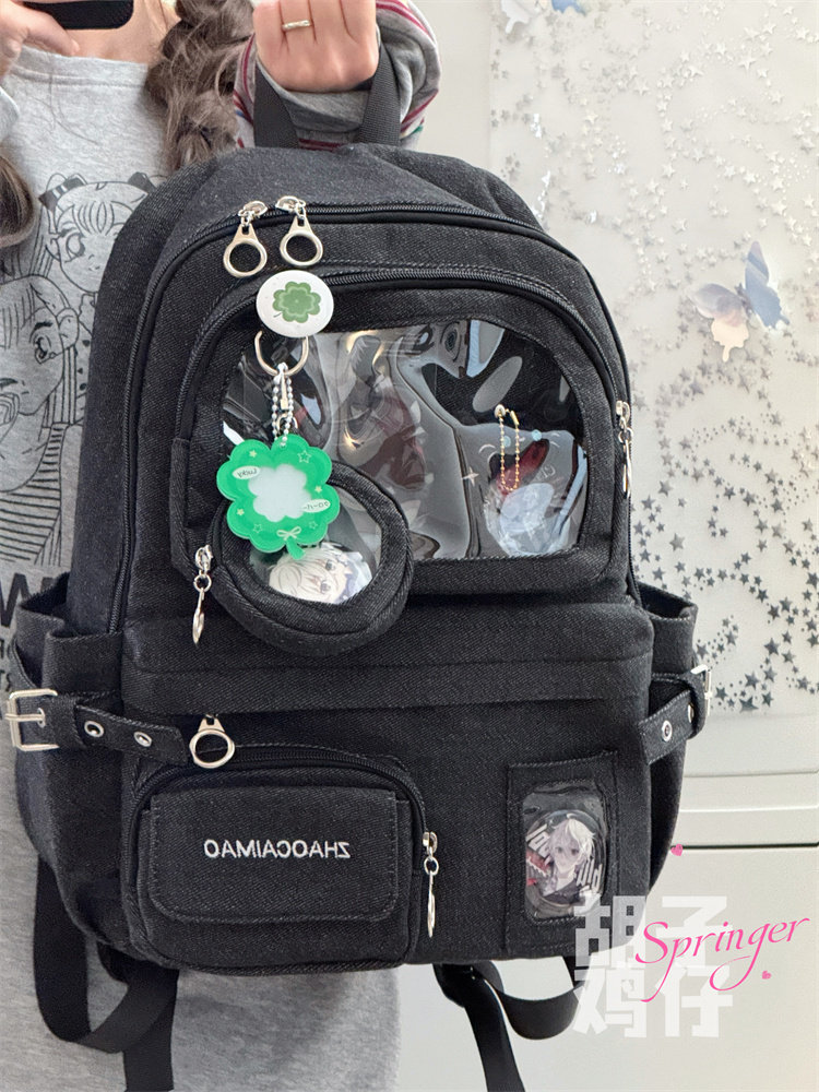 Bearded Chicken Retro Denim Backpack for Men, Two-Dimensional Transparent Backpack, Pain Bag for Female Students, Large Capacity Backpack