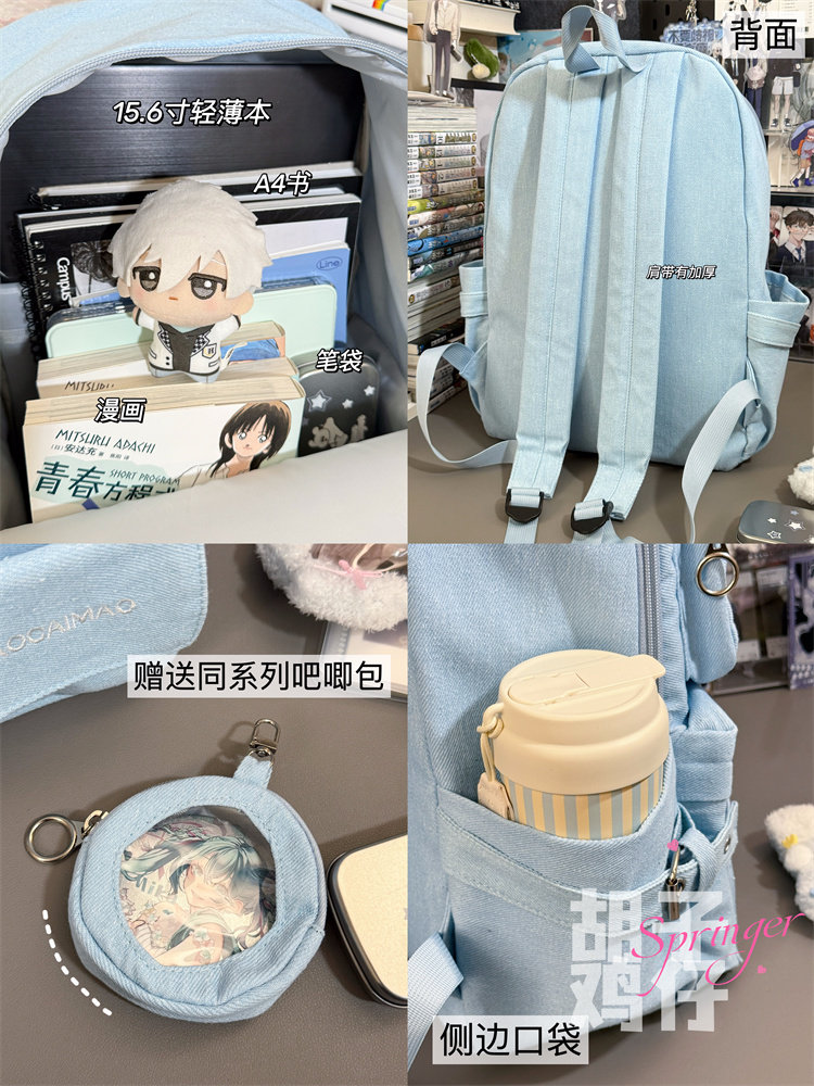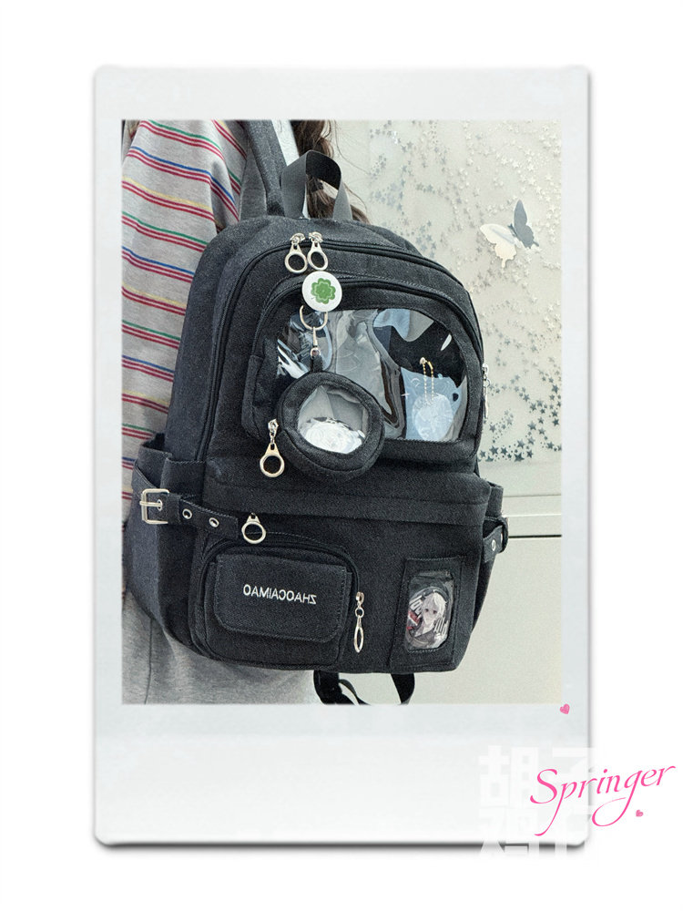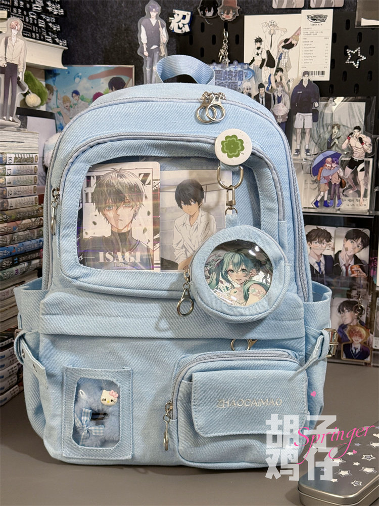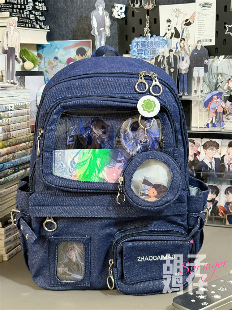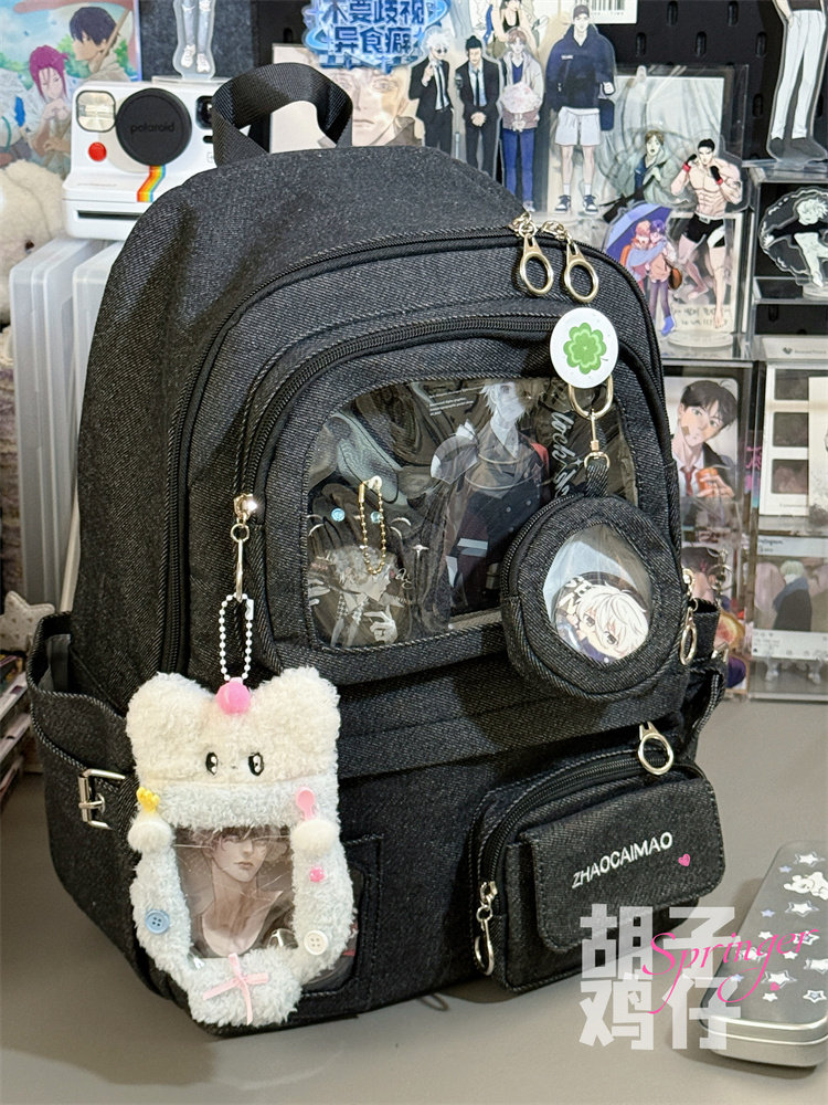 Bearded Chicken Retro Denim Backpack for Men, Two-Dimensional Transparent Backpack, Pain Bag for Female Students, Large Capacity Backpack