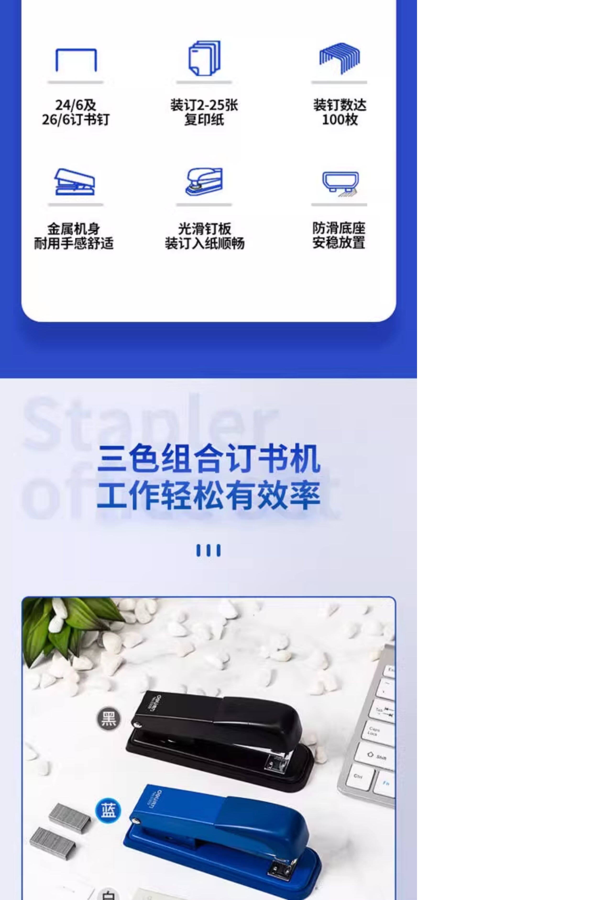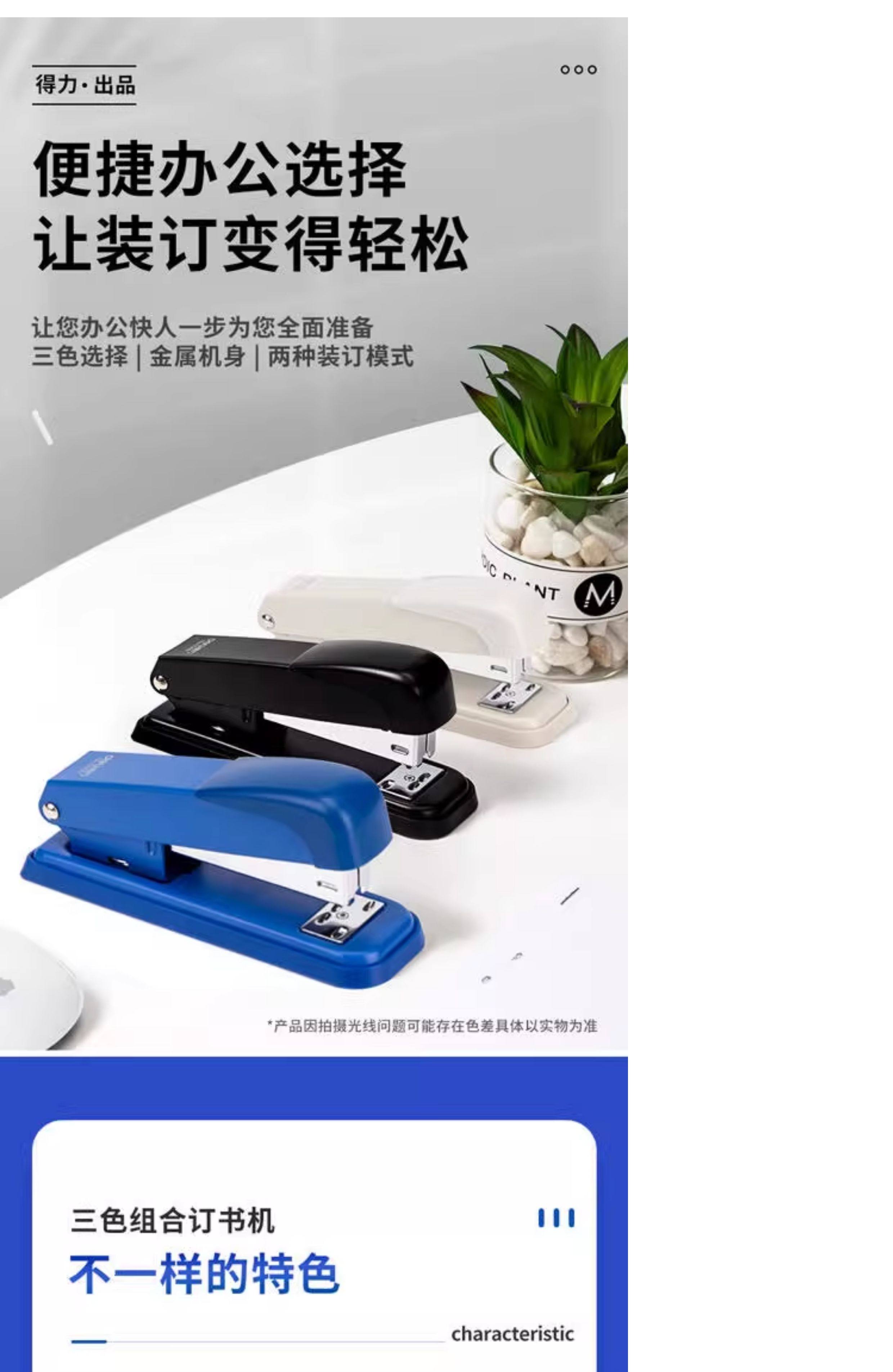 Deli Stapler No. 12 Standard Stapler for Office Use, Labor-Saving, Thickened, Universal Type, Large, Medium, Small Sizes, Multi-Specification, Student Use, Medium-Sized Stapler Set, Document Binding, Business Supplies