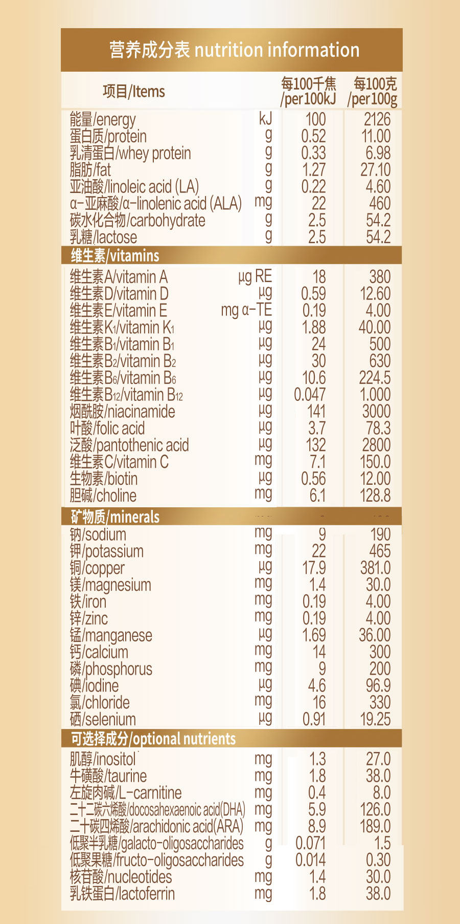 | Nutritional Elements | DHA |