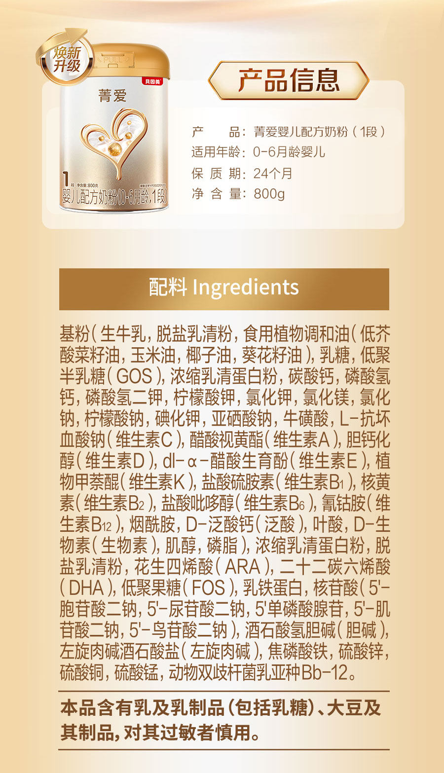 [Renewal Upgrade] Beingmate Essence Newborn Milk Powder Hmos Prebiotic 1 Stage Lactoferrin 800g