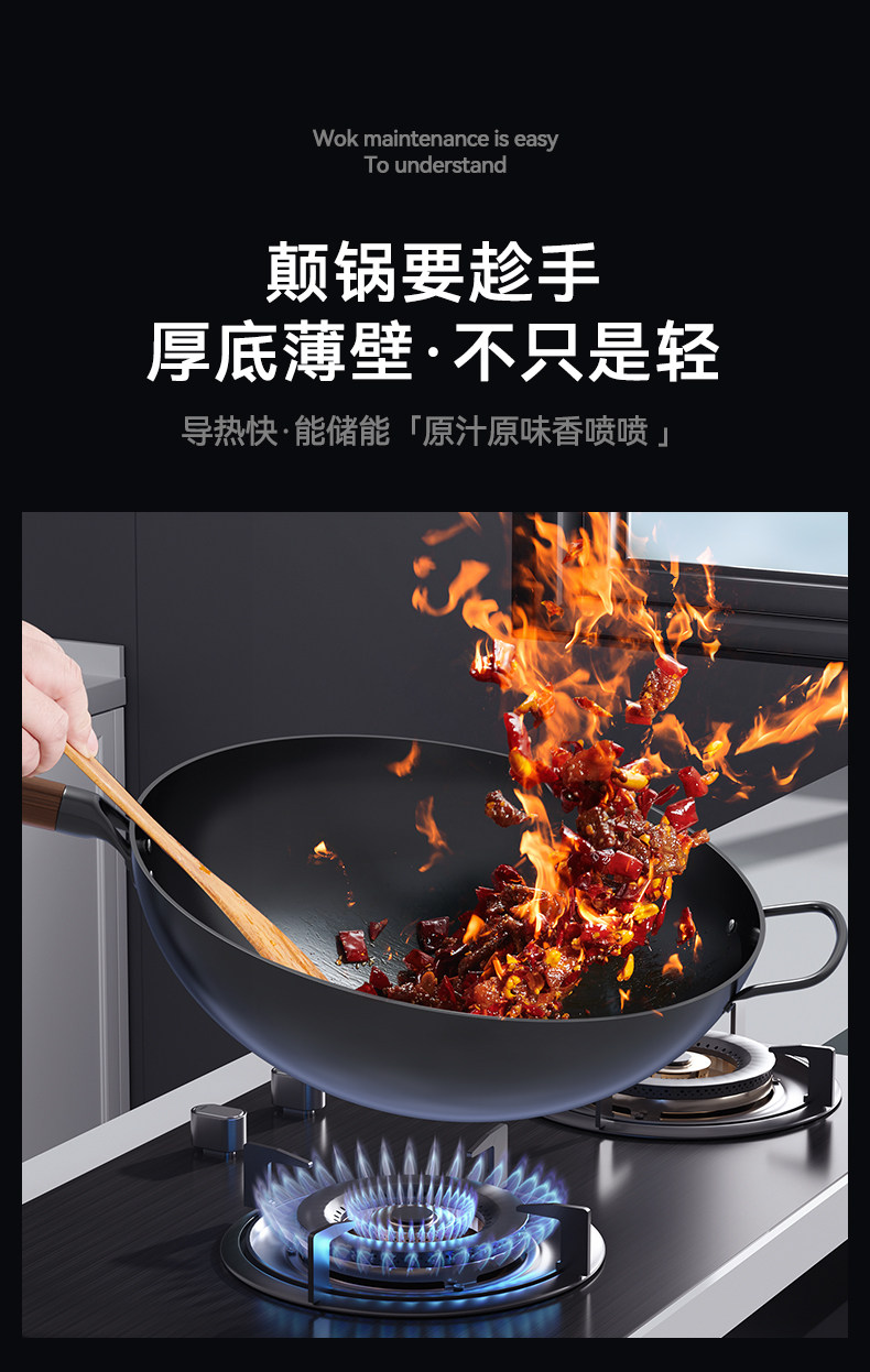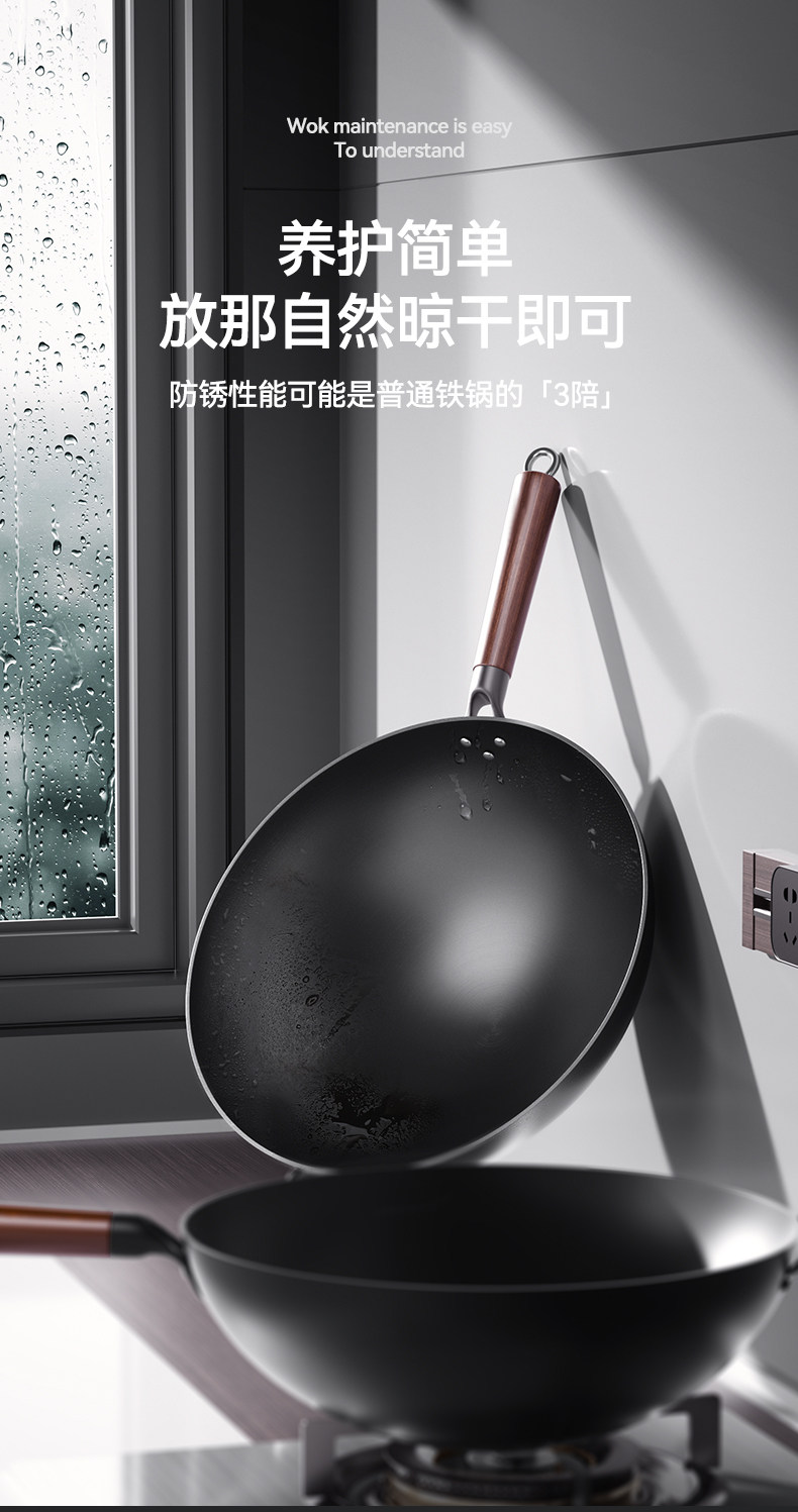Fengdi Household Cooking Pot Traditional Iron Pot Official Flagship Old-Fashioned Wok Non-Stick Pan Without Coating for Induction Cooker Use