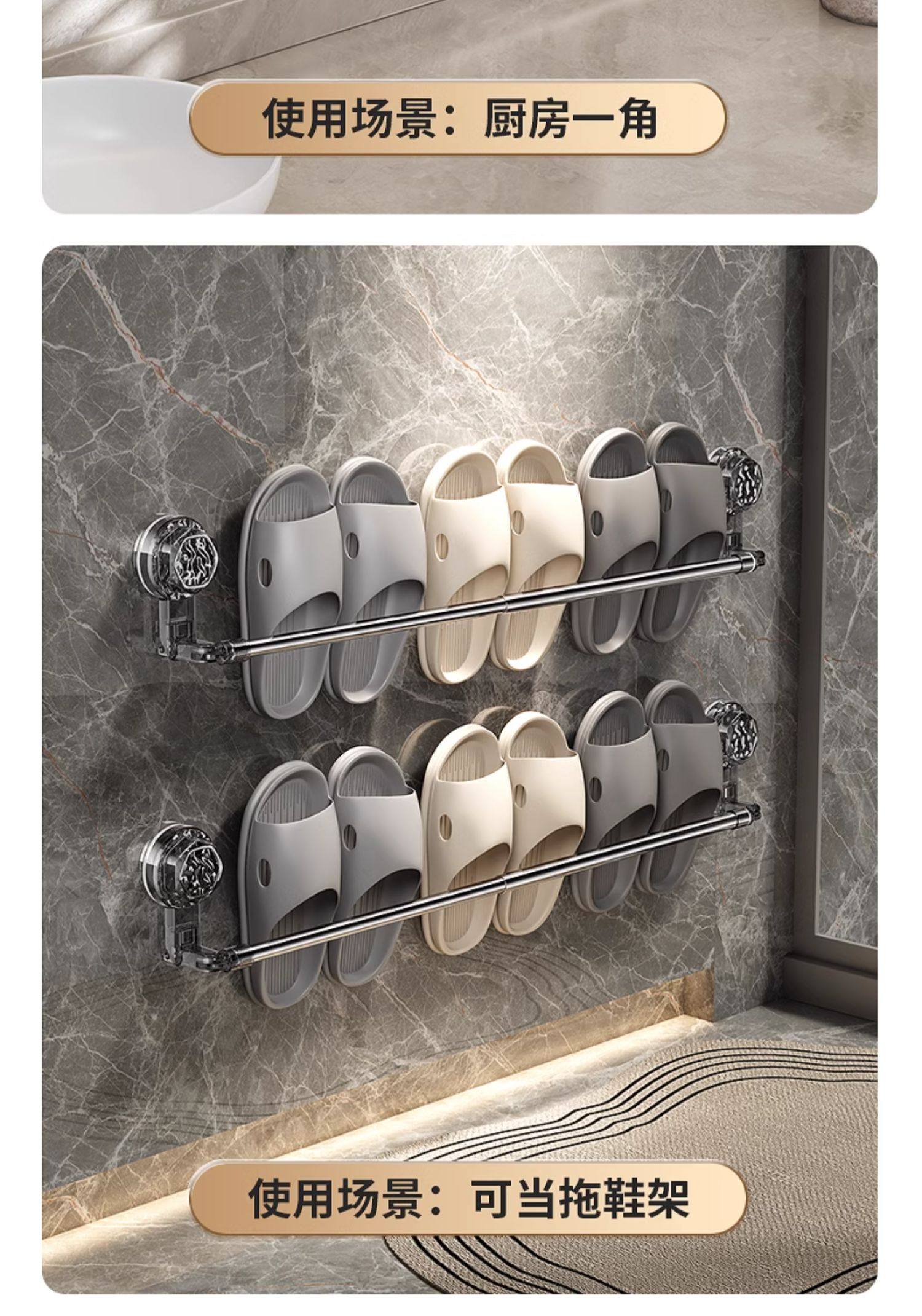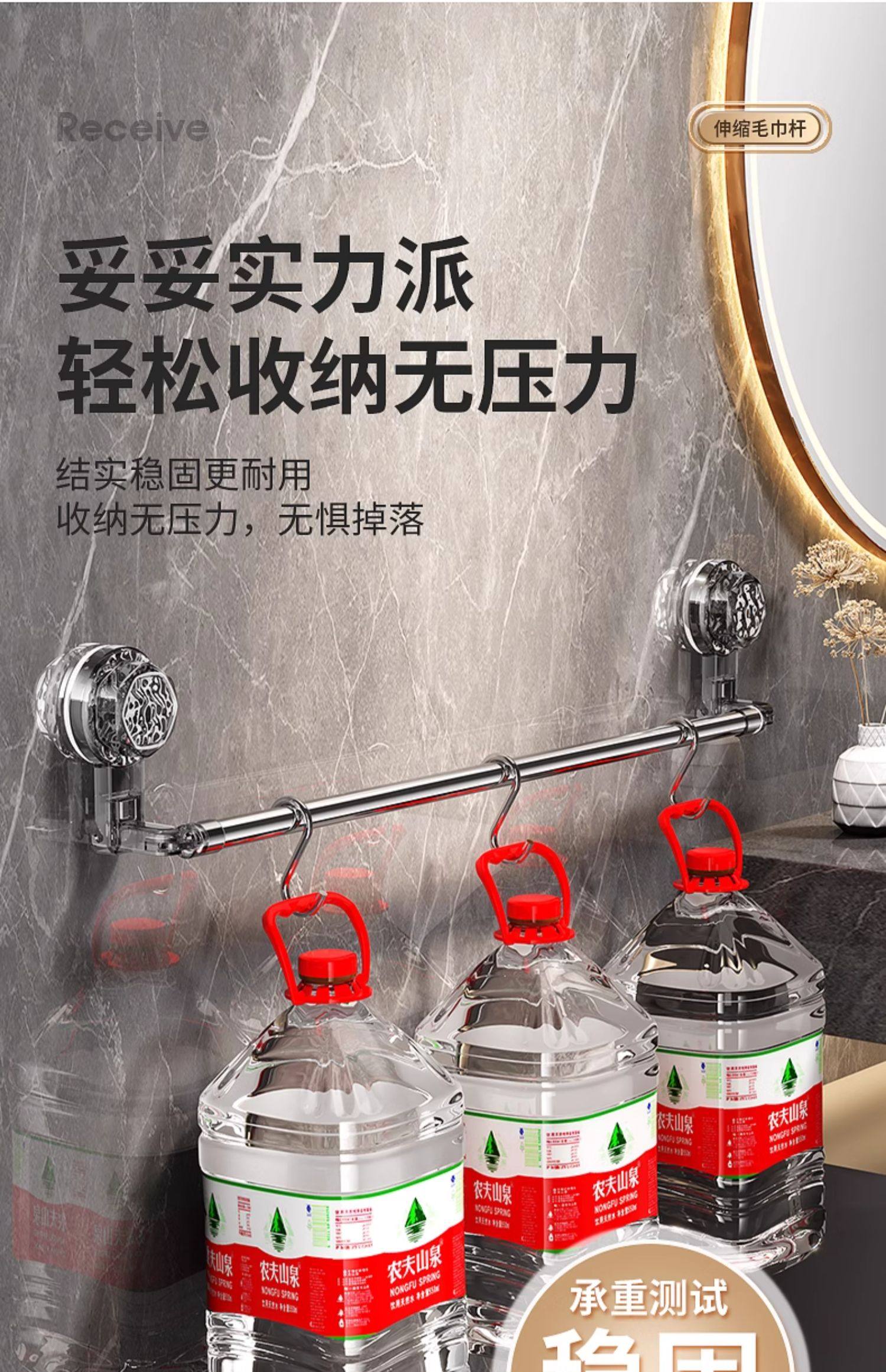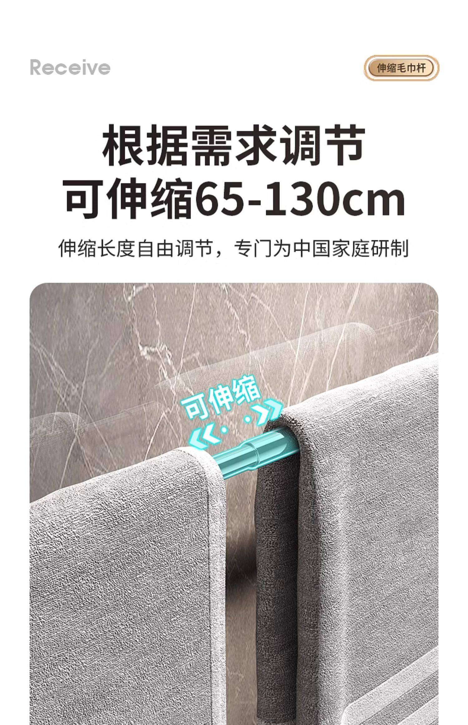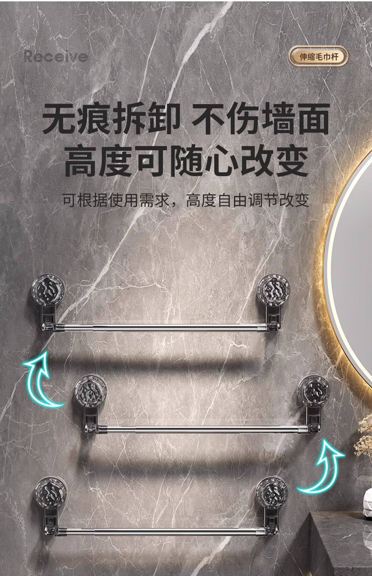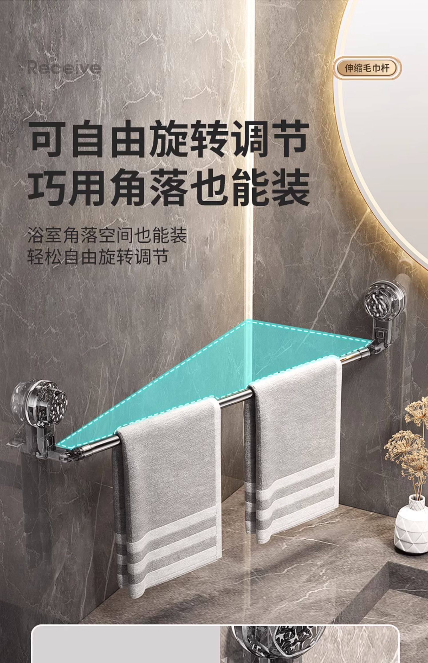 Suction Cup Towel Rack, No-Drill Bathroom Retractable Towel Bar, Storage Rack, Bathroom Organizer, Wall-Mounted