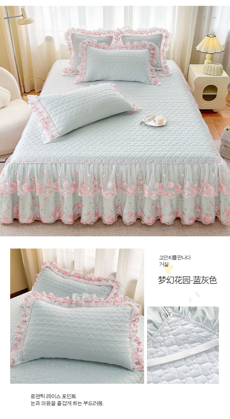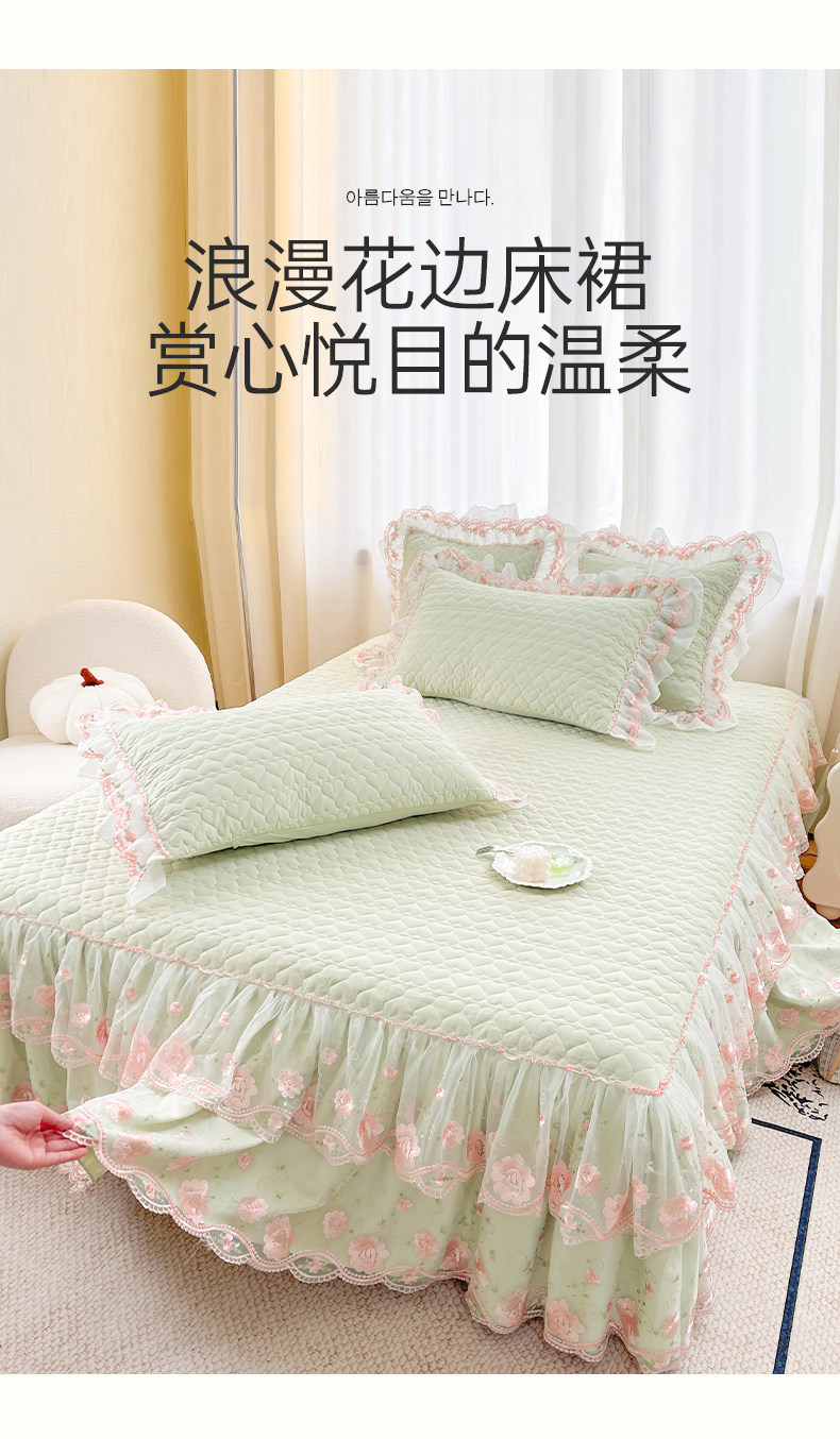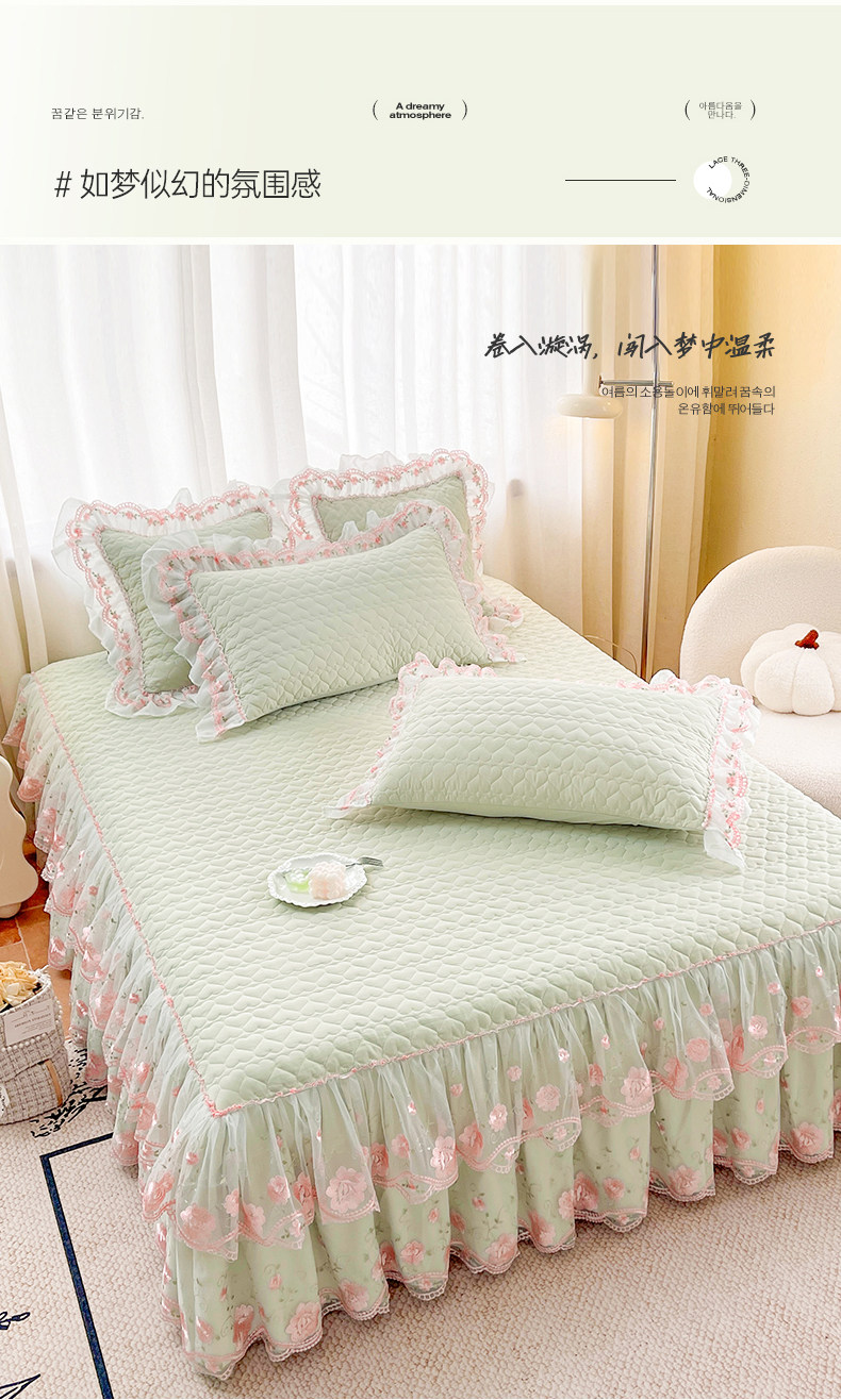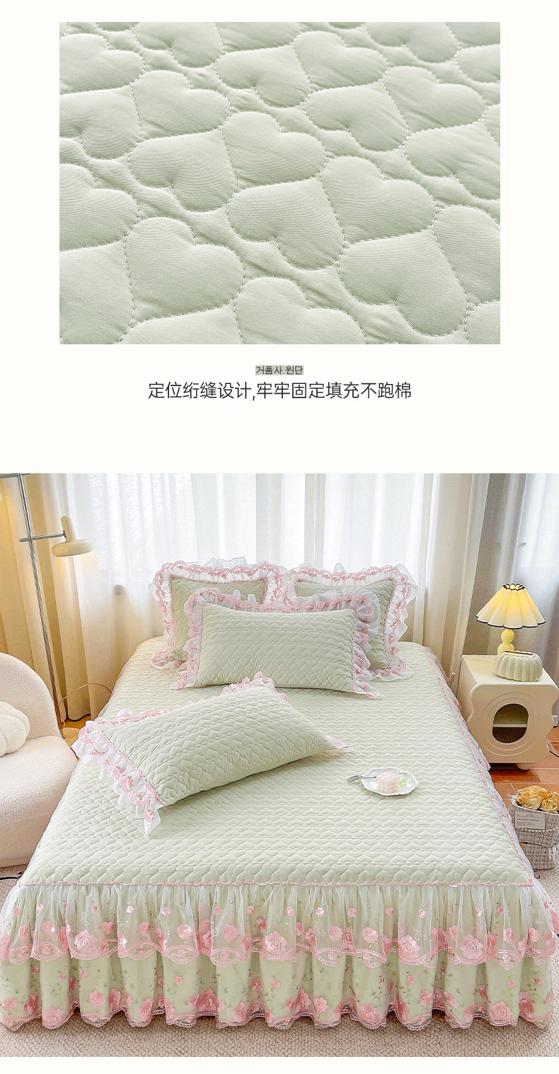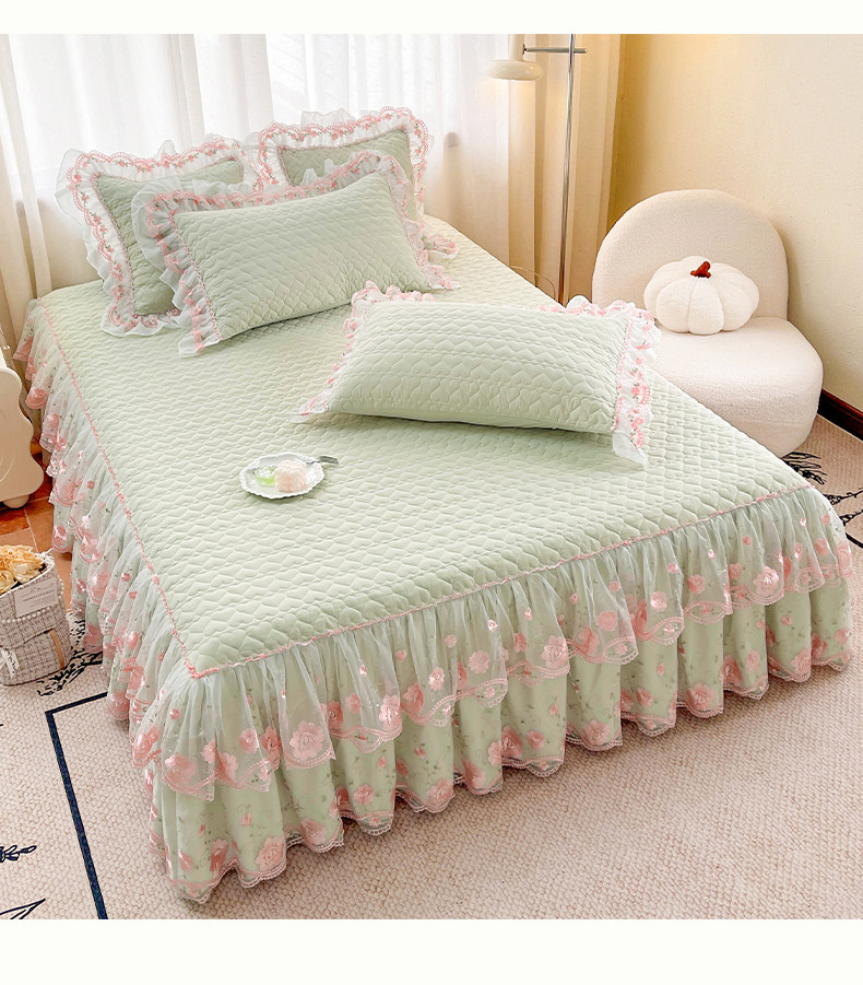 Korean-Style Class a Pearl Cotton Single-Piece Quilted Bed Skirt, Princess-Style Lace Trim, Non-Slip, Anti-Embarrassing Bed Cover Three-Piece Set