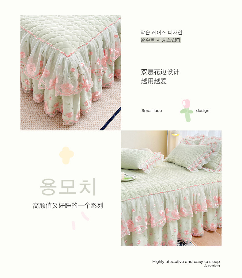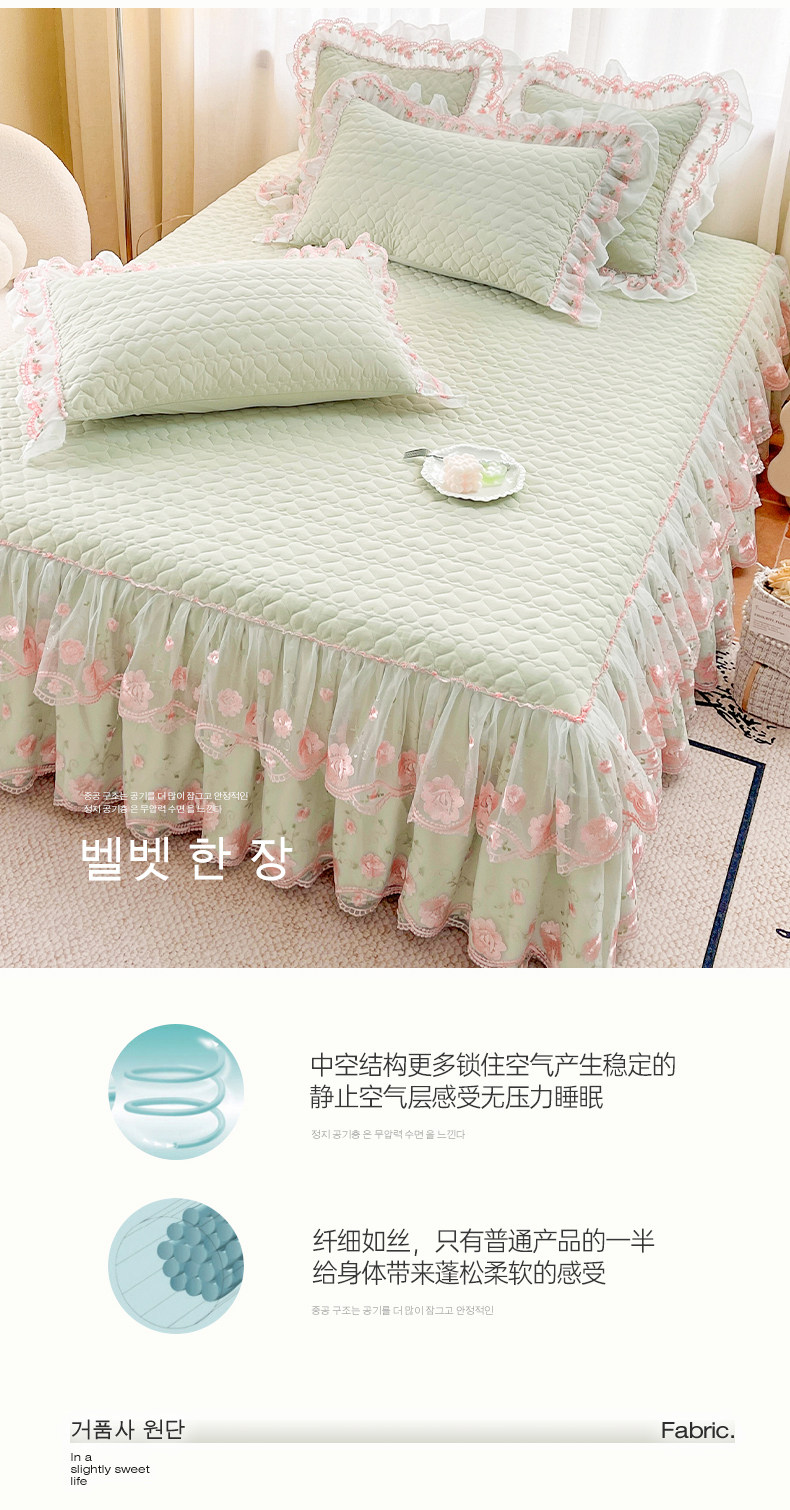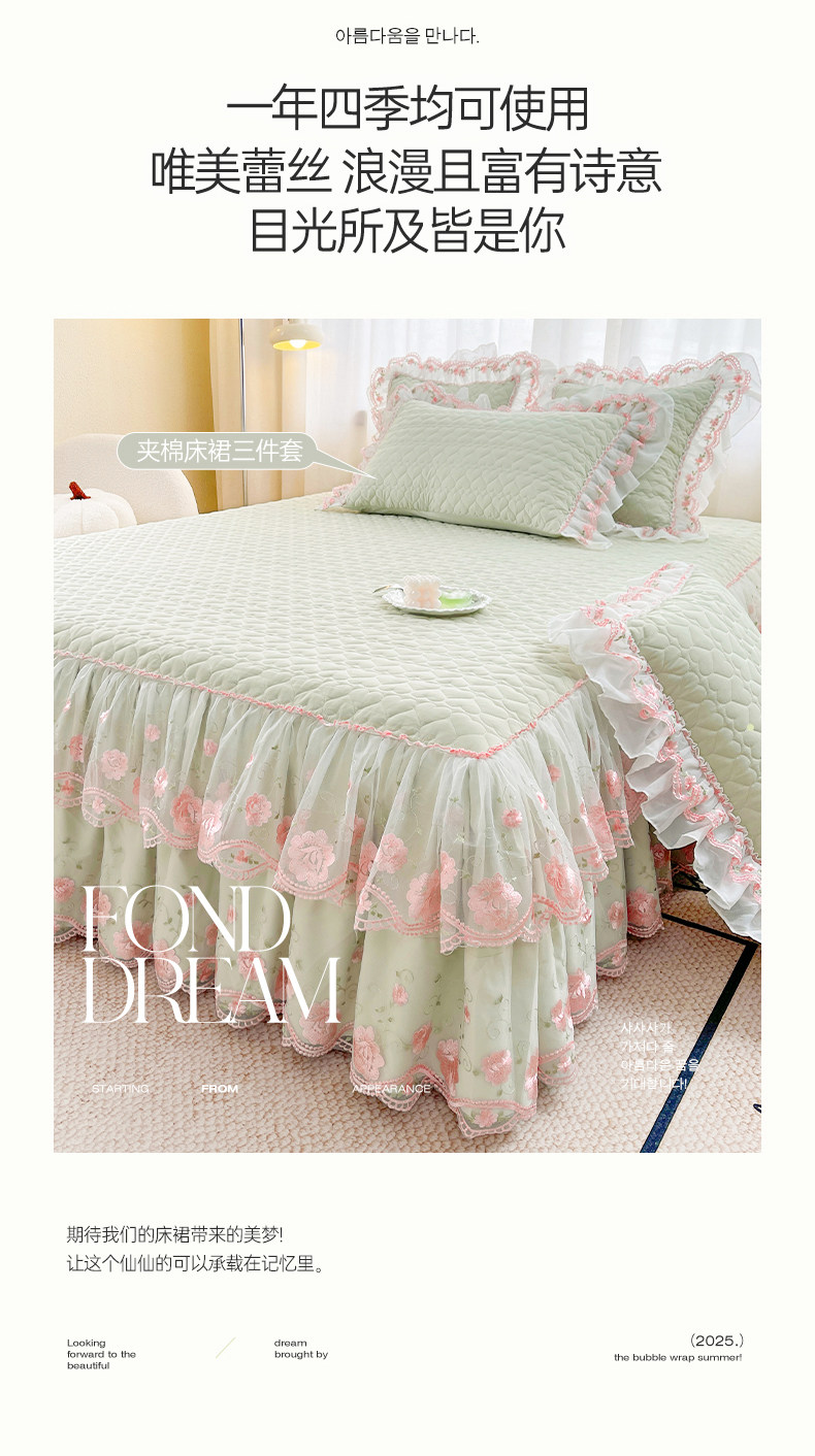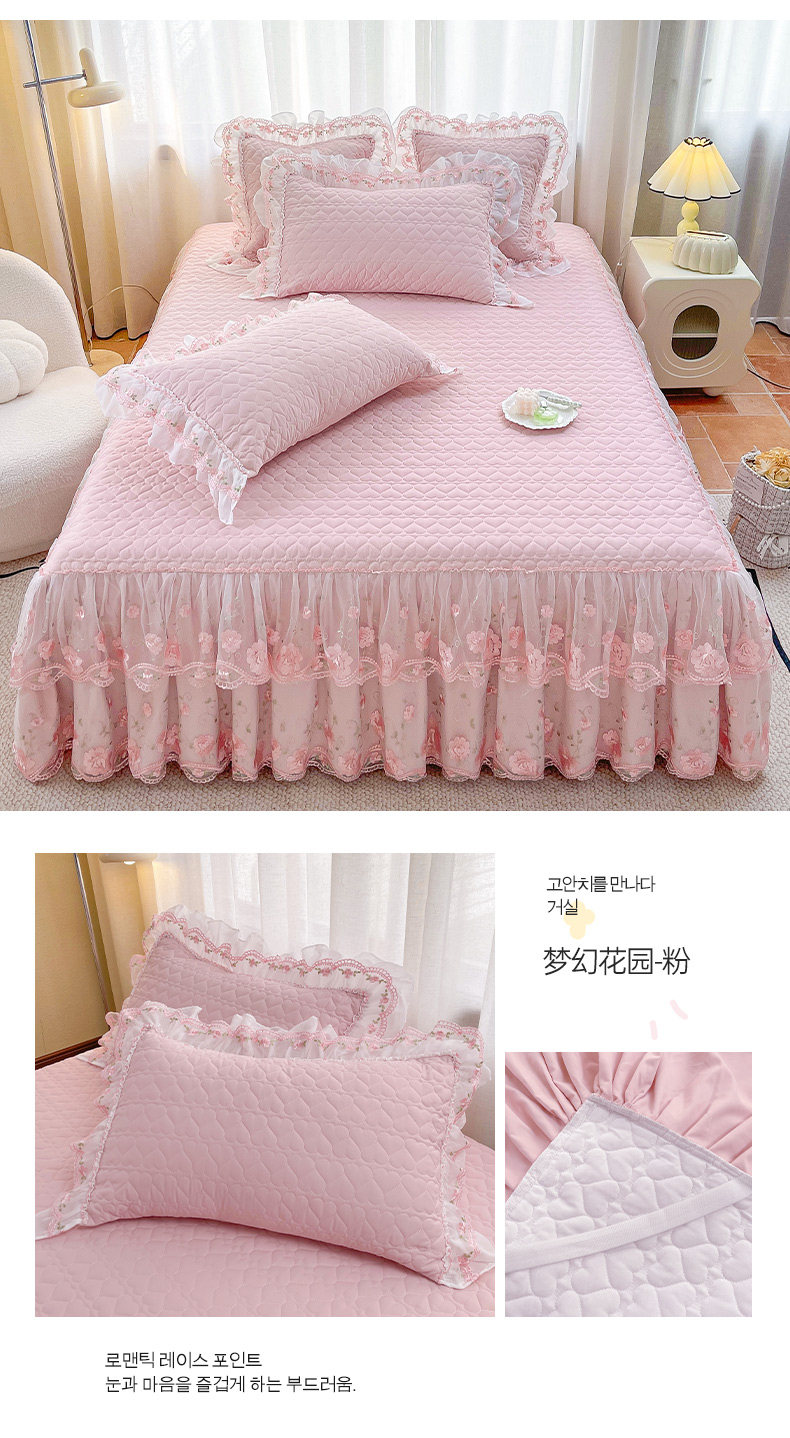 Korean-Style Class a Pearl Cotton Single-Piece Quilted Bed Skirt, Princess-Style Lace Trim, Non-Slip, Anti-Embarrassing Bed Cover Three-Piece Set
