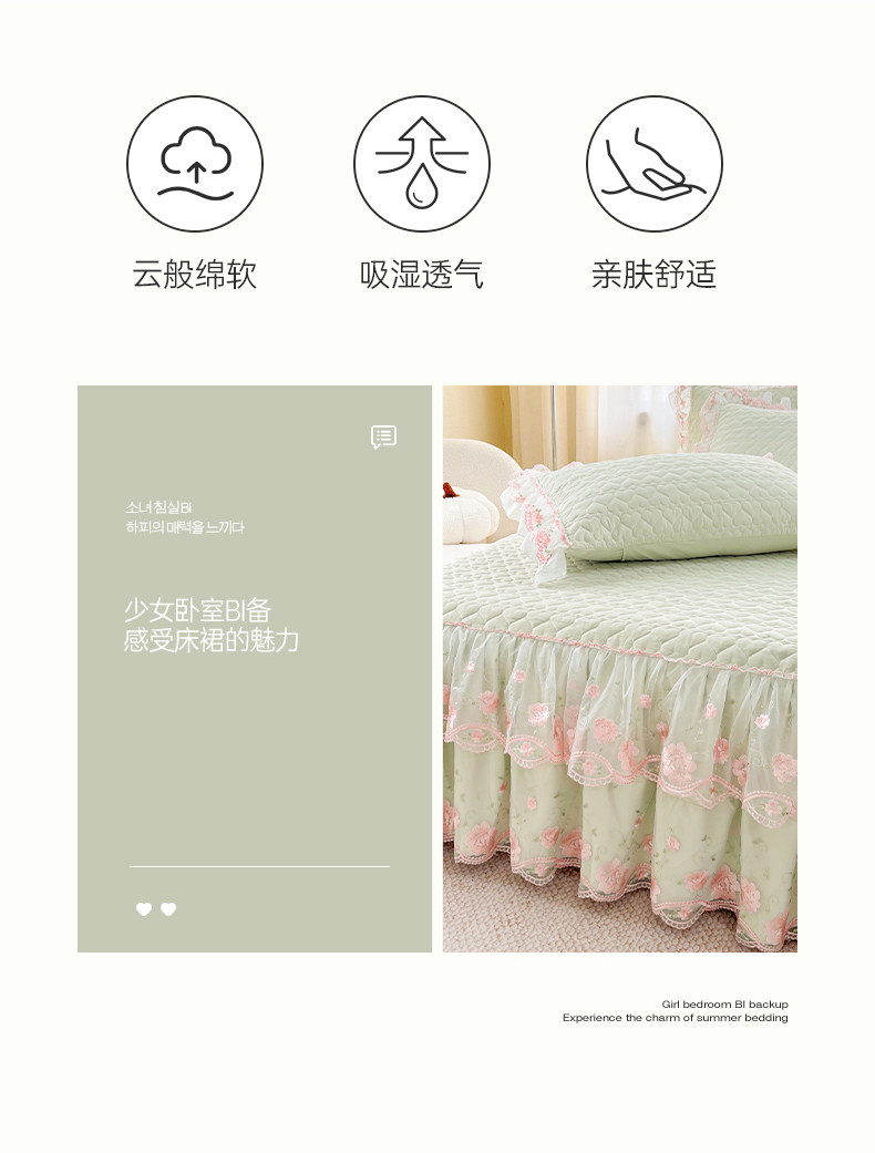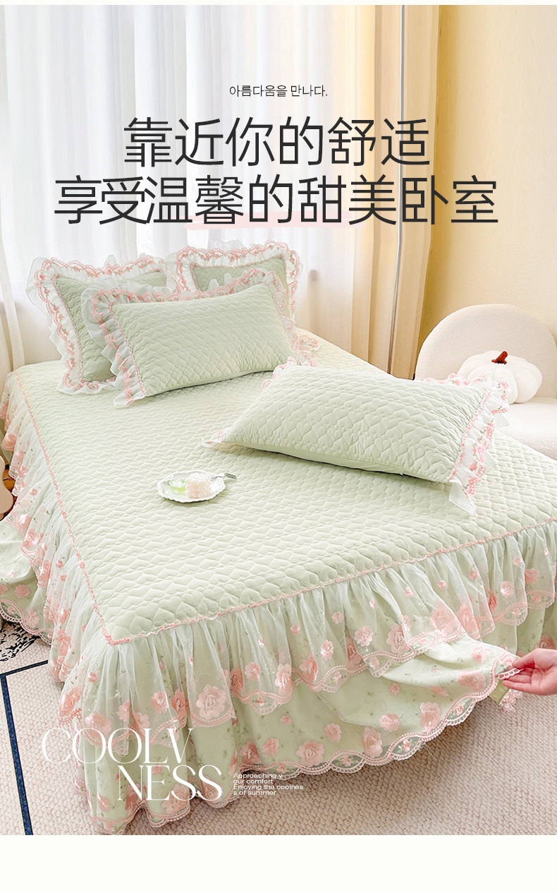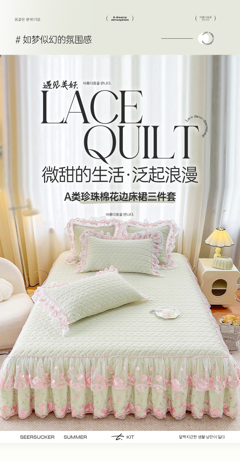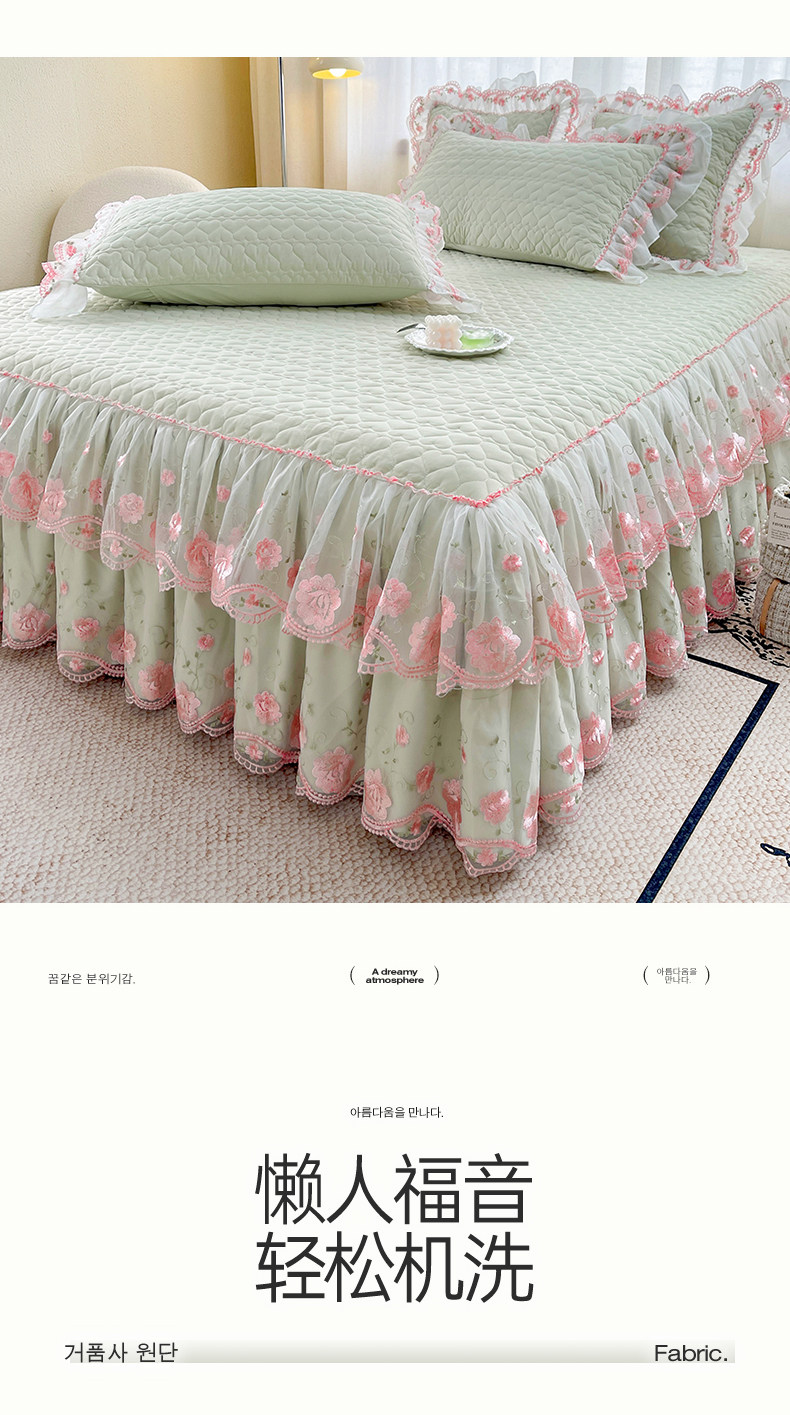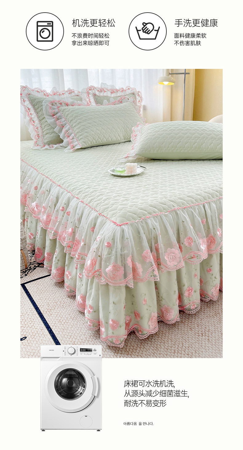 Korean-Style Class a Pearl Cotton Single-Piece Quilted Bed Skirt, Princess-Style Lace Trim, Non-Slip, Anti-Embarrassing Bed Cover Three-Piece Set