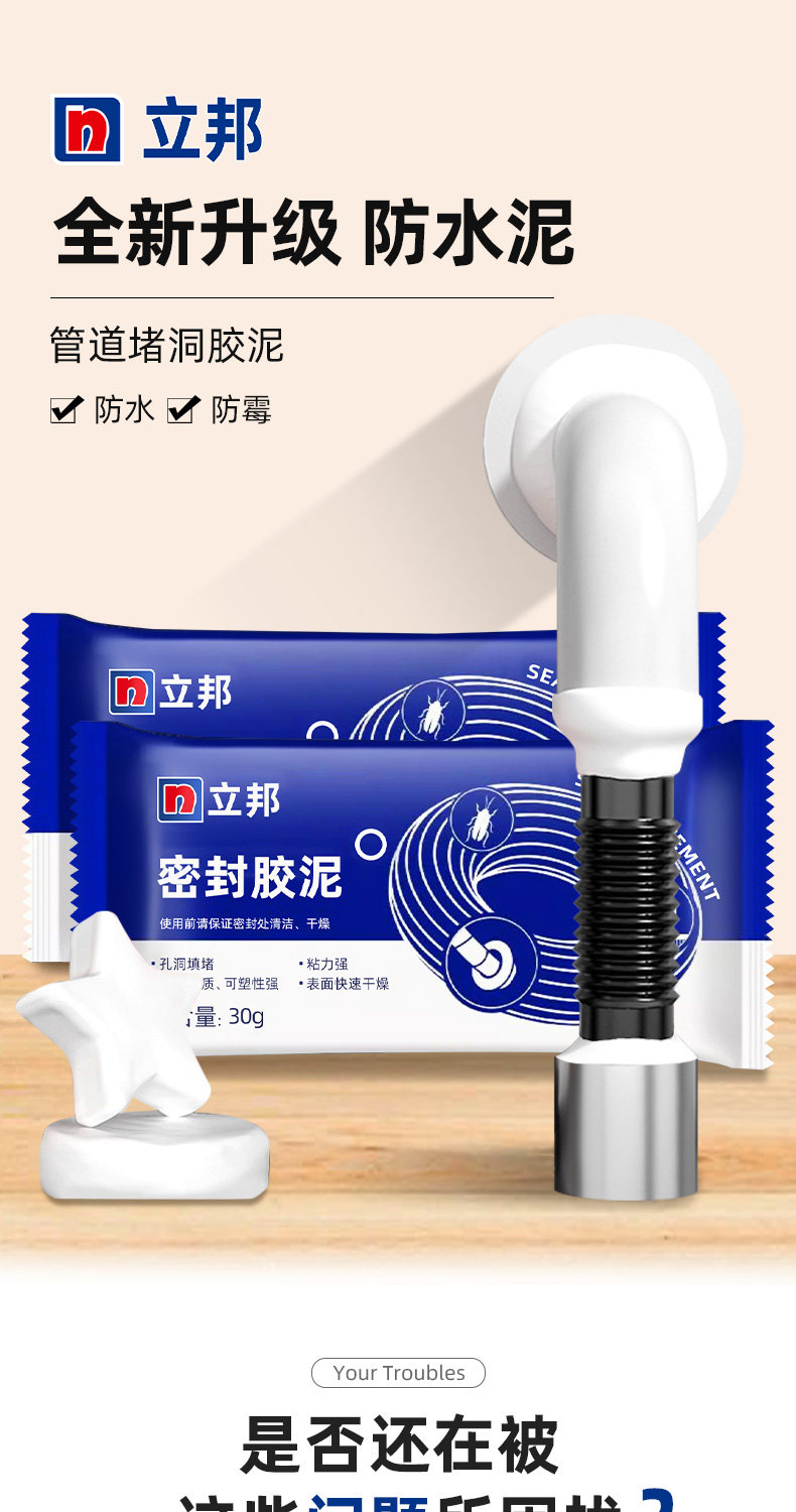 Nippon Sealant Putty for Sewer Pipe Clogging, Hole Sealing, Anti-Odor, Waterproof, Anti-Mold, Leak-Blocking Putty