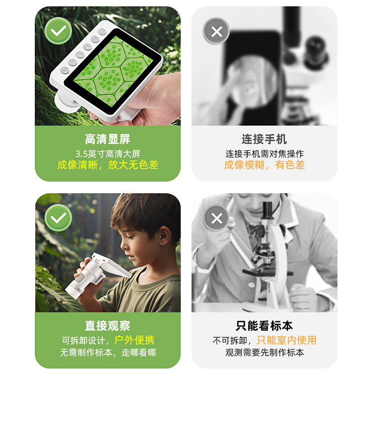 | Color Classification | 【Important: Do Not Purchase if Not Required】 7inch Color Screen Options + USB Charging + Detachable Base + Photo & Video Recording + Real-Time Viewing + 2000X Magnification,Style Comparison Chart: Important Pre-Purchase Information. the Basic Model Features 1000X Magnification, While the Advanced Model Offers 2000X Magnification. Remote Control Operation Is Supported for Enhanced Clarity.,Basic Large-Screen Dual-Purpose Microscope [Without Memory Card],Basic Large-Screen Dual-Purpose Microscope [Original 32g Memory Card],Basic Model☆Large Screen Dual-Purpose Microscope [Original 32g Memory Card] + Additional 48 Specimens,Newly Upgraded High-End Version 7inch Large-Screen Dual-Purpose Microscope [No Memory Card],Newly Upgraded High-End Version 7inch Large-Screen Dual-Purpose Microscope [Original 32g Memory Card],Store Manager Recommendation⭐️Newly Upgraded High-End Version 7inch Large-Screen Dual-Purpose Microscope [Original 32g Memory Card] + Additional 48 Specimens,[Outdoor Handheld Model] [No Memory Card] 3.5inch Hd Color Screen + 1000X Magnification + Can Take Photos and Videos,[Outdoor Handheld Model] (Specially Designed for Outdoor Use) [32g Memory Card] + 3.5inch High-Definition Color Screen + 1000X Magnification +,【Outdoor Handheld Model】【Observation Slides*48】+ 3.5inch Hd Color Screen + 1000X Magnification + Photo & Video Recording |