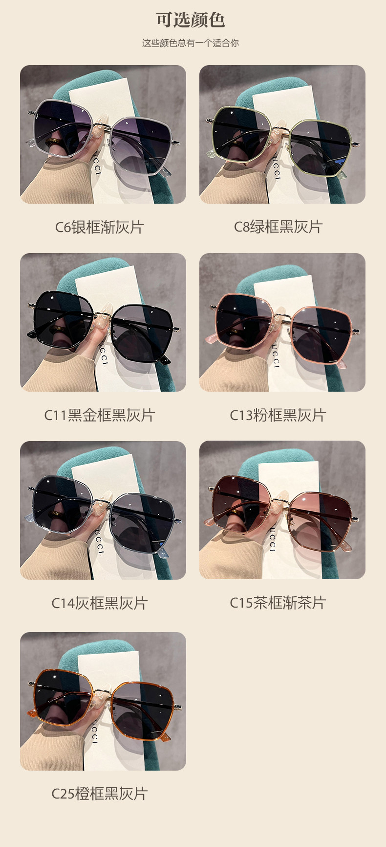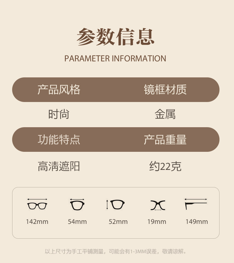 | Color Classification | Milk Tea Color--C15[Polarized Lenses + Uv400 Protection],Black Gold--C11[Polarized Lenses + Uv400 Protection],Milky Gray--C6[Polarized Lenses + Uv400 Protection],Bean Paste Powder--C13[Polarized Lenses + Uv400 Protection],Vibrant Orange--C25[Polarized Lenses + Uv400 Protection],Serenity Blue--C14[Polarized Lenses + Uv400 Protection],Matcha Green--C8[Polarized Lenses + Uv400 Protection],50-600 Degrees with Myopia, Please Leave a Message with the Degree: Milk Tea Color--C15,50-600 Degrees with Myopia, Please Leave a Message with the Degree: Black Gold--C11,50-600 Degrees with Myopia, Please Leave a Message with the Degree: Milky Gray--C6,50-600 Degrees with Myopia Message Degree: Bean Paste Powder--C13,50-600 Degrees with Myopia, Please Leave a Message with the Degree: Vibrant Orange--C25,50-600 Degrees with Myopia Message Degree: Serenity Blue--C14,50-600 Degrees with Myopia Message Degree: Matcha Green--C8,Frame+[Thinner]1.56 Custom Lenses[Suitable for Astigmatism 0-200 Degrees],Frame+[Ultra-Thin]1.61 Custom Lenses[Suitable for 0-500 Degrees],Frame+[Thinnest]1.67 Custom Lenses[Suitable for 0-800 Degrees] |