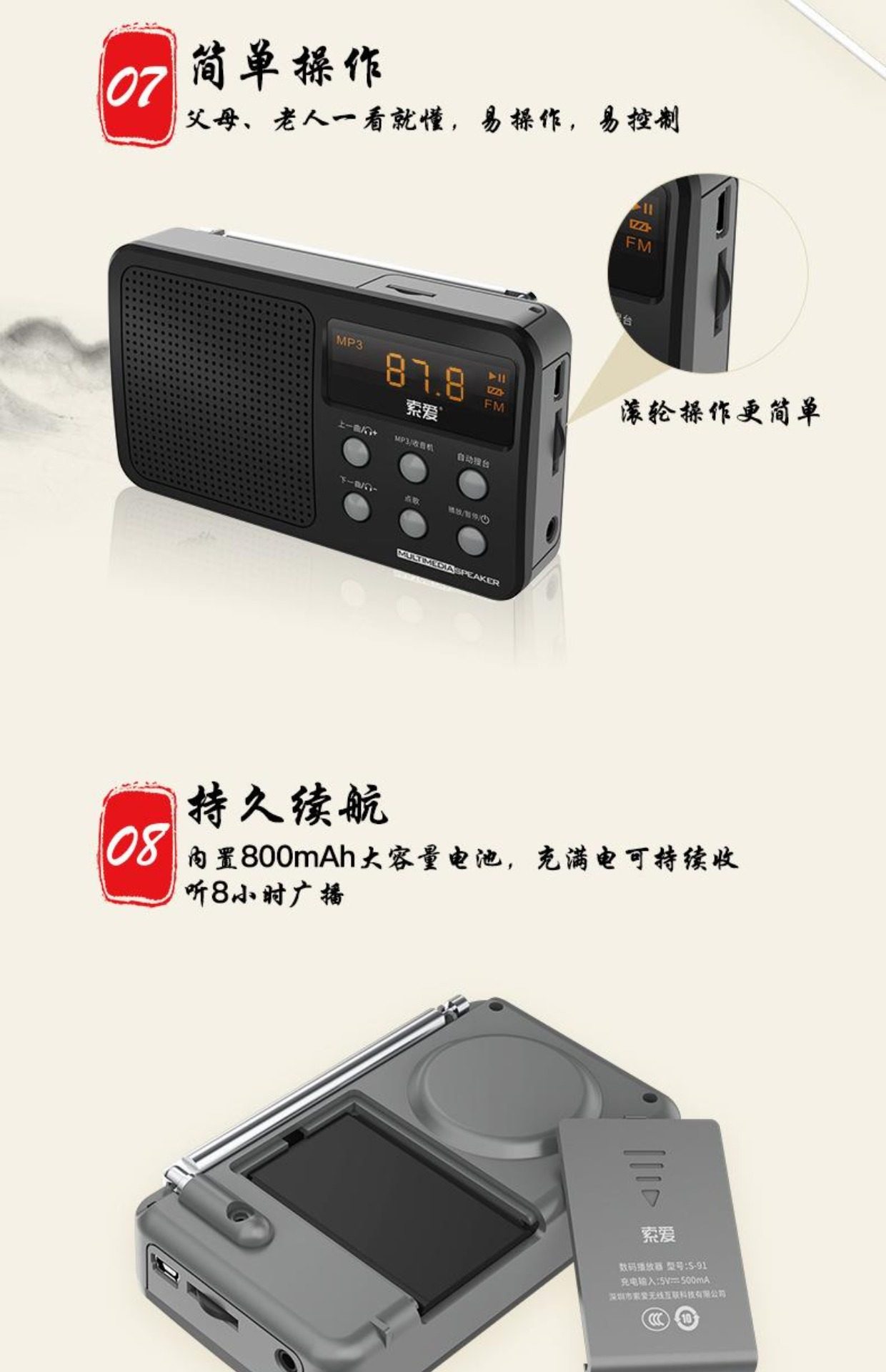 Sony Ericsson Radio New Portable Player for the Elderly, Small Radio, Portable Music Player, Opera, Storytelling, Multifunctional
