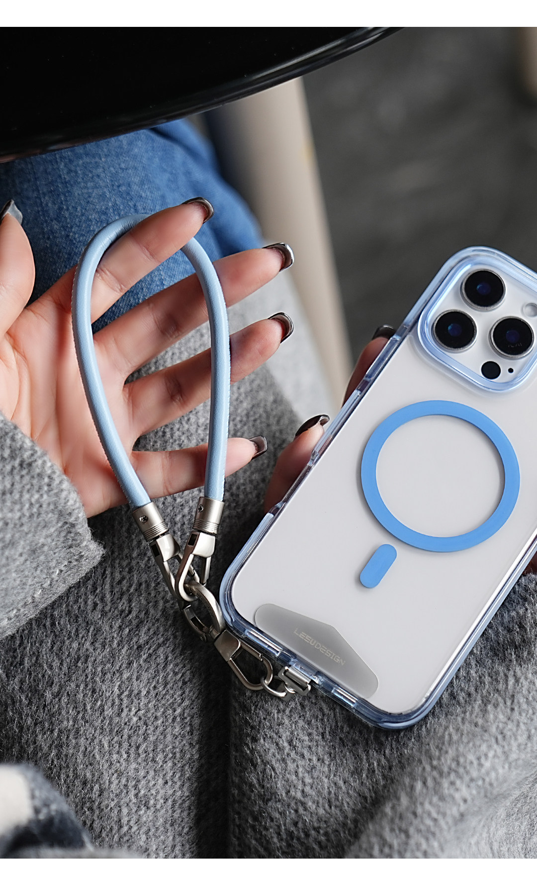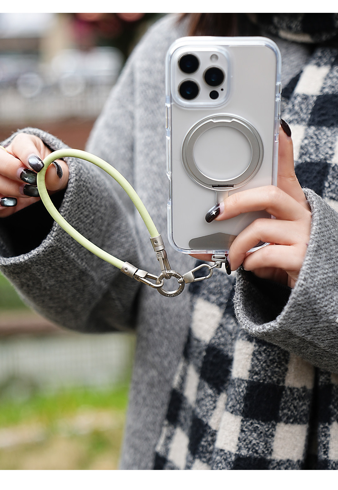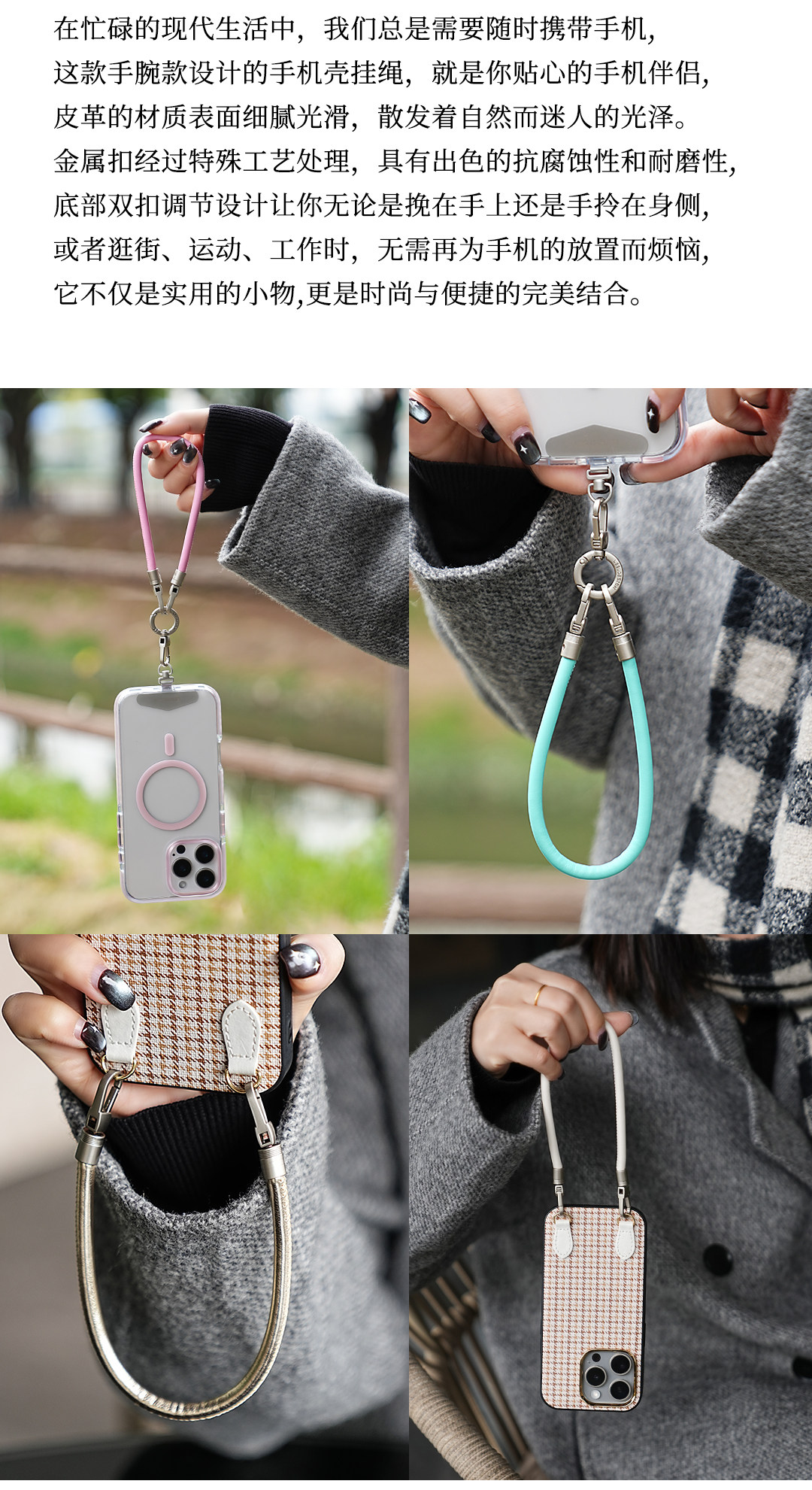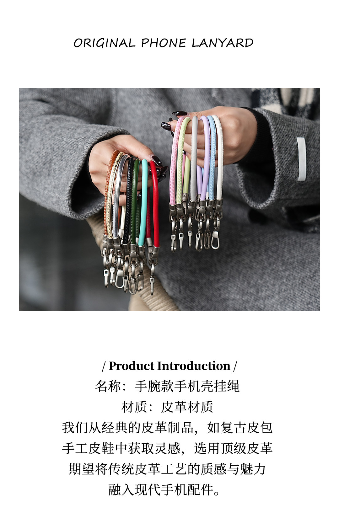 Leeu Design 6mm Liquid Leather Wrist Phone Lanyard Short Portable Double Buckle Phone Chain Outdoor Anti-Lost Wrist Chain Simple and Versatile