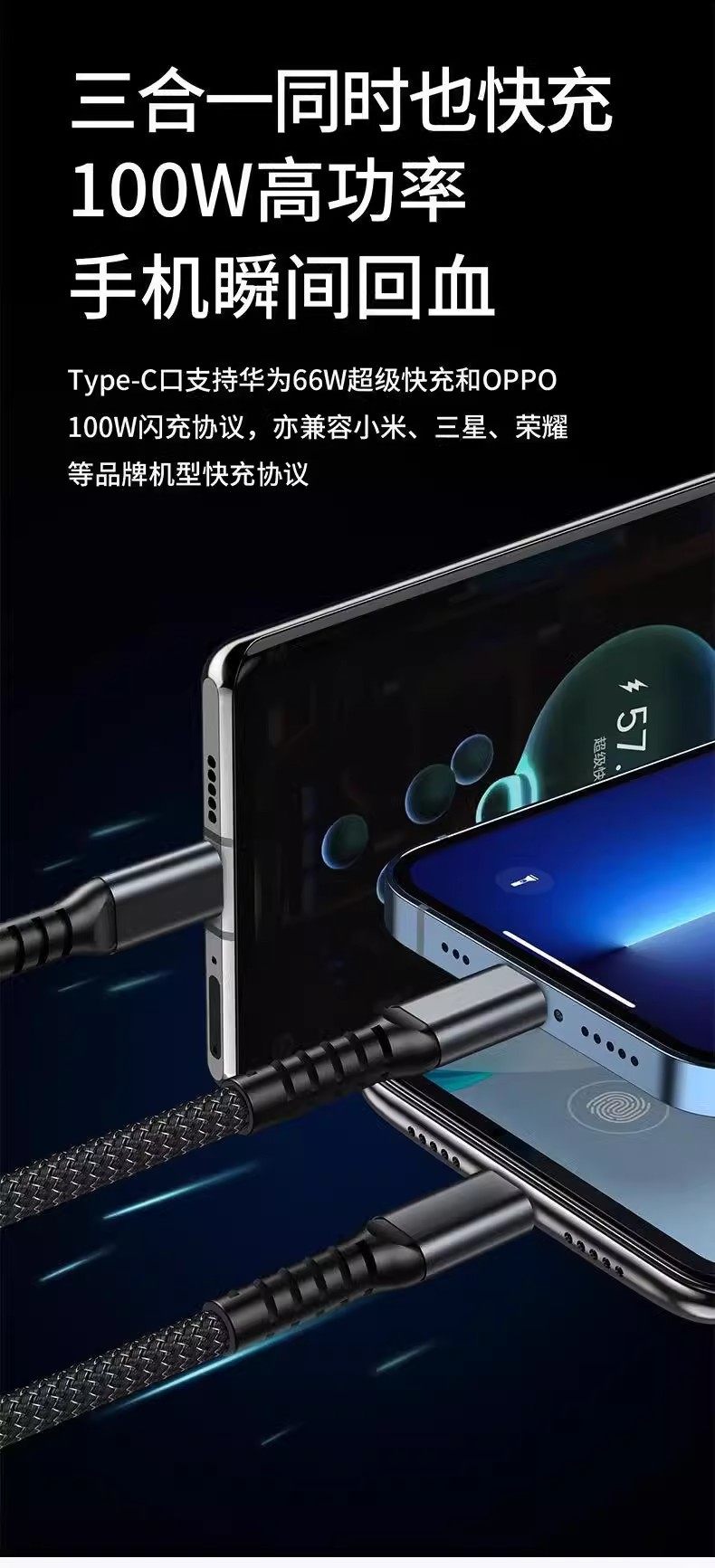 | Color Classification | [Upgrade the Visual Chip]1.2m[100W Three-In-One Super Flash Charge]1 Pack,Three-In-One[Liquid Silicone]Super Fast Charging[1 Pack] |