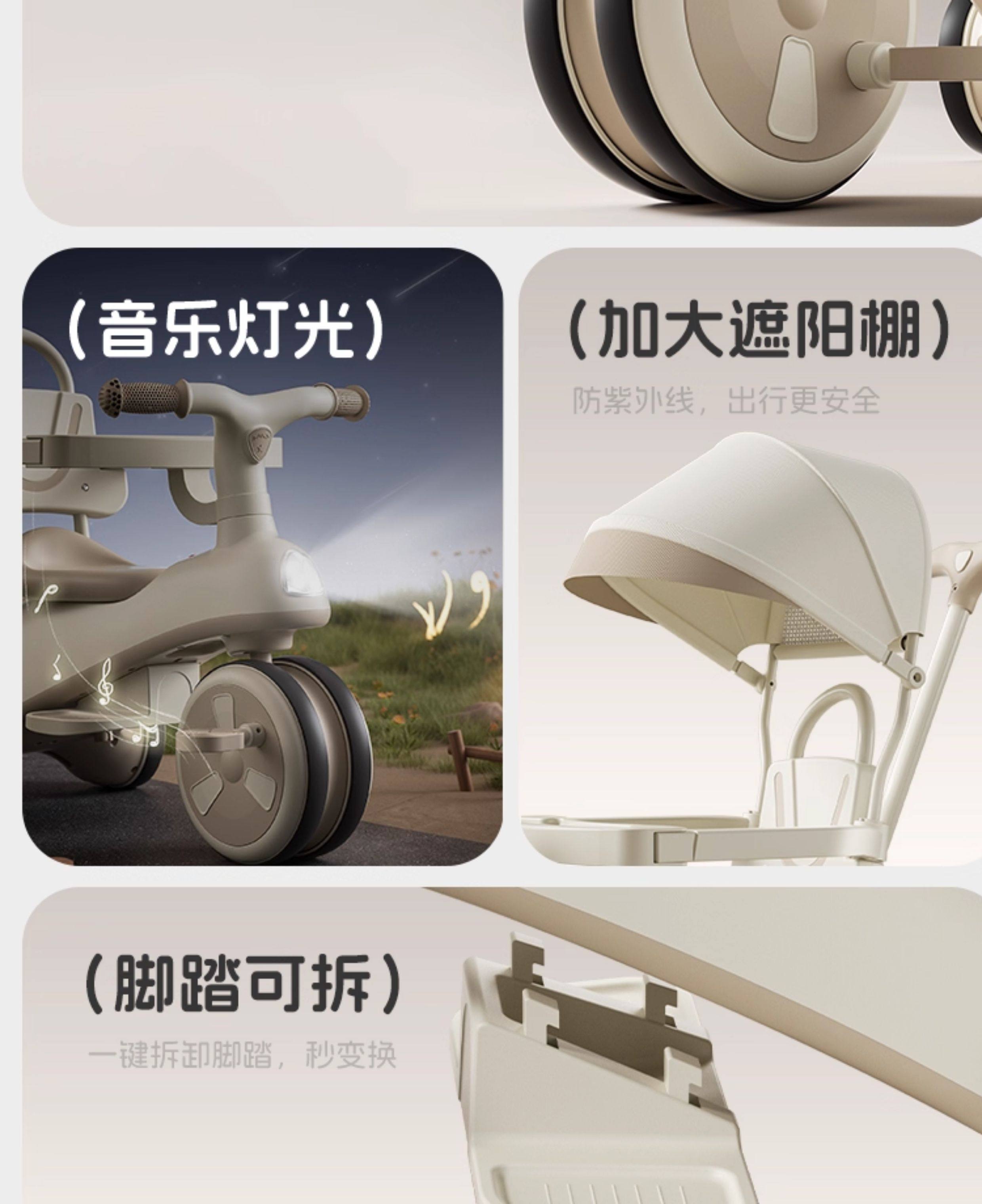 | Color Classification | Khaki Brown[Standard Version]Music Light + Detachable Pedals + Silent Wheels,Princess Pink[Standard Version]Music Light + Detachable Pedals + Silent Wheels,Amber Green[Standard Version]Music Light + Detachable Pedals + Silent Wheels,Mocha Gray[Standard Version]Music Light + Detachable Pedals + Silent Wheels,Khaki Brown[High-End Version]Music & Lights + Detachable Footrest + Silent Wheels + Steering Push Handle,Princess Pink[High-End Version]Music & Lights + Detachable Footrest + Silent Wheels + Steering Push Handle,Amber Green[High-End Version]Music & Lights + Detachable Footrest + Silent Wheels + Steering Push Handle,Mocha Gray[High-End Version]Music & Lights + Detachable Footrest + Silent Wheels + Steering Push Handle,Khaki Brown[Deluxe Version]Music & Lights + Detachable Footrest + Silent Wheels + Steering Push Handle + Removable Safety Rail & Backrest,Princess Pink[Deluxe Version]Music & Lights + Detachable Footrest + Silent Wheels + Steering Push Handle + Removable Safety Rail & Backrest.,Amber Green[Deluxe Version]Music & Lights + Detachable Footrest + Silent Wheels + Steering Push Handle + Removable Safety Rail & Backrest.,Mocha Gray[Deluxe Version]Music & Lights + Detachable Footrest + Silent Wheels + Steering Push Handle + Removable Safety Rail & Backrest.,Khaki Brown[Extreme Version]Music & Lights + Detachable Footrest + Silent Wheels + Steering Push Handle + Removable Safety Bar & Backrest + Sun Canopy.,Princess Pink[Extreme Version]Music & Lights + Detachable Footrest + Silent Wheels + Steering Push Handle + Removable Safety Bar & Backrest + Sun Canopy.,Amber Green[Extreme Version]Music & Lights + Detachable Footrest + Silent Wheels + Steering Push Handle + Removable Safety Bar & Backrest + Sun Canopy,Mocha Gray[Extreme Version]Music & Lights + Detachable Footrest + Silent Wheels + Steering Push Handle + Removable Safety Bar & Backrest + Sun Canopy |