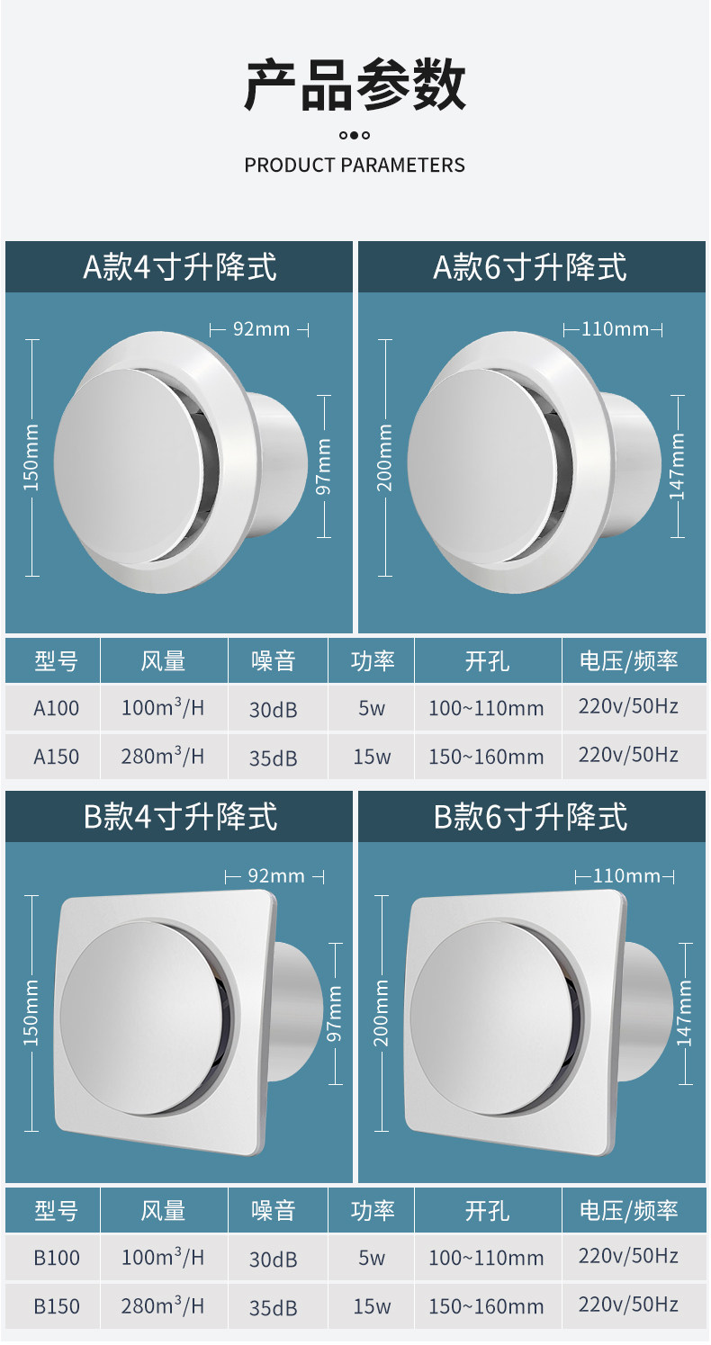 | Color Classification | ăAuto-Lift PanelăSquare 4inch Exhaust Fan Model + Timer Remote Control,ăAuto-Lift PanelăSquare 6inch Exhaust Fan Model + Timer Remote Control,ăAuto-Lift PanelăRound 4inch Exhaust Fan Model + Timer Remote Control,ăAuto-Lift PanelăRound 6inch Exhaust Fan Model + Timer Remote Control,ăAutomatic Height-Adjustable PanelăRound 6inch Two-Way Model + Timer Remote Control |
